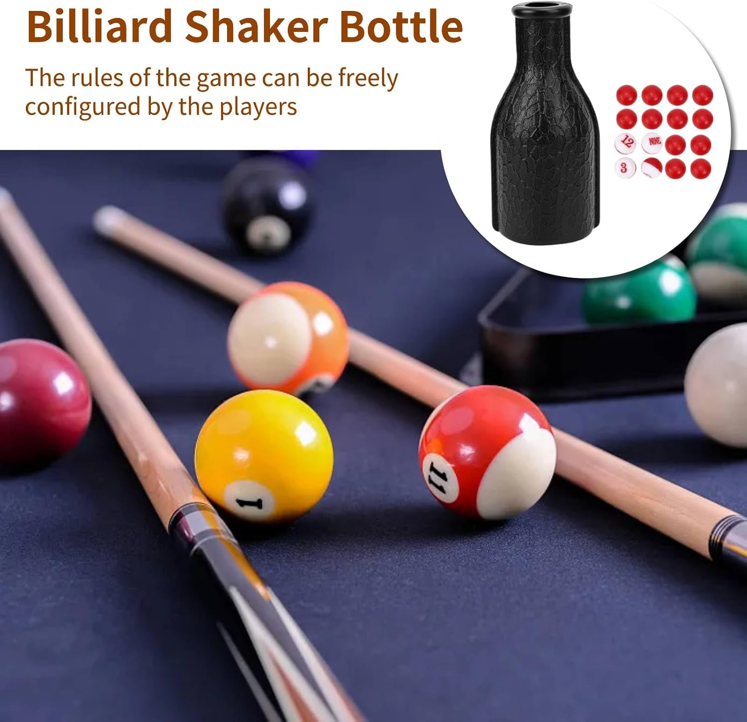 Kit bottiglia da dadi da biliardo: aggiungi un nuovo livello di eccitazione ai tuoi giochi di biliardo con i dadi digitali inclusi e 16 palline di conteggio numerate, rendendo ogni round imprevedibile e divertente Bolliard Shaker Bottle: ideale per giochi diversi, puoi personalizzare le regole di gioco per adattarsi alle tue preferenze, consentendo una varietà infinita e le sfide nelle sessioni di piscina o biliardo Facile da usare: la bottiglia shaker è progettata per mescolare accuratamente le palline di conteggio, garantendo una selezione equa e casuale ogni volta che si gira, mantenendo il gioco dinamico e coinvolgente Accessori da biliardo: che tu stia giocando con la famiglia a casa o partecipando a una competizione amichevole in un bar, questo tavolo da biliardo offre l'esperienza del biliardo per giocatori di tutte le età Book da dadi a piscina: realizzati in gomma eccellente, le palline sono durabilità e progettate per un uso ripetuto, fornendo prestazioni di lunga durata senza usura