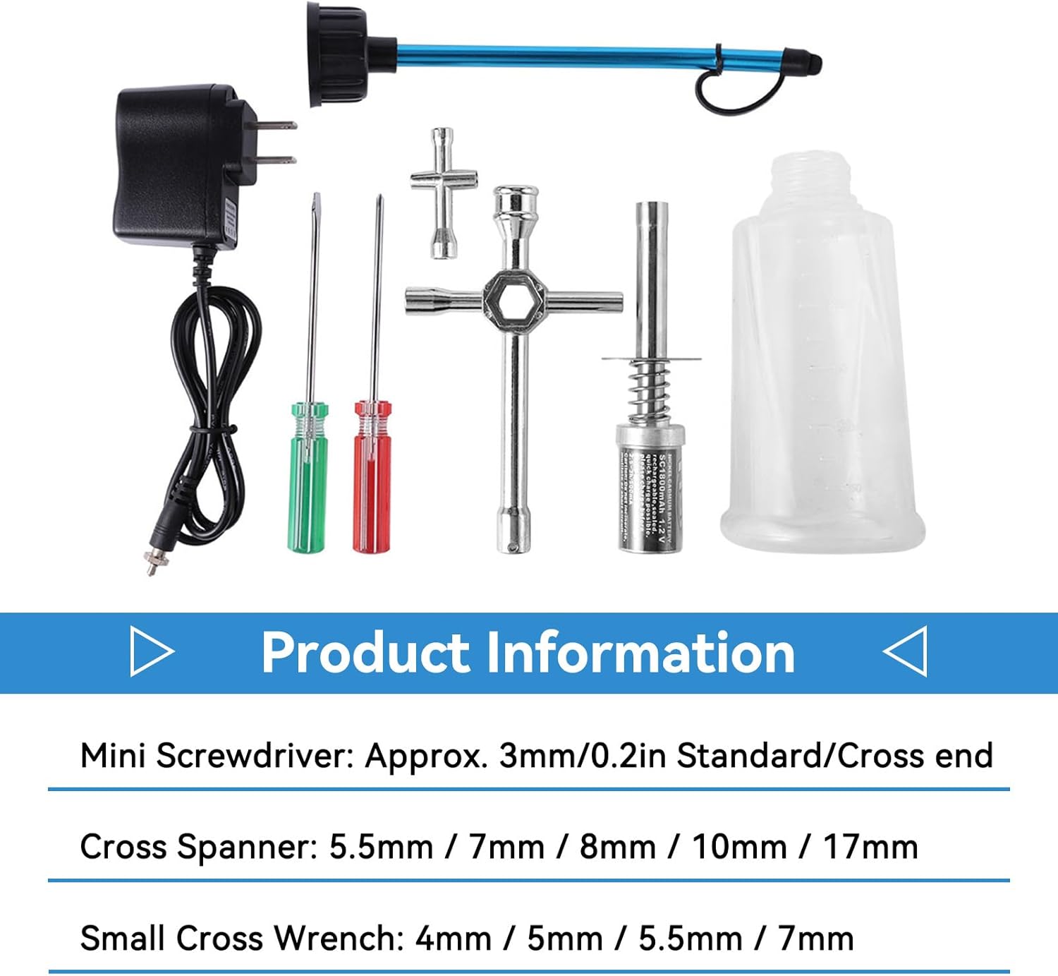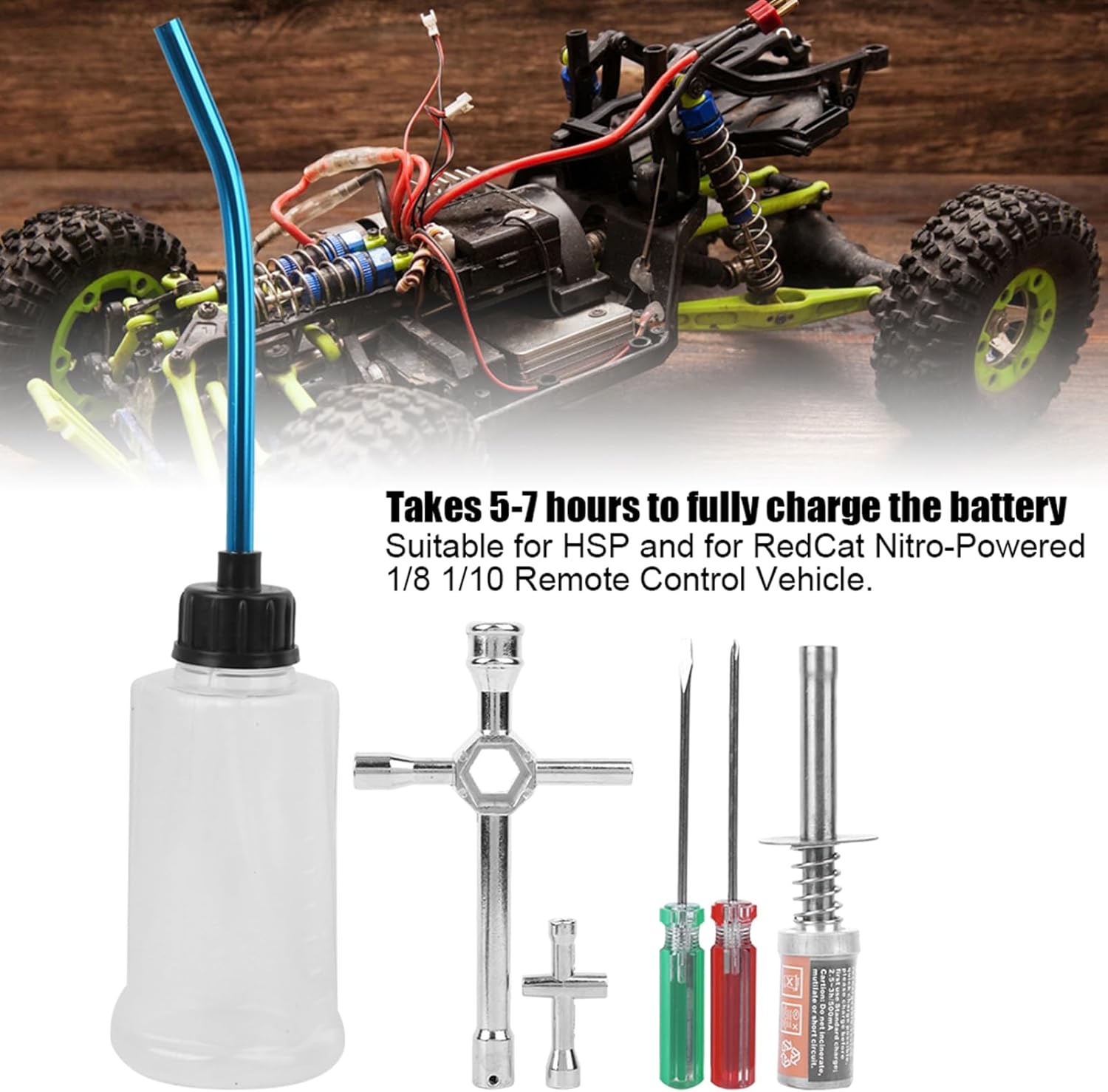 Elevata compatibilità: il kit di starter per auto al combustibile modello ha un'alta compatibilità ed è adatto per le auto telecomandate 1/8 1/10 azote. Fornisce una soluzione multifunzionale per le auto RC, migliorando così le loro prestazioni Kit completo: il set di accensione del motore RC include 0150 Mini cacciavite, 80101 Plug Acceniter, chiave a croce 80129, chiave a croce Mini 80132, 80127 Mini Oiler e caricabatterie 80101, fornendo tutti gli strumenti necessari Strumento multifunzionale: Nitro-Plug Acceniter è strumento di partenza ideale per veicoli fuoristrada del rapporto 1/8/1/10, auto RC e strumenti di ribaltamento stradale, adatti per sostituire le gomme e aggiornare altri componenti delle auto RC. Fornisce una soluzione multifunzionale per le auto RC, migliorando così le loro prestazioni Ottima alternativa: l'accenditore per plug kit di partenza può iniziare rapidamente ed efficacemente i motori Nitro, il che è cruciale per l'avvio di auto RC e altre auto RC, ed è una scelta eccellente per sostituire le gomme e aggiornare altre parti Materiale: il kit di starter Nitro RC è realizzato con eccellenti materiali in metallo, con una struttura compatta e robusta, eccellente durata e affidabilità, alta resistenza e non è facilmente deformato, garantendo prestazioni e uso a lungo termine