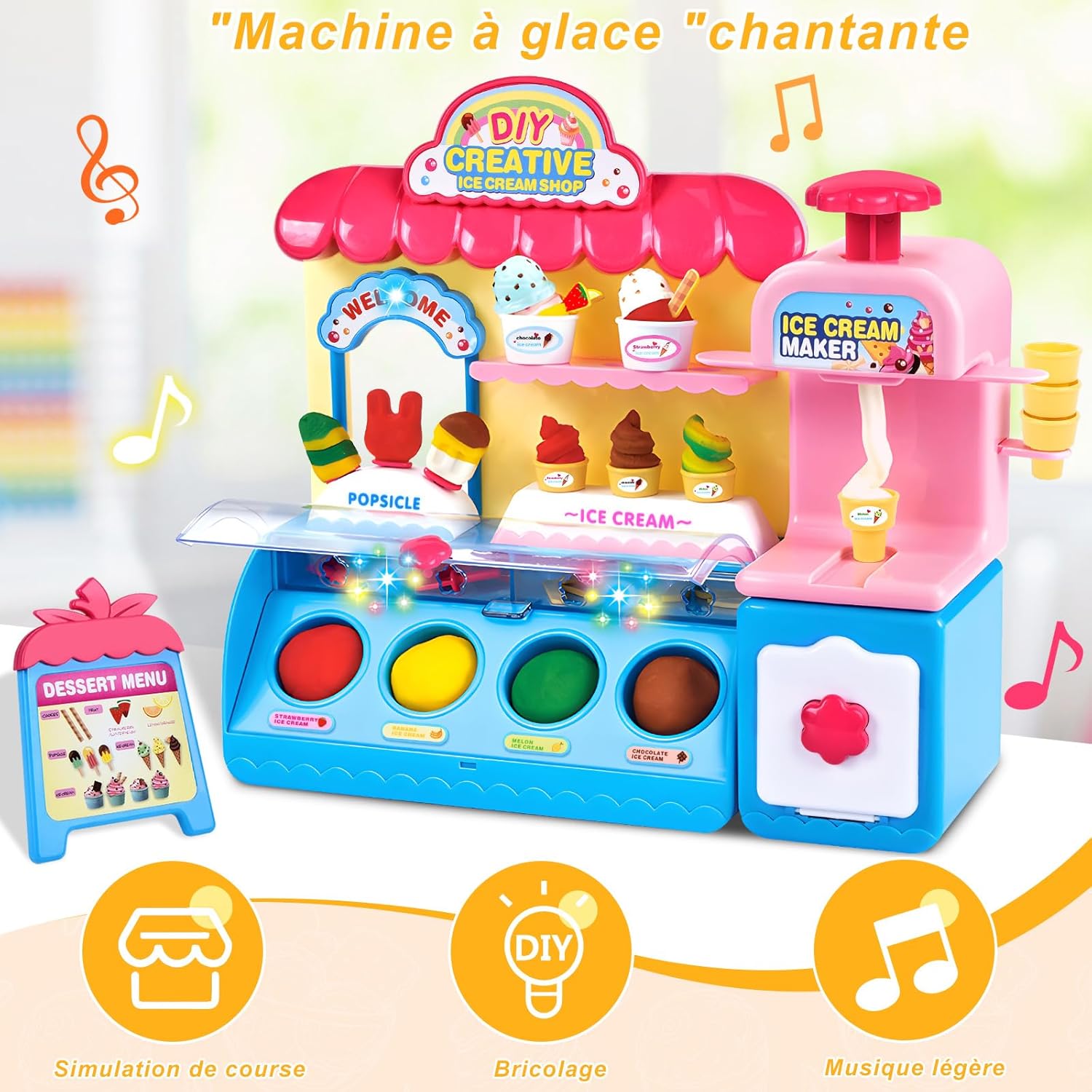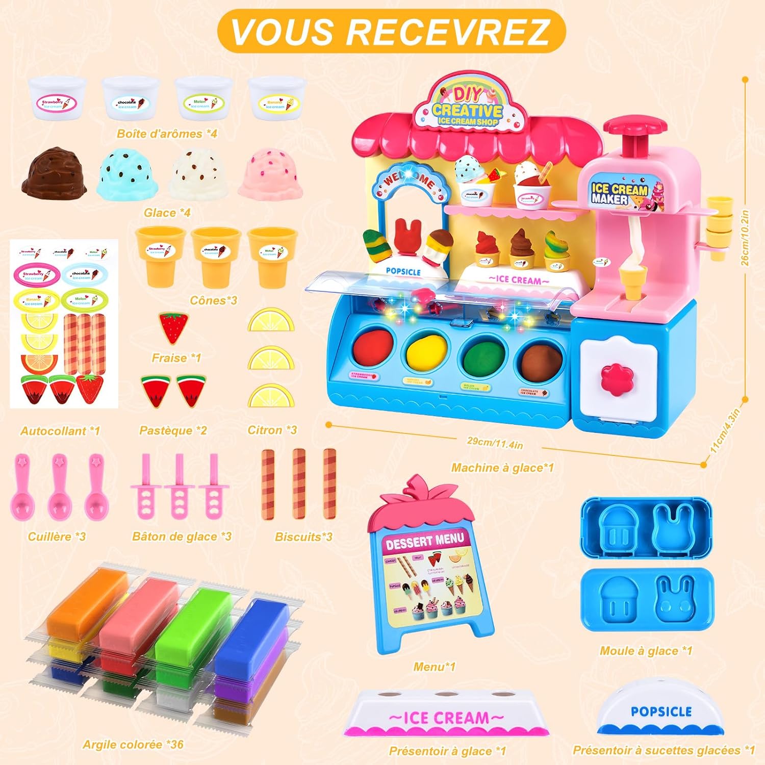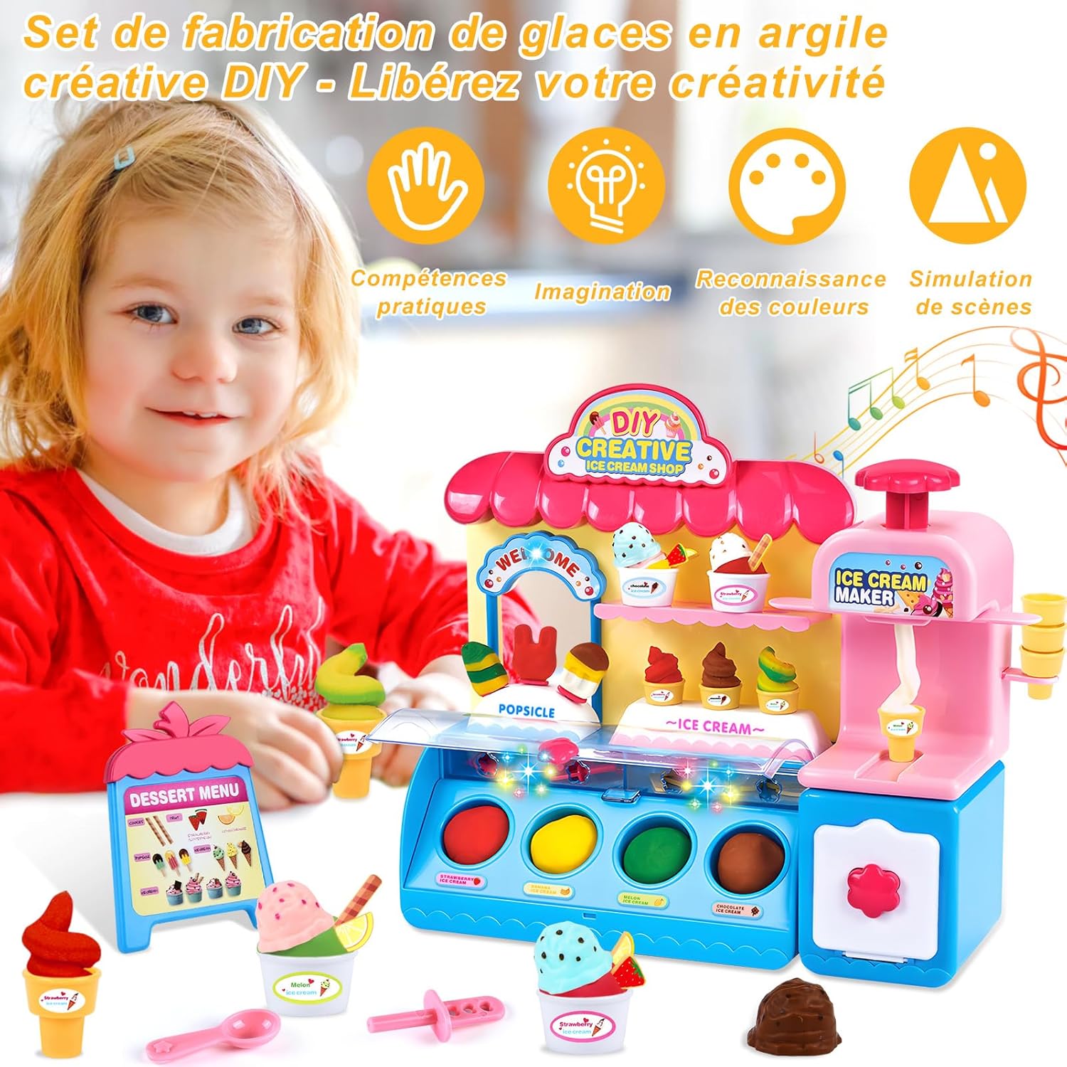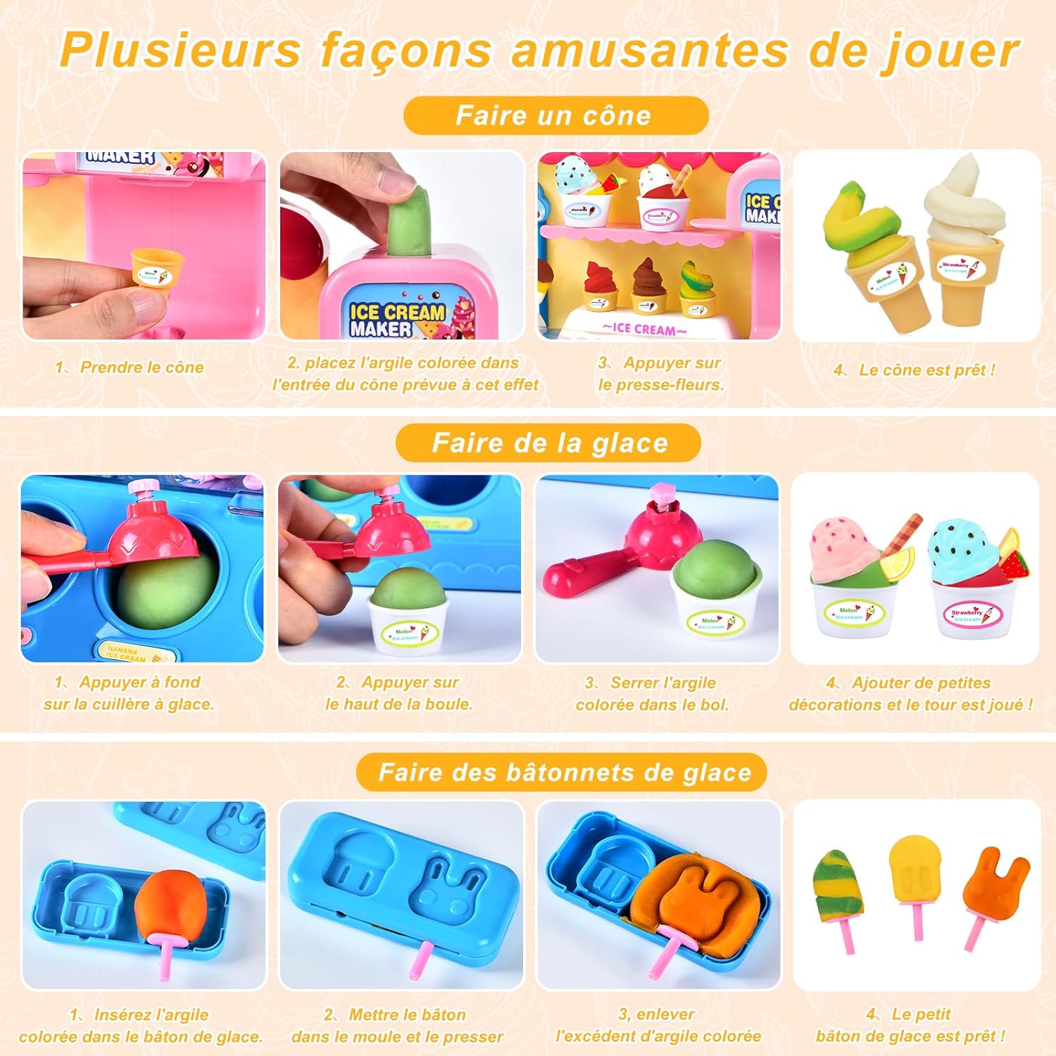 🍦 Set di plastiline per gelato - Il set di plastiline per gelato contiene una macchina per cubetti di ghiaccio, coppe per gelato, cucchiai, ecc. 31 accessori e 36 plastiline colorate. Il set versatile di strumenti per l'impasto è sufficiente per soddisfare le esigenze dei bambini nel creare e promuovere le abilità pratiche dei bambini. 🍧 Strumenti per plastilina fai da te - Il set per plastilina è realizzato in plastica sicura e di alta qualità, molto resistente e colorata, non tossica, non grassa, non appiccicosa, può essere utilizzata ripetutamente. Il bambino può sviluppare la propria immaginazione e creare forme di argilla uniche per godersi il divertimento della giornata. 🍦 Giochi creativi: i set di pasta da gioco per gelato offrono diversi giochi creativi, perfetti per i bambini. I set sono dotati di strumenti per modellare, pressare e arrotolare, ecc., con i quali possono creare infinite creazioni a casa o a scuola, offrendo a tuo figlio un sacco di giochi di ruolo creativi. 🍧Giocattoli educativi: i set di argilla da modellare hanno colori vivaci e sono disponibili in diverse forme, stimolano l'immaginazione e la creatività dei bambini e incoraggiano le abilità pratiche dei bambini, che possono divertirsi con tutti i loro amici. 🍦 Miglior regalo: è la scelta migliore come regalo, il set di pasta da gioco congelata è un fantastico giocattolo prescolare per ragazzi e ragazze dai 4 5 6 7 8 anni in su. È un ottimo regalo per Natale, Capodanno, regali di compleanno, regali di Natale, feste e scuola.