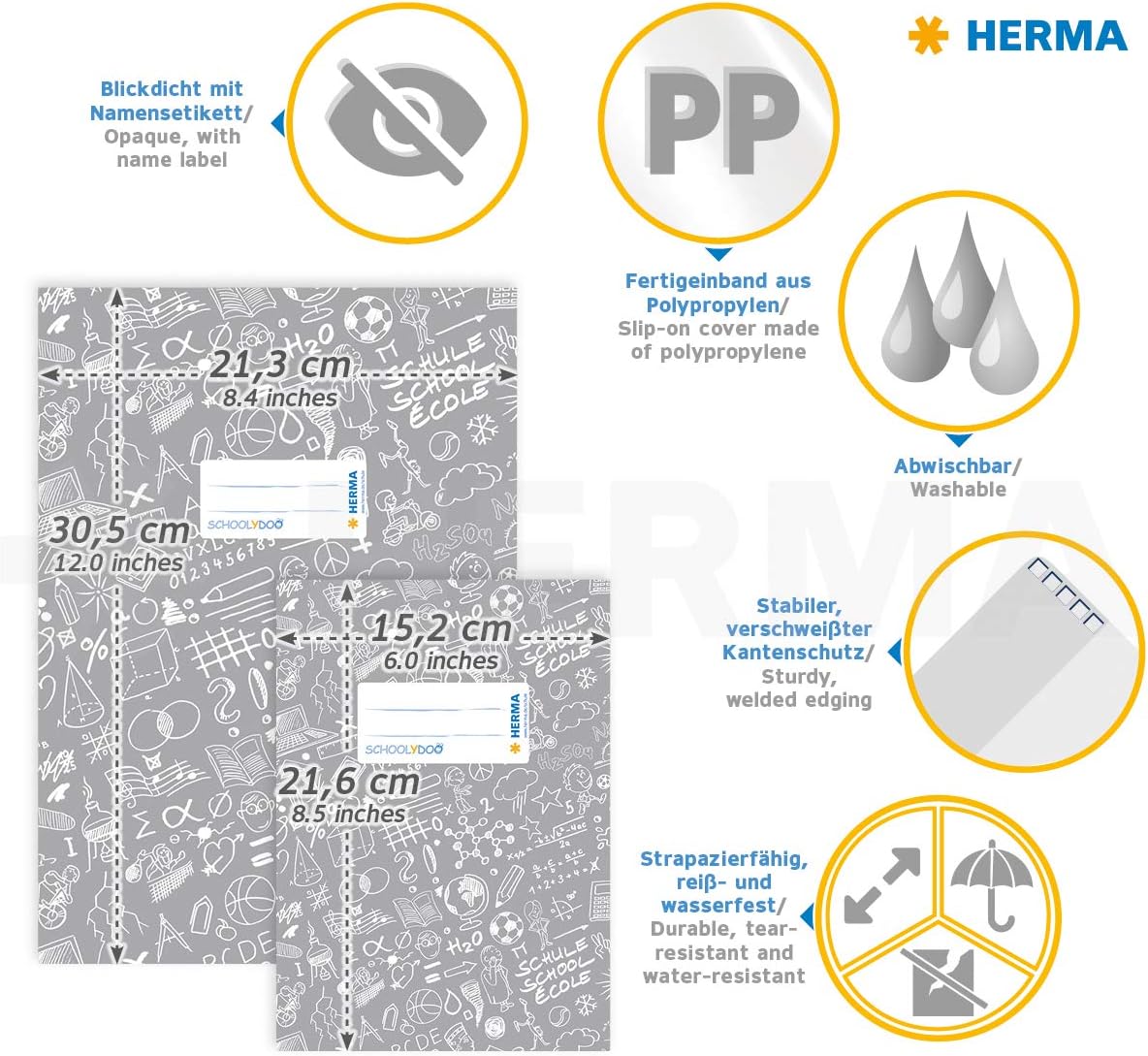 Copertina per quaderni in pellicola lavabile in formato DIN A5 con pratico adesivo per nome Materiale plastico ecologico e robusto, colori ricchi e lavorazione solida Ideale per l'uso in scuola elementare, scuola, asilo, università, ufficio e casa Per la protezione perfetta di quaderni scolastici e di scrittura, nonché documenti di lavoro e documenti Contenuto della confezione: 10 copertine per quaderni HERMA SchoOLYDOO A5 con etichetta per nome, lucide (148 x 210 mm), verde scuro