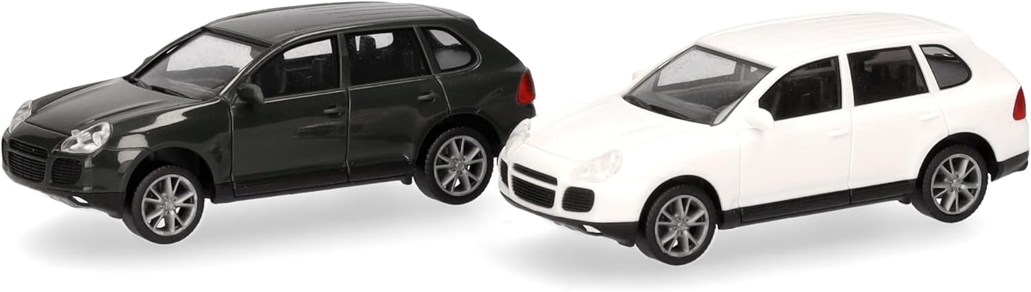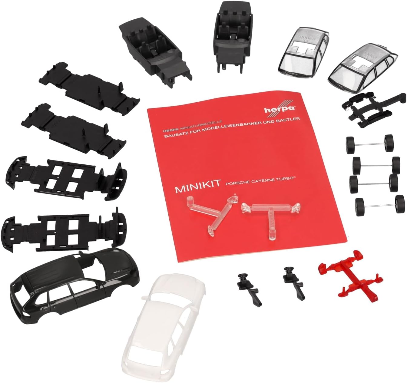 Herpa Kit di montaggio MiniKits Porsche Cayenne Turbo, british racing green/bianco sabbia, miniatura in scala 1:87, pezzo da collezione, kit di modellismo, plastica