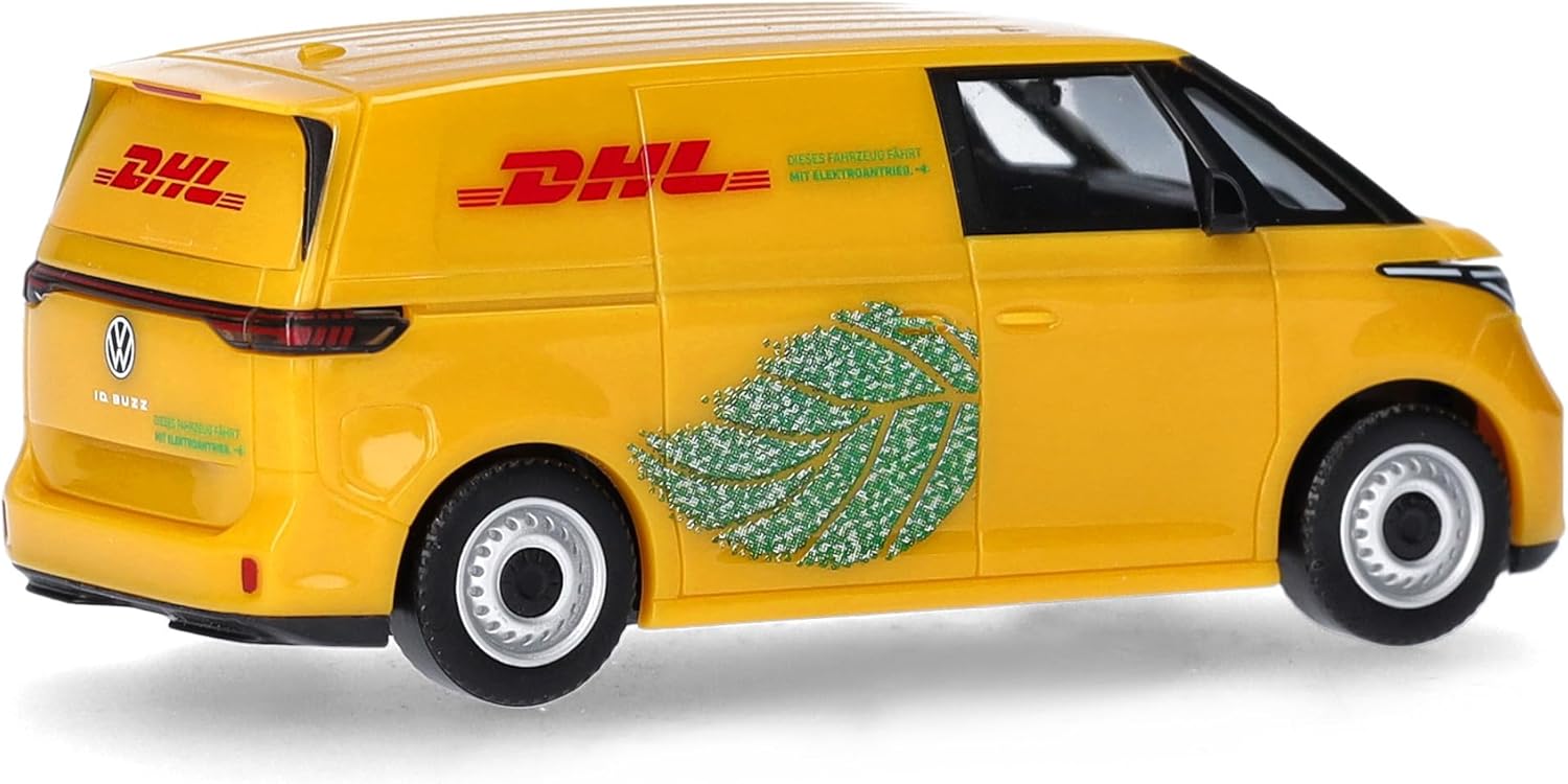 Herpa Modellino auto VW ID. Buzz Cargo "DHL", miniatura in scala 1:87, pezzo da collezione, Made in Germany, modello in plastica