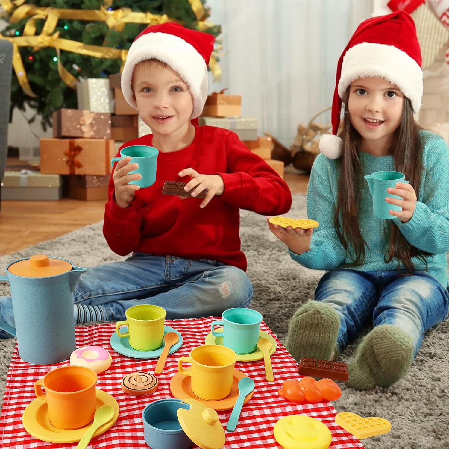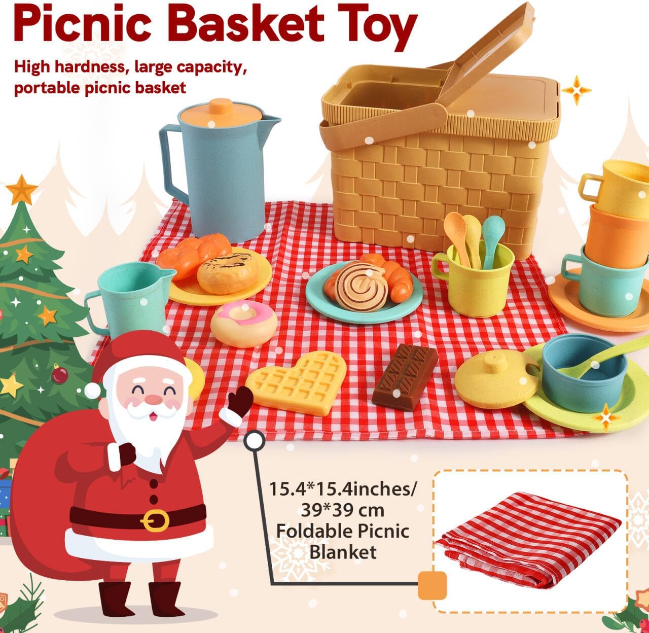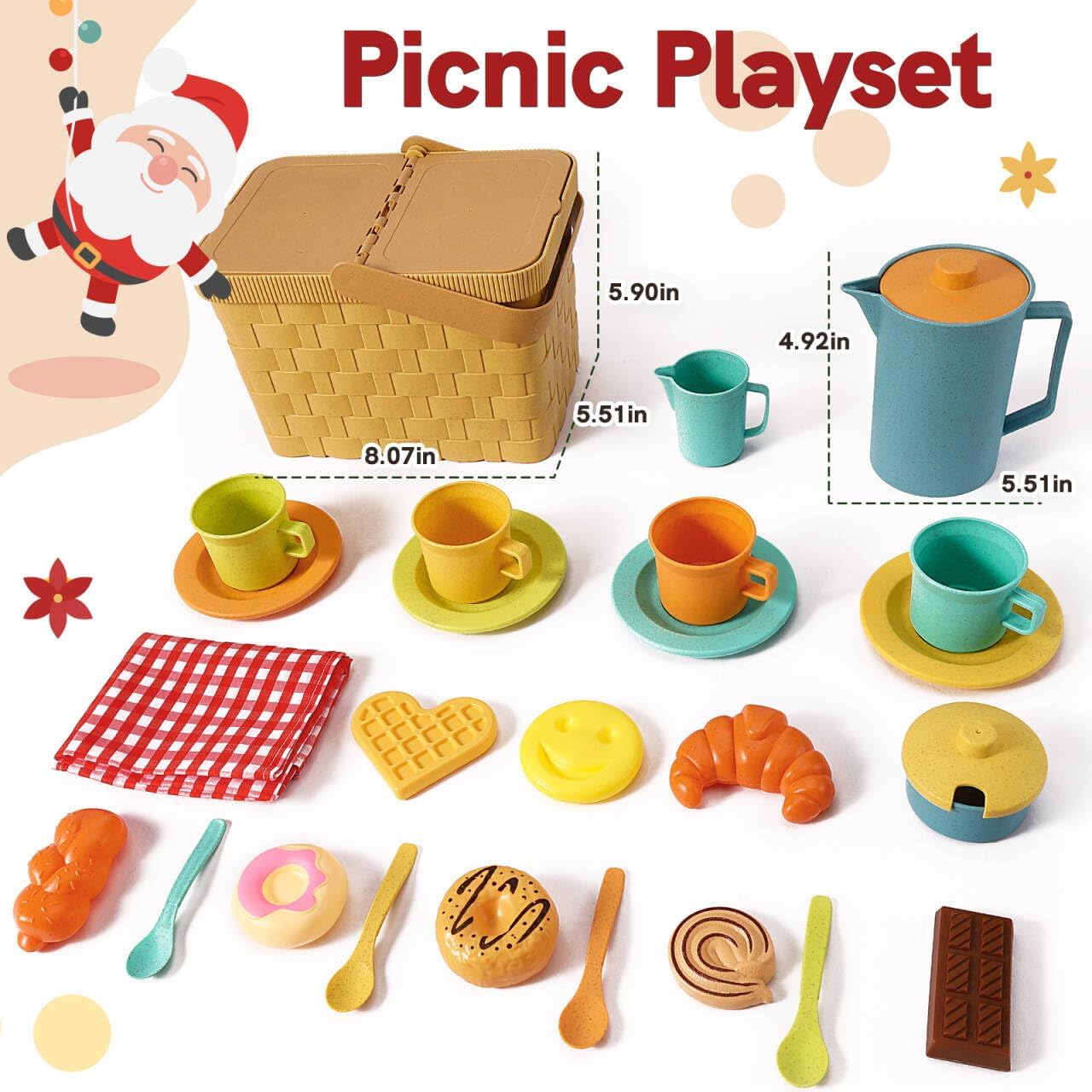 【Picnic Giocattolo】1* Cestino da picnic, 1* Tappetino da picnic, 1* Teiera, 1* Brocca di latte, 1* Zuccheriera, 8* Dessert delicati, 4* Piattini, 4* Tazze da tè, 4* Cucchiai. Gli accessori sono abbondanti e colori vivaci. 【Cestini e Stuoie da Picnic】Questo set da tè per bambini è dotato di un cestino intrecciato con manico (20.5*14*15 cm) e di una coperta da picnic (39*39 cm). Il cestino da picnic con manico è facile da trasportare, leggero e resistente. Il coperchio del cestino da picnic può essere aperto da entrambi i lati per un facile accesso. 【Set da Tè per Bambini Gioco】Con un assortimento di dessert per il tè pomeridiano, i bambini possono chiacchierare con la famiglia e gli amici e godersi un bel tè pomeridiano. 【Giochi di Ruolo】I bambini possono imitare la mamma per preparare il tè, stendere una coperta da picnic per preparare i dolci, ed è un gioco divertente che riempirà felicemente la giornata di un bambino sia in casa che all'aperto! 【Accessori Cucina Bambini Realistici】La forma imita l'aspetto reale del dessert, offrendo ai bambini un'esperienza di gioco più realistica. L'intero cestino picnic giocattolo è realizzato in materiale di alta qualità e spessore, resistente e le tazze da tè non perdono. 【Giocare e Imparare al Tempo Stesso】Esercita le abilità sociali del bambino e migliora l'interazione genitori-figli. Il cestino può contenere tutti gli accessori, consentendo al bambino di sviluppare una buona abitudine alla conservazione. 【Regali per Bambini】Perfetto per bambini e bambina di 3 4 5 anni, ideale per compleanni, feste e giochi a tema.