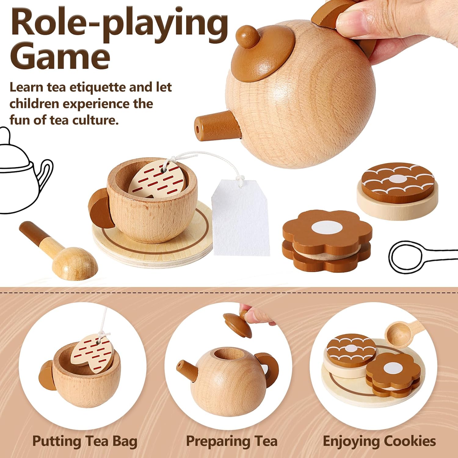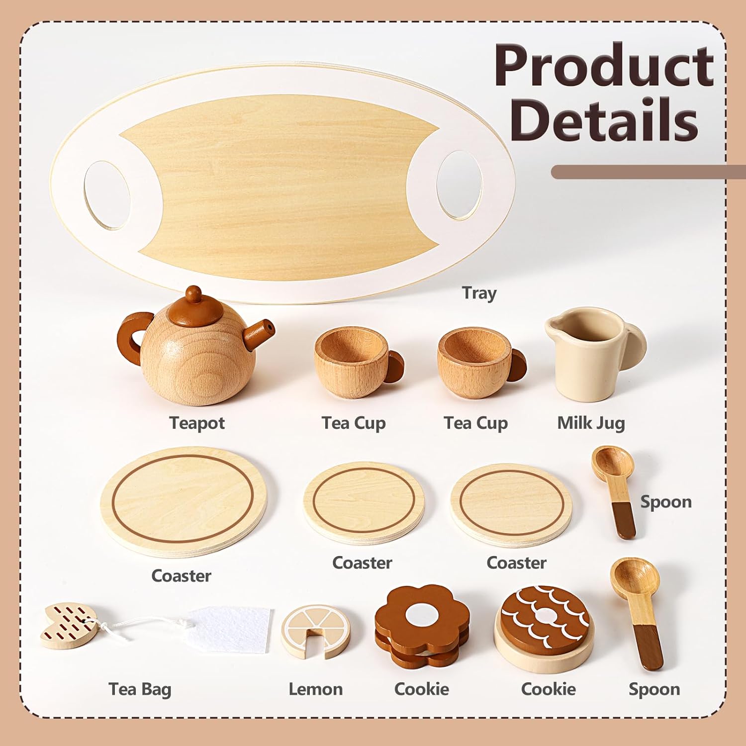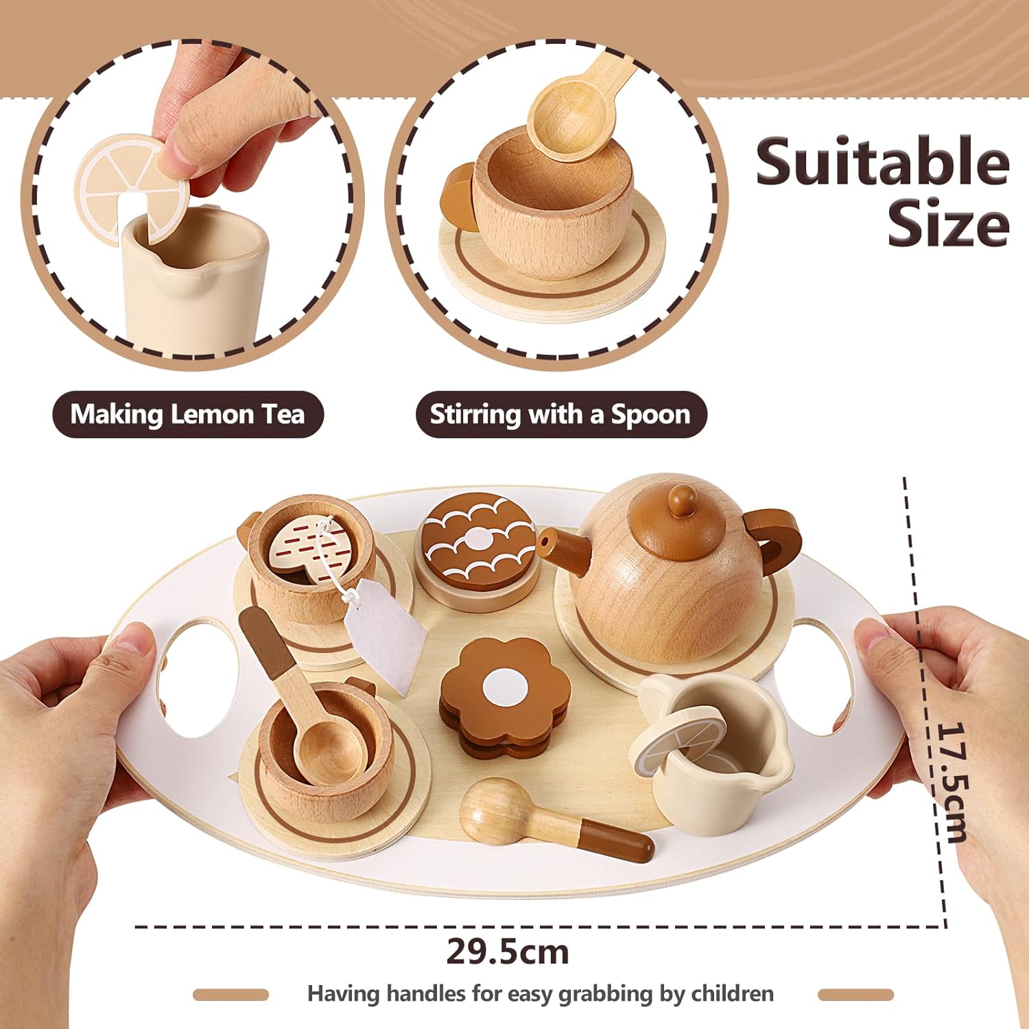 【Cucina Giocattolo Legno】Include teiera, tazze da tè * 2, sottobicchieri * 3, cucchiai * 2, biscotti * 2, tazze di latte, bustine di tè, fette di limone e un vassoio. Numerosi accessori consentono al tuo bambino di vivere un'esperienza realistica durante un tea party. 【Set da Tè Bambini】Realizzato in legno di alta qualità con bordi lisci e privi di bave. Viene fornito con un vassoio con maniglie per una presa migliore. Il bambino può posizionare tutti gli accessori in esso. 【Gioco di Ruolo】I bambini sono i piccoli maestri del tea party e possono invitare amici e parenti a unirsi a loro per una tazza di tè e una chiacchierata e a preparare il rinfresco! 【Giochi Educativi】Sviluppa immaginazione e creatività, capacità motorie, migliora le abilità sociali e impara l'etichetta del tavolo da tè. 【Regali per Bambini】Ottimo per fingere giochi per ragazze e ragazzi di 3, 4, 5 anni! Adatto sia per l'interno che per l'esterno, i bambini possono divertirsi e trascorrere il pomeriggio.