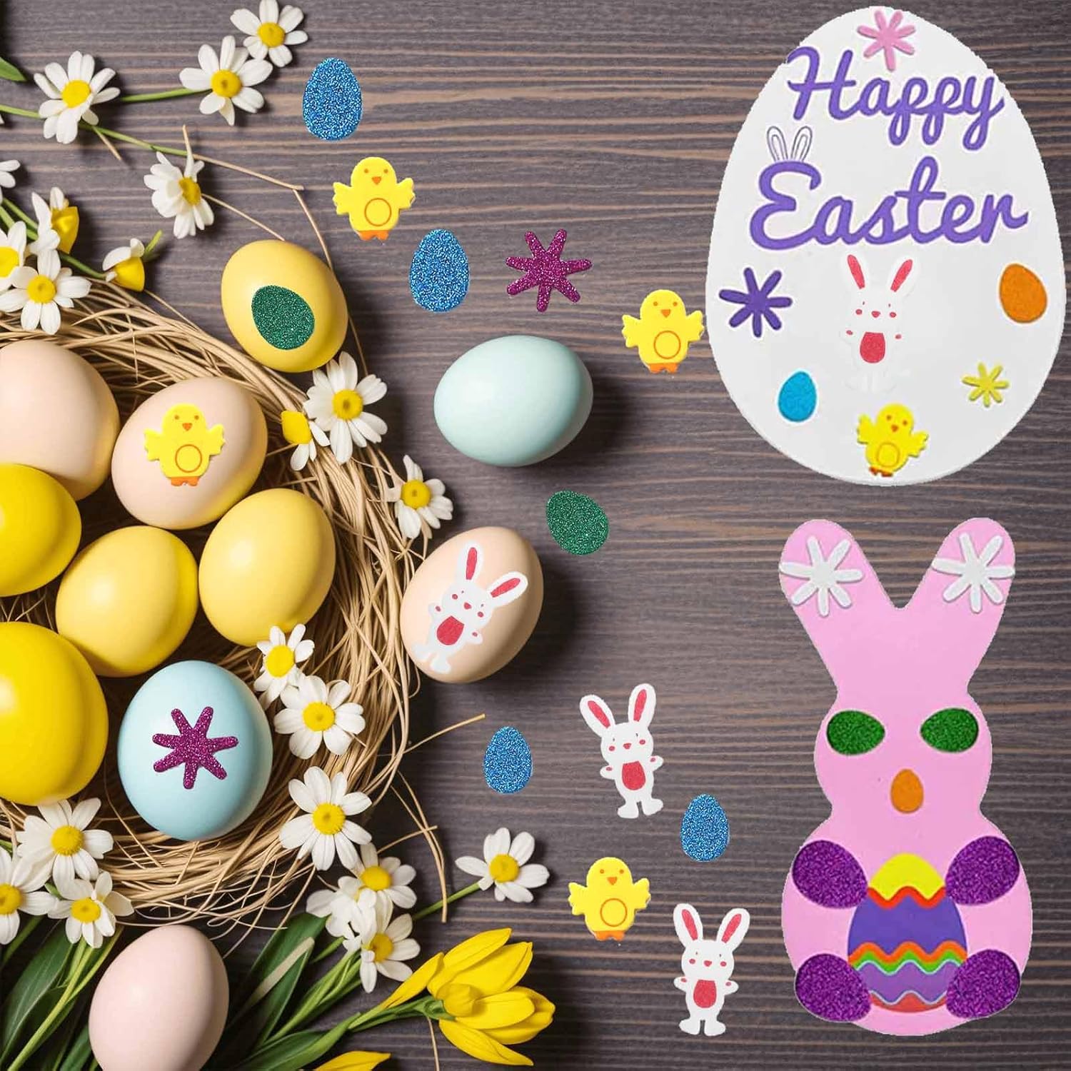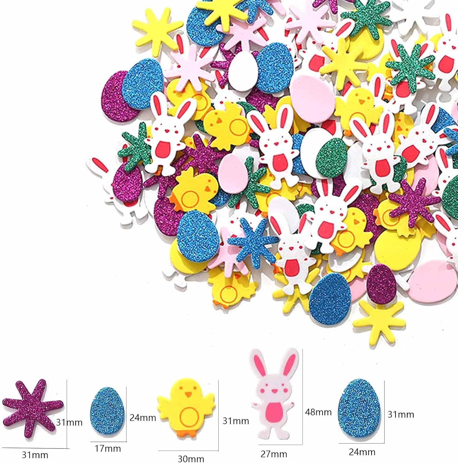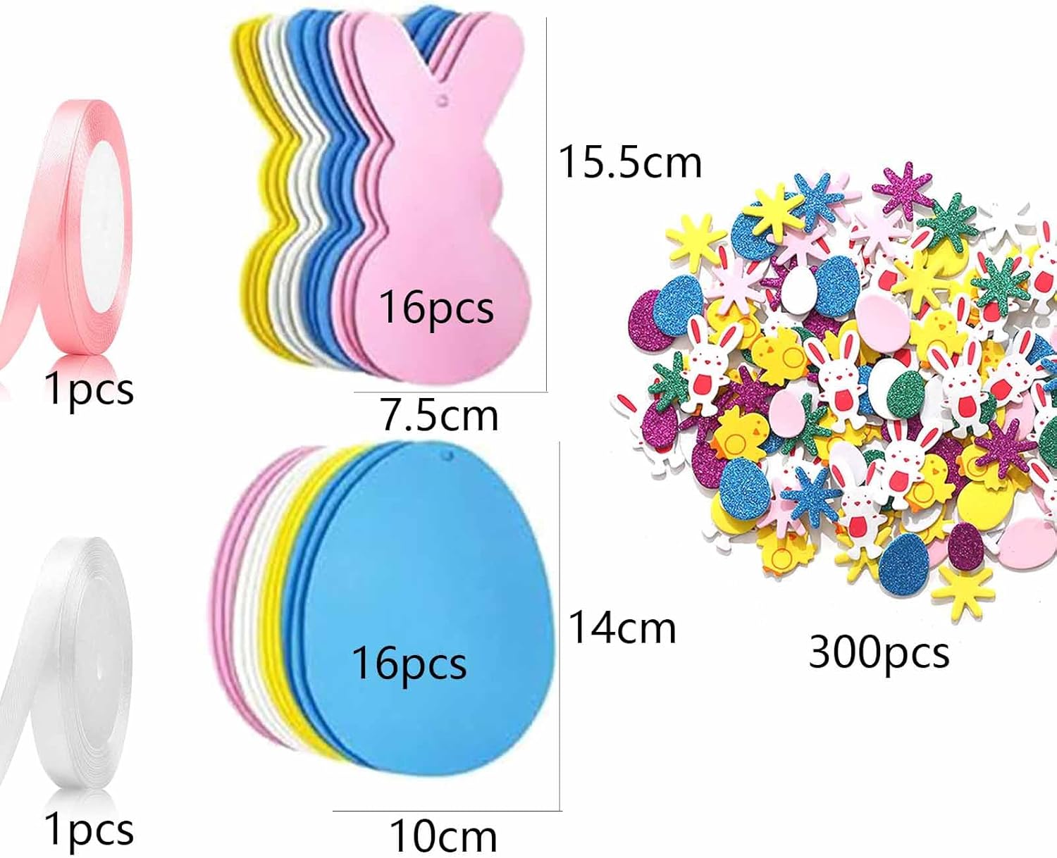 Il nostro set pasquale contiene 16 uova di Pasqua, 16 coniglietti pasquali, 2 rotoli di nastro di raso e 300 adesivi. Le nostre uova pasquali artigianali sono realizzate in materiale EVA di alta qualità, ogni uovo ha una dimensione di ca. 14*10 cm e ogni coniglio ha una dimensione di ca. 15,5*7,5 cm, i nostri lavoretti pasquali per bambini sono perfetti per dare libero sfogo alla tua immaginazione e creatività! Il set di artigianato pasquale è adatto per feste di Pasqua, regali di Pasqua, corsi di artigianato scolastico e giochi interattivi per genitori e bambini. È la decorazione e l'accessorio perfetto per le celebrazioni pasquali. Quantità di consegna: 16 uova di Pasqua + 16 coniglietti di Pasqua + 2 rotoli di nastro di raso e 300 adesivi