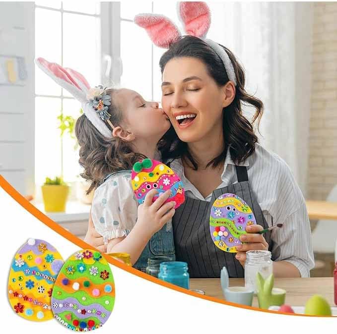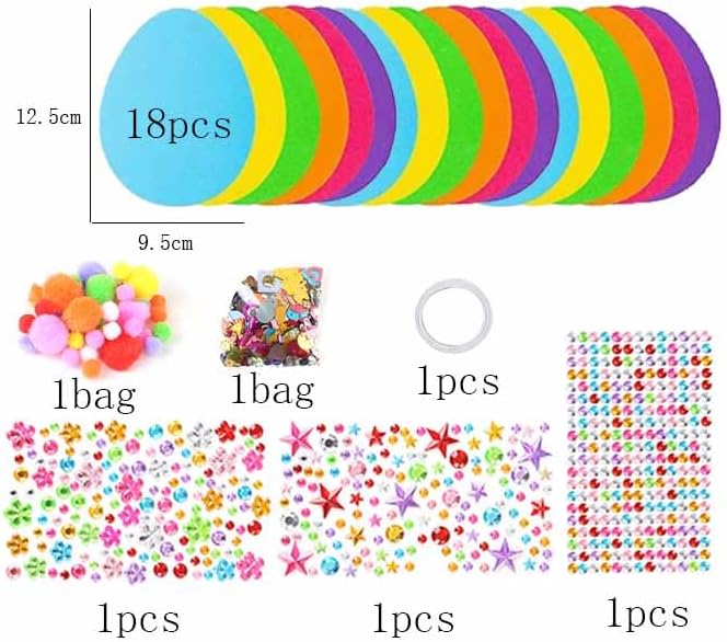 Il nostro set per il fai da te di Pasqua contiene 18 uova in feltro, 6 adesivi a righe di colore, 3 adesivi con diamanti, piccoli adesivi e pompon Le nostre uova pasquali sono realizzate in feltro di alta qualità, ogni uova in feltro ha una dimensione di circa 12,5 x 9,5 cm I nostri mestieri pasquali per bambini sono perfetti per dare libero sfogo alla loro immaginazione e creatività! Il set di bricolage pasquale è adatto per feste di Pasqua, regali di Pasqua, corsi di bricolage scolastici e giochi interattivi per genitori e bambini. È la decorazione perfetta e l'accessorio perfetto per le feste di Pasqua. Contenuto della confezione: 18 uova in feltro, 6 adesivi a righe di colore, 3 adesivi diamantati, piccoli adesivi e pompon