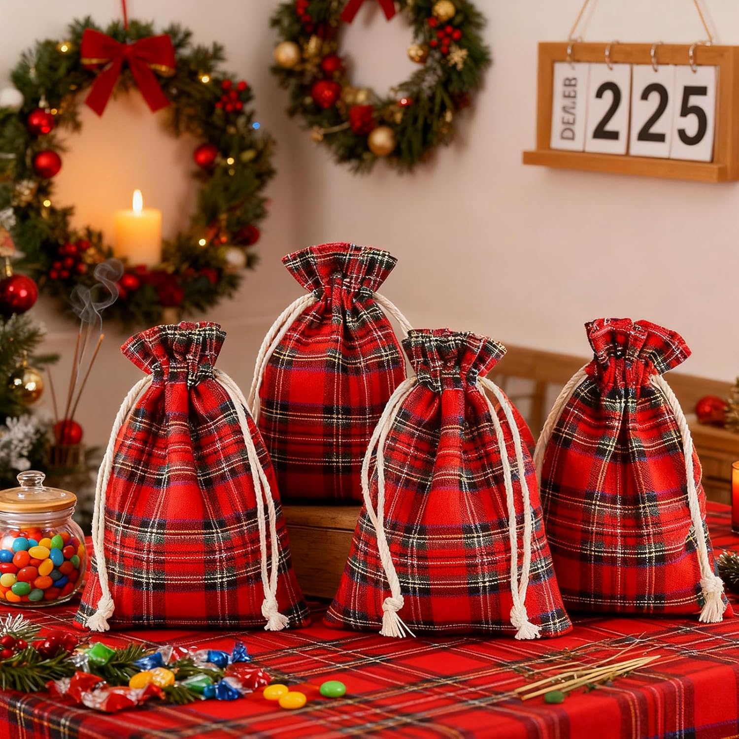 Sacchetti da 24 pezzi con adesivi per numeri del calendario dell'avvento, materiale della borsa in cotone: cotone. Dimensioni della borsa: ca. 10x14cm Per tutti gli amanti del fai da te le borse sono indispensabili. Puoi rifinire individualmente i piccoli sacchetti di stoffa con paillettes, perline, stampe, ecc. e creare le tue opzioni di stoccaggio per es. gioielli, trucchi, dolci, ecc. Lascia correre la tua immaginazione. La confezione include: 24 sacchetti in tessuto e adesivi con i numeri del calendario dell'Avvento
