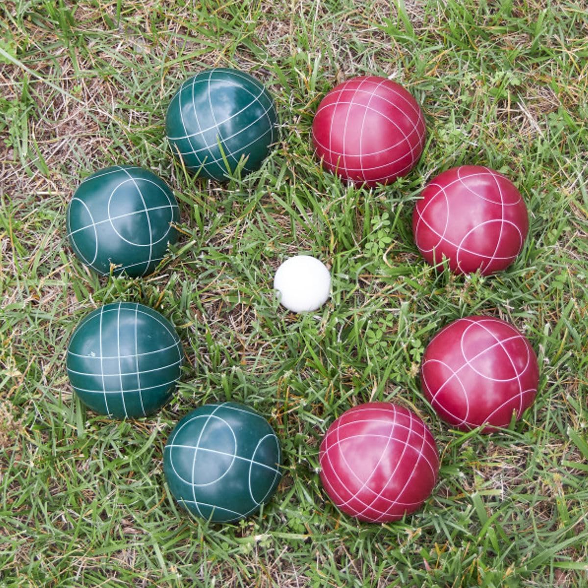 Set da gioco con palla da bocce: questo classico set da bocce o bocce è ideale per giochi all'aperto e include 4 palline verdi e 4 rosse per rappresentare due squadre per giocare in stile torneo o semplicemente per ore di divertimento con la palla. Materiale di qualità: le 8 palline da bocce sono realizzate con un materiale composto di poliresina di alta qualità che resiste a crepe e danni per un divertimento di lunga durata, ideali per giochi all'aperto sul prato o giochi in spiaggia. È incluso anche un pallino. Gioca ovunque: questo set di palline da bocce da prato è uno dei giochi più classici per adulti e familiari. Portalo con te al parco, spiaggia, barbecue, campeggi o cortile del tuo vicino per qualche amichevole competizione di bocce o bocce. Custodia per il trasporto inclusa: gli accessori per bocce si adattano comodamente all'interno della custodia nera inclusa con manici per una facile conservazione e trasporto per attività all'aperto, come giochi da spiaggia per adulti e famiglie. Dettagli del prodotto: materiale: poliresina composita. Dimensioni: palla bocce: (L) 10 cm; Pallino pallino: (L) 3,8 cm; Custodia per il trasporto: (L) 20,3 cm x (W) 20,3 cm x (H) 20,3 cm. Il kit include 8 palline, 1 Pallino e custodia per il trasporto. Colore: rosso e verde.