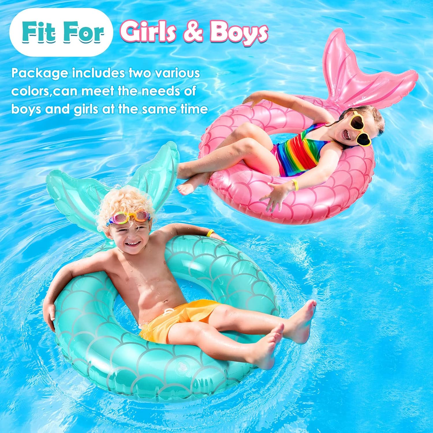 Materiale di qualità: realizzati in PVC spesso, gli anelli da nuoto sono atossici, insapori e ben resistenti all'estrusione e allo strappo. Gli anelli da nuoto manterranno il tuo bambino al sicuro durante gli sport acquatici e lo aiuteranno a imparare a nuotare. Forma a sirena: gli anelli da nuoto hanno la forma di una coda di sirena, in linea con il tema della piscina estiva. I colori vivaci del prodotto non solo rendono il tuo bambino il punto focale della piscina, ma lo fanno risaltare anche in caso di pericolo. Design a doppia tenuta: la valvola dell'anello da nuoto adotta un doppio design a tenuta stagna all'interno e all'esterno, il che rende gli anelli da nuoto non facili da perdere. Nota: NON riempire eccessivamente con aria, è sufficiente un gonfiaggio del 90%. Facile da trasportare: quando vuoi riporre i tuoi salvagente, basta aprire completamente la valvola, i prodotti possono essere sgonfiati in pochi secondi in modo da poter essere piegati senza occupare troppo spazio. Sono facili da trasportare e riporre. Ampia Applicazione - Gli anelli da nuoto possono essere utilizzati in varie situazioni per condividere la gioia con gli altri, come oceano, lago, fiume o piscina, decorazioni per feste. Lascia che il tuo bambino viva un'estate meravigliosa con questo prodotto!