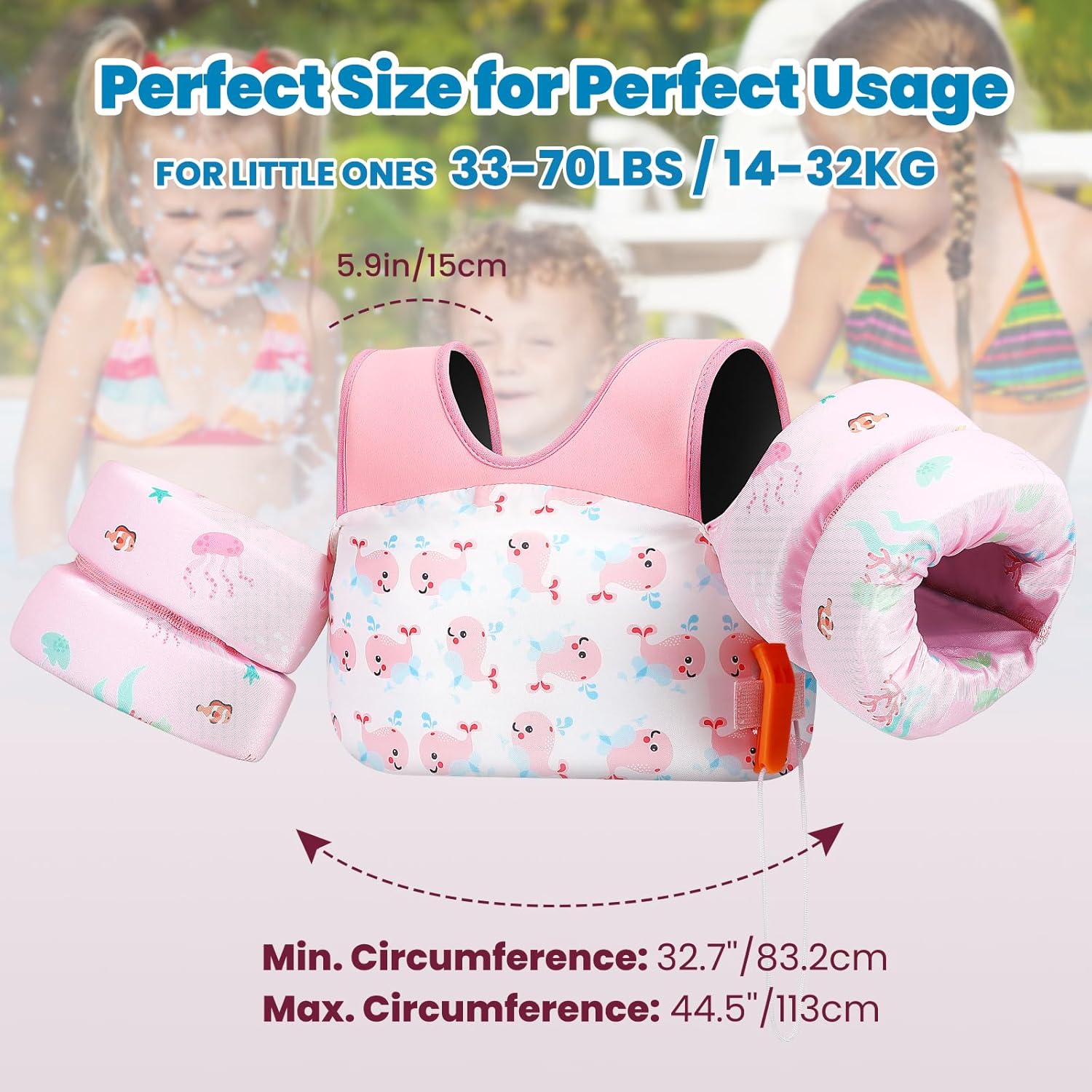 🐋【Grande Galleggiabilita】: Doppio bracciale gonfiabile insieme a una canottiera galleggente offre una grande galleggiabilità per bambini durante il nuoto, migliorando la sicurezza e aiutandoli a imparare a nuotare. Perfetto per l'estate sul mare, come il vaggio della vacanza di Ferragosto. 🐋【Materiale di Qualità】: Utilizzando il materiale di poliestere alla superficie, i bracciali realizzati in Neoprene e incorporato il cuscinetto in schiuma EPE che aiuta a bilanciare il galleggiamento, non l'inflazione senza rischio di perdite, ideale per l'uso dei bambini metre si nuotano. 🐋【Cinghia Regolabile】: Le due cinghie regolabili sul retro consentono di regolare la circonferenza del torace per adattarsi perfettamente ai bambini da 2 anni a 6 anni ( 31 a 66 libbre). E le fibbie di sicurezza possono essere allacciate sul retro per una maggiore sicurezza. 🐋【Sicuro per Nuoto】: Facile da indossare, è pronto per l'uso senza gonfiaggio. Basta tirare le braccia e allacciare le cinghie. Doppia galleggiabilità forte con cinghie di sicurezza permette ai bambini più libertà e sicurezza per nuotare e giocare. 🐋【Disegno Carino】: Adornato con i motivi cartoni animati e colore vivo, può tirare facilmente attenzione dei bambini e frattanto facilitare la supervisione dell'adulto. Si sposa perfettamente la funzione con la bellezza.