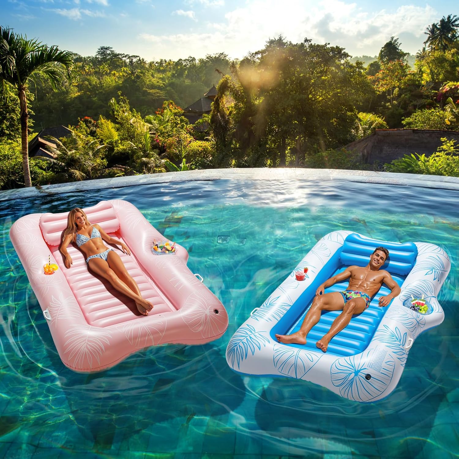 Design comodo e conveniente: il materasso ad aria per piscina è dotato di un cuscino rimovibile e di una base a coste. Il cuscino fornisce un eccellente supporto per il collo e la base a costine offre un comfort migliore per lunghe ore di relax. Il portabicchieri e il portasecchiello per il ghiaccio integrati mantengono le tue bevande a portata di mano e ti permettono di provare il comfort di una bevanda fresca in una calda giornata estiva. Grandi dimensioni: l'amaca gonfiabile per l'acqua misura 210 × 128 cm / 82,67 × 50,39 pollici con una capacità di peso massima di 136 kg / 300 libbre, adatta per la maggior parte degli adulti. È stampato con un motivo a foglie colorate per renderti più accattivante in piscina. Materiale di alta qualità: questo gommone è realizzato in materiale PVC resistente all'usura con spessore maggiore, robusto e durevole, offre una sicurezza più stabile. Goditi il tuo tempo libero nella calda piscina estiva. La valvola dell'aria di alta qualità è facile da gonfiare e sgonfiare rapidamente e ha buone prestazioni di tenuta. Dopo lo sgonfiaggio può essere facilmente ripiegato per risparmiare spazio. Facile da trasportare: la poltrona lounge da piscina è dotata di due maniglie portatili per una facile mobilità. Che tu stia atterrando fuori dall'acqua o muovendoti nell'acqua, è facile da sollevare e ti aiuta anche a mantenerti stabile e sicuro sul lettino della piscina. Usi multipli: con il materasso ad aria multifunzionale puoi goderti la comodità di avere più funzioni in una. Può essere utilizzato come lettino prendisole, piscina con palline, galleggiante sul lago, piscina personale, decorazione per piscina e altro ancora. Puoi usarlo sul tuo prato, giardino, patio, acqua o spiaggia per sperimentare diversi tipi di divertimento.
