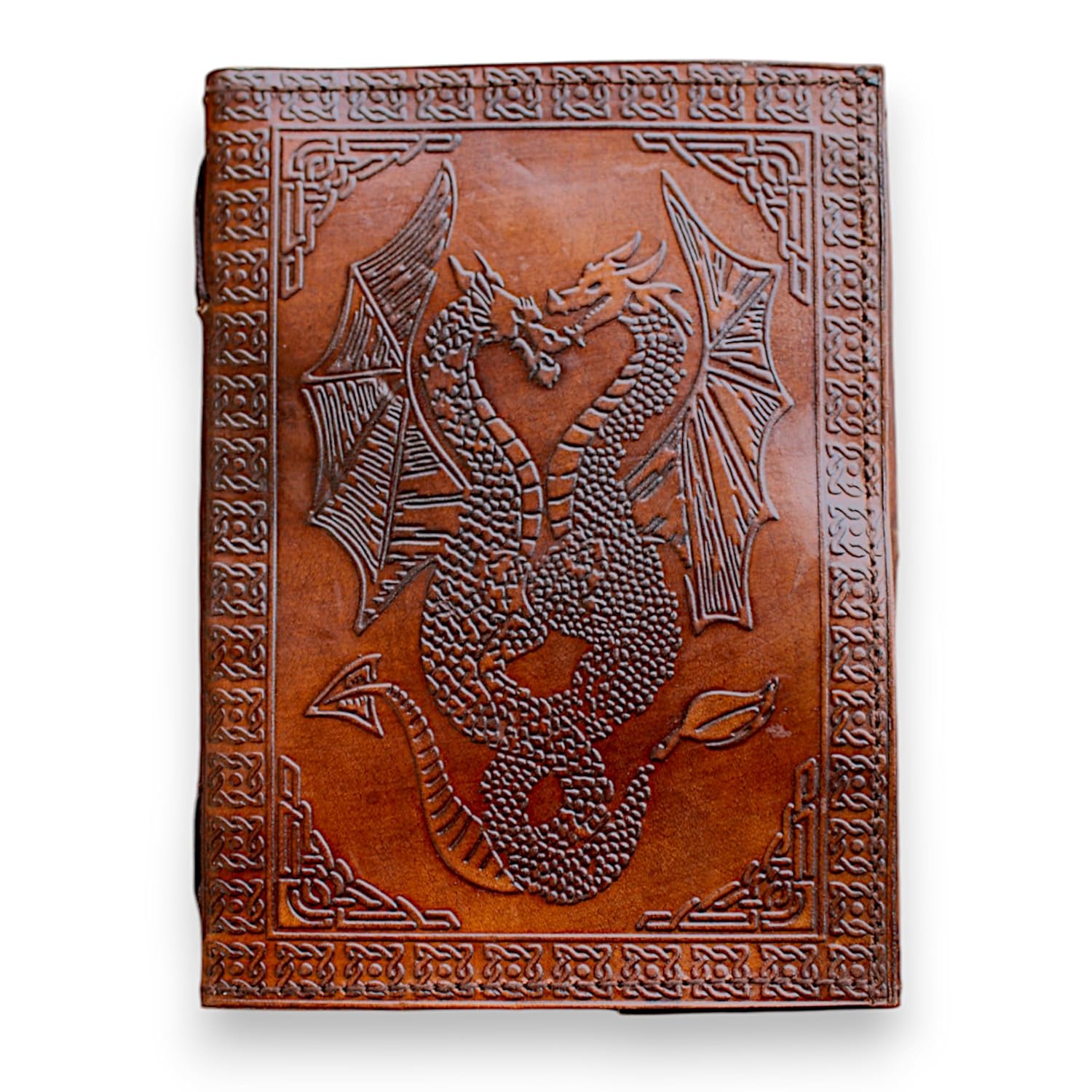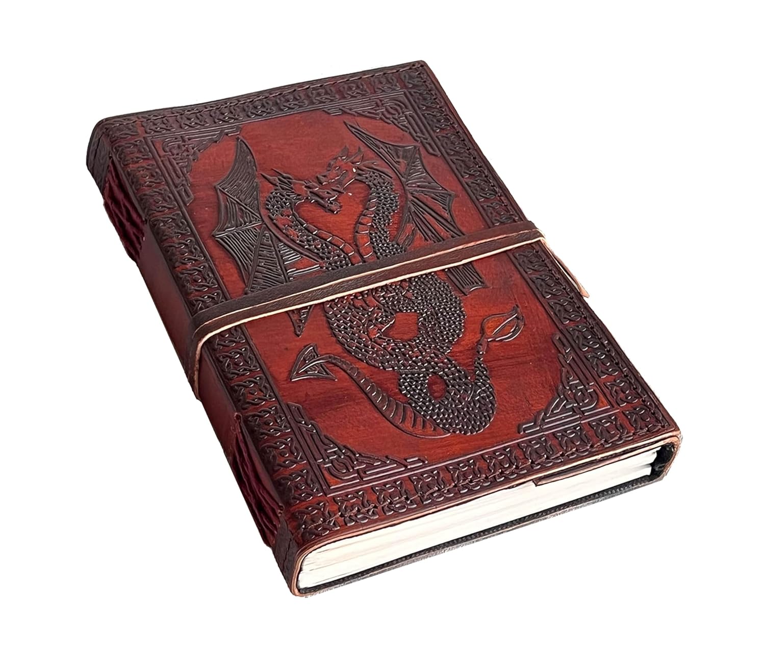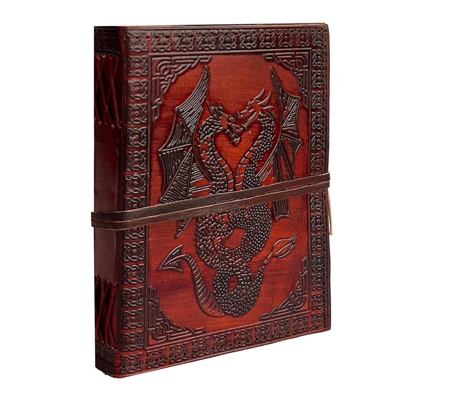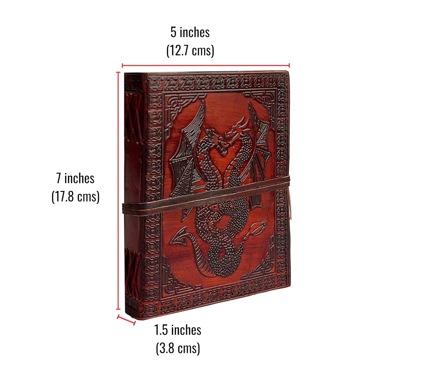 HG-LTHR 18 cm Blocco note Notebook Diario in pelle con copertina in pelle Lucchetto fatto a mano Grimorio Libro delle ombre Diario in pelle vuoto Drago celtico Libro delle ombre