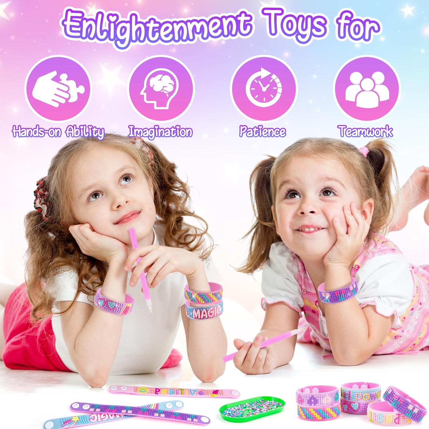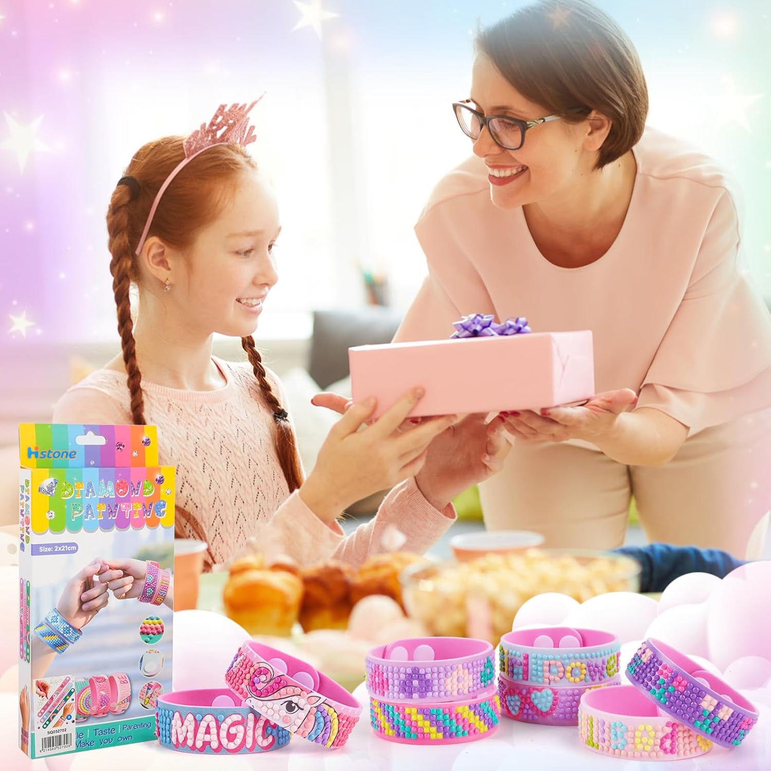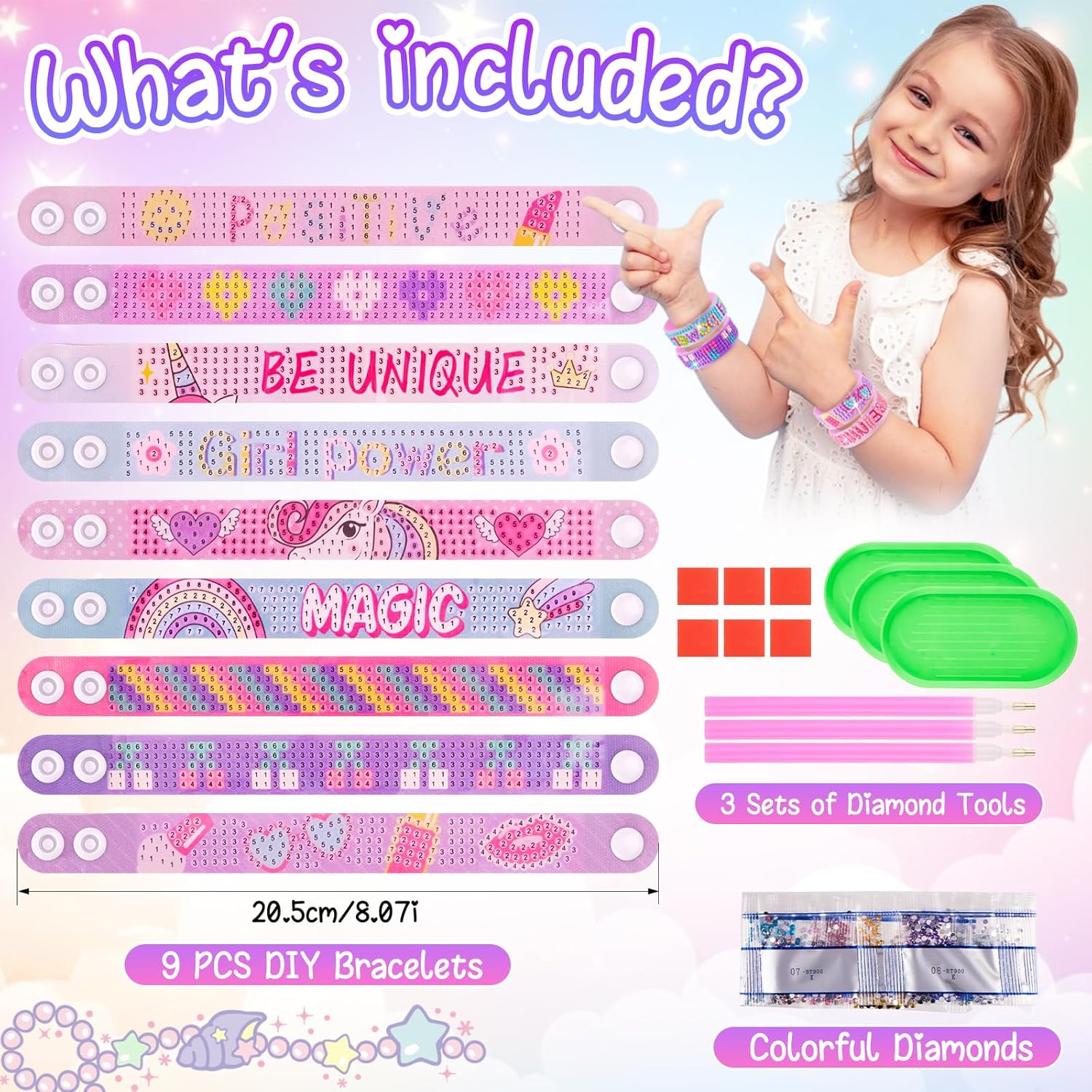 💗[Kit Creativo per Braccialetti di Diamanti fai da te] Questo kit per la creazione di braccialetti contiene 9 braccialetti con punti di diamante + 3 penne con punti di diamante + 3 dischi con punti di diamante. Un kit perfetto per 3 persone da realizzare insieme. Età adatta: bambini di 6-12 anni. I braccialetti di pittura artigianale con diamanti sono progettati con dimensioni regolabili, si può facilmente regolare il braccialetto in base alla lunghezza del vostro disegno. 💗[Materiale in Silicone di Alta Qualità] Questi braccialetti con pittura a diamante sono realizzati principalmente in materiale siliconico di alta qualità, resistente, facile da pulire, impermeabile, liscio e confortevole, la texture in PU non solo esalta la bellezza, ma offre anche una comoda esperienza di utilizzo. 💗[Facile da Usare] Il nostro kit di braccialetti fai da te per ragazze include modelli di incollaggio, è necessario incollare i piccoli diamanti sulle posizioni corrispondenti numero o lettera, in modo che i principianti e gli esperti possono facilmente godere il processo di fare e creare braccialetti belli e adorabili. Un sacco di strumenti per la penna a punta di diamante per soddisfare adulti e bambini per divertirsi a fare braccialetti fai da te insieme. 💗[Favorevole all'educazione Precoce] La pittura artigianale a diamante aiuta a sviluppare l'attenzione e la pazienza dei bambini. I bambini si concentreranno sulla realizzazione di dipinti artigianali con diamanti, allevieranno lo stress, miglioreranno l'attenzione e la concentrazione. Questi braccialetti fatti a mano con diamanti possono anche migliorare la manualità e la coordinazione dei bambini, aumentare la capacità di percepire i colori e stare lontani dai prodotti elettronici. 💗[Regalo ideale] I braccialetti fai da te per bambini includono un totale di 9 disegni diversi, tra cui il motivo dell'unicorno, dell'arcobaleno, del cuore d'amore e così via. Divertenti e carini, questi set di braccialetti con diamanti sono perfetti per le attività quotidiane di artigianato per le bambine dai 6 anni in su. Questo set di braccialetti di diamanti con unicorno per bambine è un regalo ideale per il compleanno, il Natale, la festa dei bambini, l'ingresso a scuola e altro ancora.