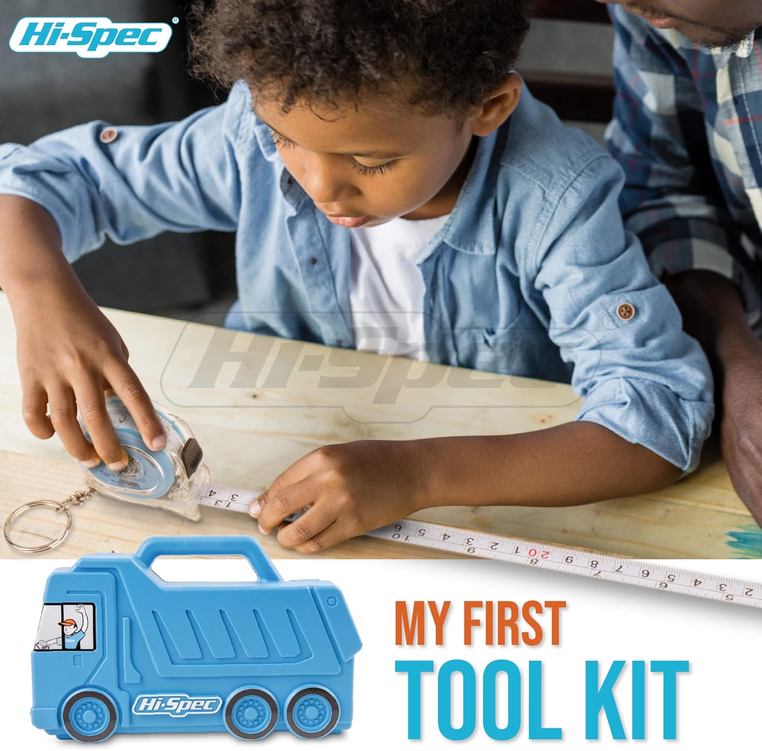 IL MIO PRIMO KIT DI ATTREZZI: introduci il tuo bambino al fai-da-te con questo set di attrezzi, accessori e dotazioni di sicurezza. Tira fuori il meccanico, l’appaltatore o il tutto fare che è in lui/lei, e libera la sua creatività! CASSETTA DEGLI ATTREZZI A FORMA DI CAMION: una bella cassetta degli attrezzi a forma di camion per tenere gli utensili al sicuro, protetti e sempre perfetti! Gli attrezzi si incastrano perfettamente negli slot individuali e la maniglia robusta assicura un trasporto sicuro fino al prossimo progetto PROGETTATI PER MANI PICCOLE: questi attrezzi completamente funzionanti sono stati progettati ergonomicamente per essere utilizzati nelle mani dei bambini così da poterne garantire un utilizzo sicuro ed efficace. I cacciavite nano garantiscono una facile presa e i martelli da 115g possono essere maneggiati saldamente senza affaticare IL PICCOLO AIUTANTE DI PAPA’: coinvolgi il tuo bambino in progetti fai-da-te per la casa con attrezzi di cui possano essere fieri – non ruberanno più gli attrezzi di papà, rendi il loro prossimo compleanno o Natale speciale con il loro primo kit di attrezzi! ATTREZZI VERI, RISULTATI VERI: questo kit è stato realizzato con materiali di qualità per resistere alle mani curiose ma spericolate dei più giovani. Gli attrezzi non sono giocattoli e dovrebbero sempre essere utilizzati sotto la supervisione di un adulto.