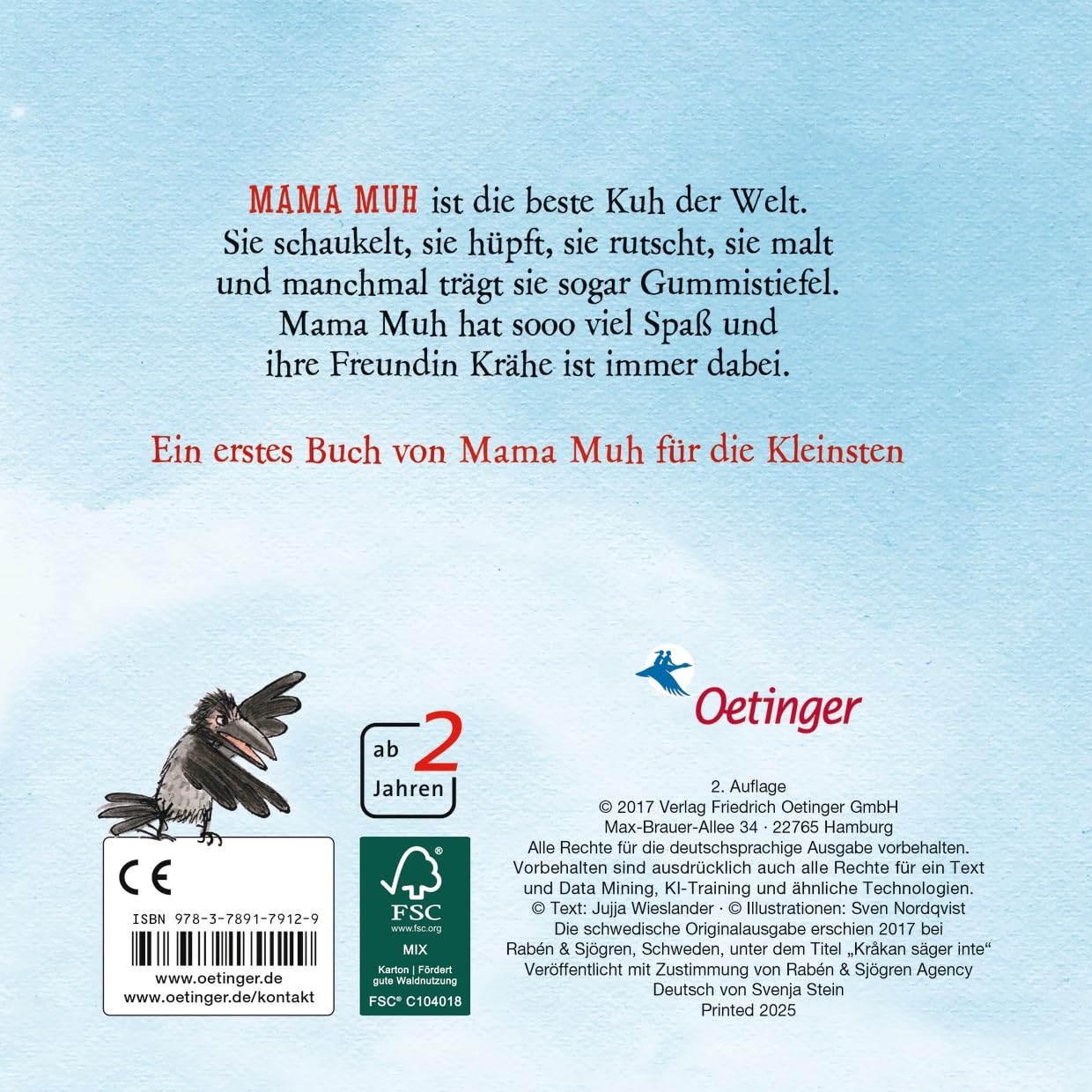 Mama Muh ist ander als andere Kühe und probiert sich gern aus, dies geht auch mal schief. So auch in diesem Buch. Dann kommt jeweils die Krähe und erzählt Mama Muh, sie dürfe dies nicht, sie dürfe das nicht. "Kühe machen sowas nicht." Was für ein Sherlock! Das hat für mich nichts von Humor. Vor allem, weil es die Krähe auch nicht wirklich wiederspiegelt. Kinder hören sehr oft Nein am Tag, nun also auch bei Mama Muh. Die Bilder kennt man aus den Büchern und der Fernsehserie, sie sind schön anzusehen und das Buch ist von guter Pappqualität. Wen der negative Vibe nicht stört oder wem es egal ist, weil bei dem Kind eh die Bilder im Vordergrund stehen, kann sich dieses Buch gerne kaufen. Bei unserem kleinen Mama Muh-Fan spielt der Text aktuell noch keine Rolle, da wird das Buch für seine Bilder von Mama Muh geliebt. Die inhaltliche Kritik oben ist gänzlich aus meiner Erwachsenen Perspektive verfasst.