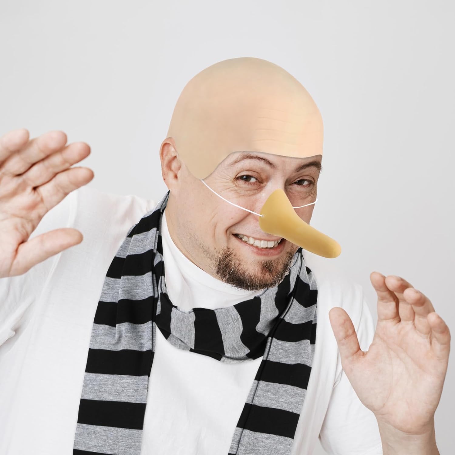 Design a tema: questo classico set di costumi è progettato con umorismo e stranezza come tema, tra cui un cappello calvo, una sciarpa a righe nere e grigie e un naso lungo finto, che ti consente di mostrare umorismo e diventare il fulcro della gioia alla festa. Materiali di alta qualità: il cappello calvo può facilmente coprire i capelli e fornire un aspetto naturale, con una cuffia per parrucca a rete, la sciarpa è morbida e delicata sulla pelle e il naso lungo finto con fori è traspirante, assicurandoti di essere comodo da indossare e resistente. Occasioni applicabili: gli accessori per costumi da uomo sono adatti a varie feste di Halloween, balli in maschera, carnevali e altre occasioni, consentendoti di mostrare umorismo e diventare il punto di risata nella festa e portare un'atmosfera gioiosa. Il set include: gli accessori per cosplay includono un cappello calvo, una sciarpa a righe nere e grigie e un naso lungo finto. Un acquisto può completare il look divertente generale, consentendoti di mostrare facilmente il tuo stile umoristico. Regalo ideale: questo costume di Halloween per adulti è un regalo ideale per gli amici che amano l'umorismo e la stranezza, consentendo loro di mostrare umorismo e comicità alla festa, portando risate e felicità. Che si tratti di un compleanno, una festa o un festival, è un regalo divertente.