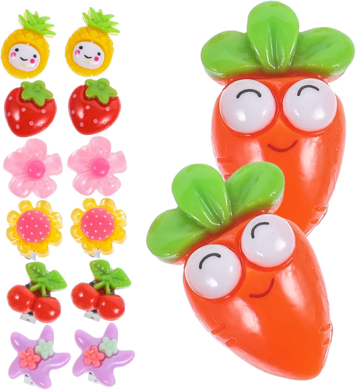 Set molto carino. Gli orecchini non sono molto grandi ma per bambine misura perfetta. Disegni e colori accattivanti. Sono comprese anche le protezioni in plastica morbida trasparente per i lobi.