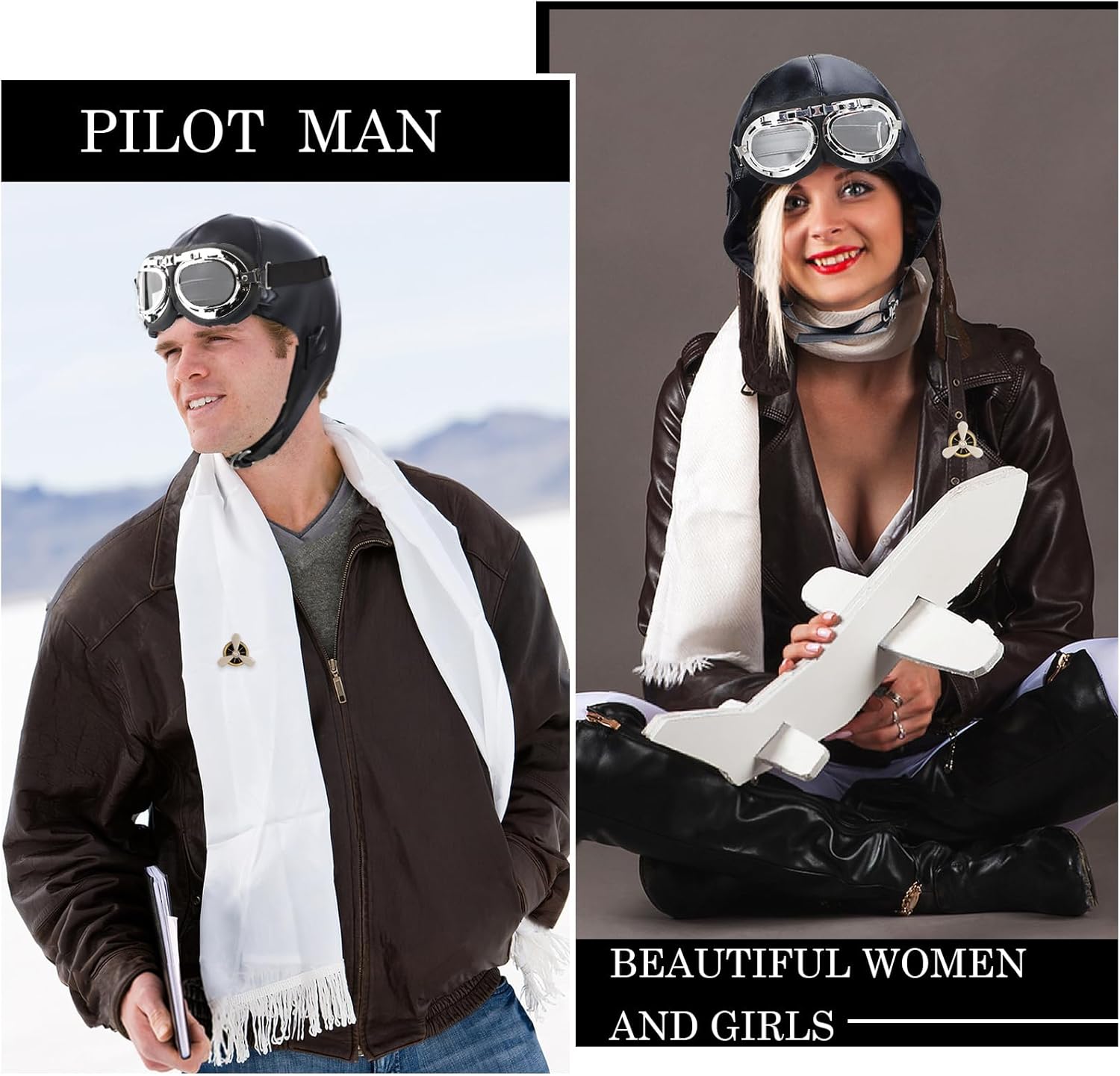 Materiale: Occhiali: lenti antigraffio, montatura in gomma Cappelli: pelle di alta qualità, fodera elastica Sciarpa: cotone, morbido e traspirante Spilla: materiale metallico, superficie placcata in oro Caratteristiche del prodotto: Occhiali: design retrò, lenti anti UV, elastico regolabile, adatti a tutte le forme del viso. Cappello in pelle: classica forma da cappello da pilota, materiale in morbida pelle, fodera traspirante e confortevole, adatto per autunno e inverno. Sciarpa bianca: lunghezza moderata, abbinabile a piacimento, calda e alla moda, adatta a una varietà di occasioni. Spilla da pilota: squisito materiale metallico, design a spillo, facilmente fissabile su vestiti o sciarpe, aggiungendo fascino ai dettagli. Applicabile persone: Appassionati di volo, fan della storia, amanti dello stile retrò Adatto per Halloween, feste a tema, cosplay, fotografia e altre occasioni Elenco di imballaggio: Occhiali x1 Cappello di pelle nera x1 Sciarpa bianca x1 Spilla da pilota x1 Precauzioni: Non pulire gli occhiali con forza, si consiglia di pulirli con un panno morbido. Non toccare il cappello con oggetti appuntiti per evitare di graffiare la superficie in pelle. La sciarpa può essere lavata a mano e la spilla deve essere tenuta lontana dall'acqua per evitare la ruggine. Motivi per l'acquisto: Questa tuta da pilota non solo ripristina la classica forma da pilota, ma unisce anche praticità e moda. Che sia per collezione, per indossarlo o per regalarlo, può soddisfare le tue esigenze.
