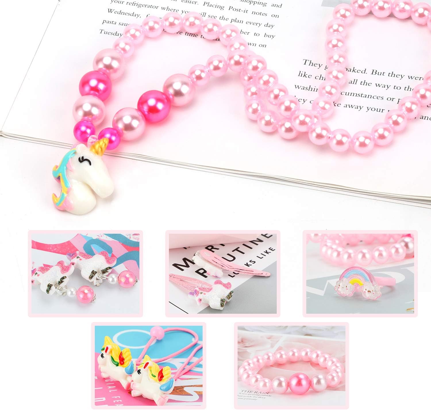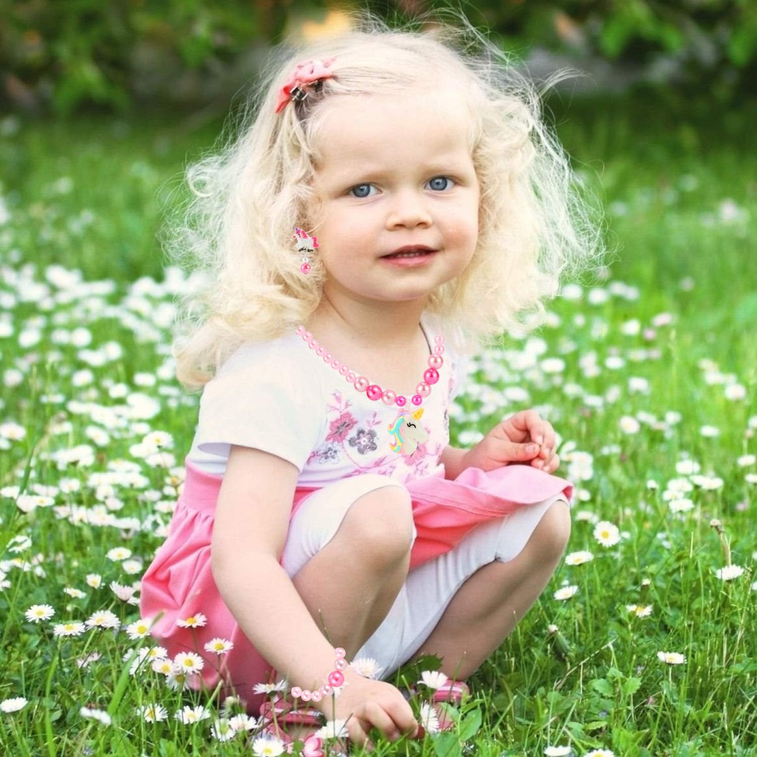 Materiale: i gioielli per bambine sono realizzati in plastica e resina, nessun odore particolare e durevoli, da usare senza preoccupazioni. Dimensioni: borsa: 5,1"/13 cm * 6,3"/16 cm, collana: 9,1"/23 cm, braccialetto: 2,8"/7 cm, ottimo accessorio per vestirsi, adatto a bambini dai 3 agli 8 anni. La confezione include: 1 borsa con unicorno, 1 collana, 1 braccialetto, 1 anello, 1 orecchini, 2 fermagli per capelli, 2 elastici e perline leggere di diverse dimensioni. Set di gioielli colorati: un bellissimo gioco di unicorno rosa con diversi colori di perline a bolle. Crea un mondo femminile fantastico che sia tuo. Regalo perfetto: il set di gioielli con unicorno principessa è ideale per feste di compleanno, Halloween, Natale, feste a tema principessa, feste in maschera e altre attività ricreative.