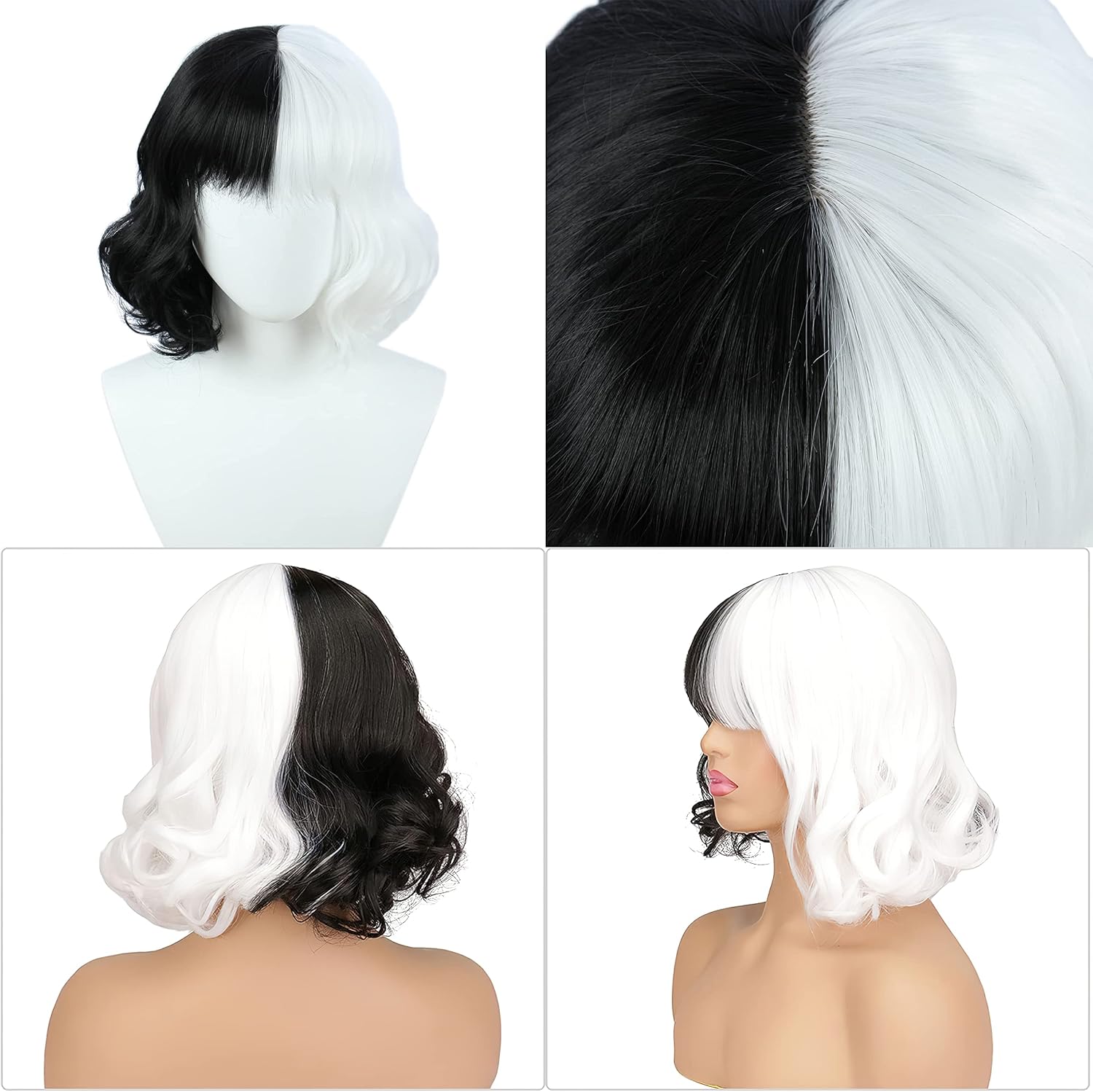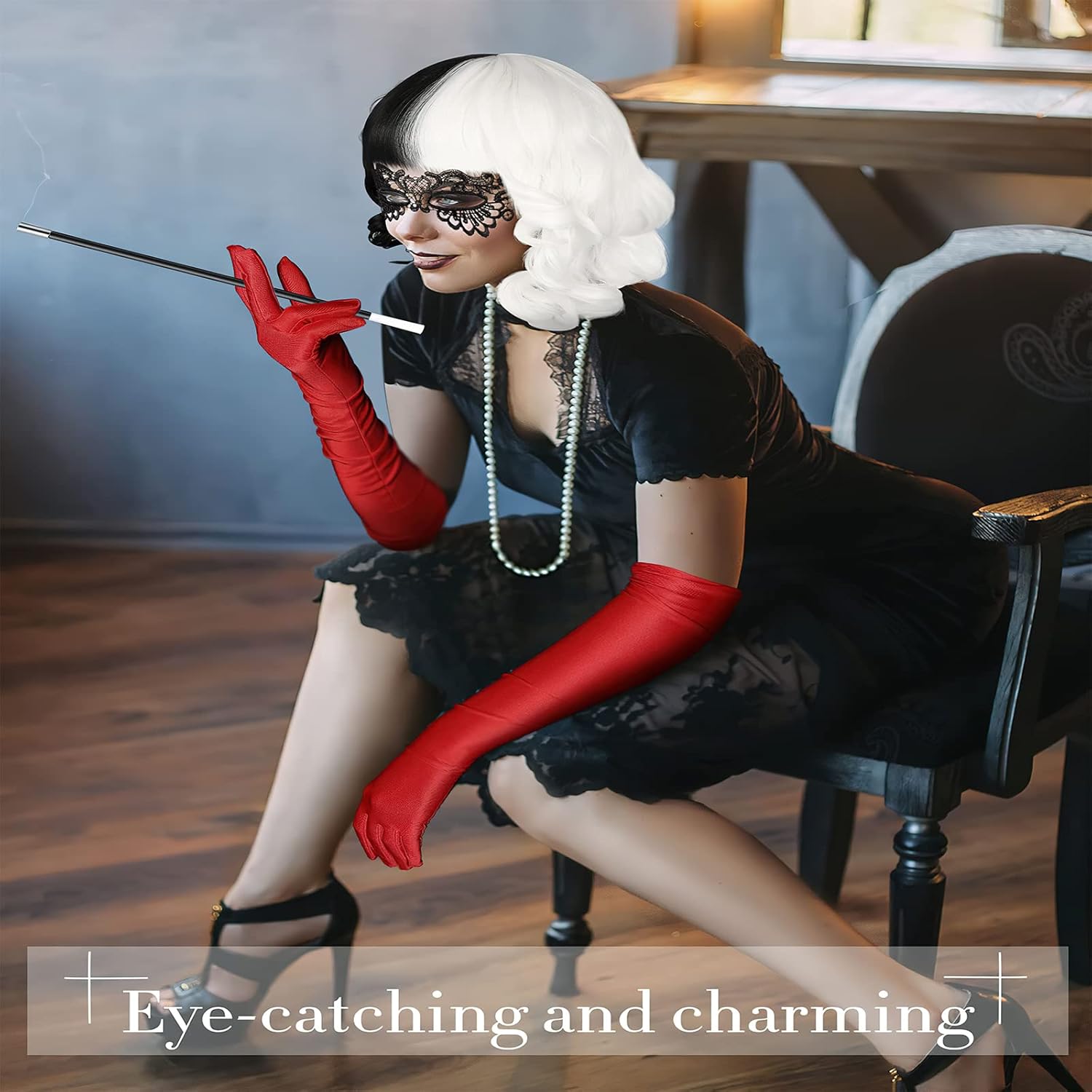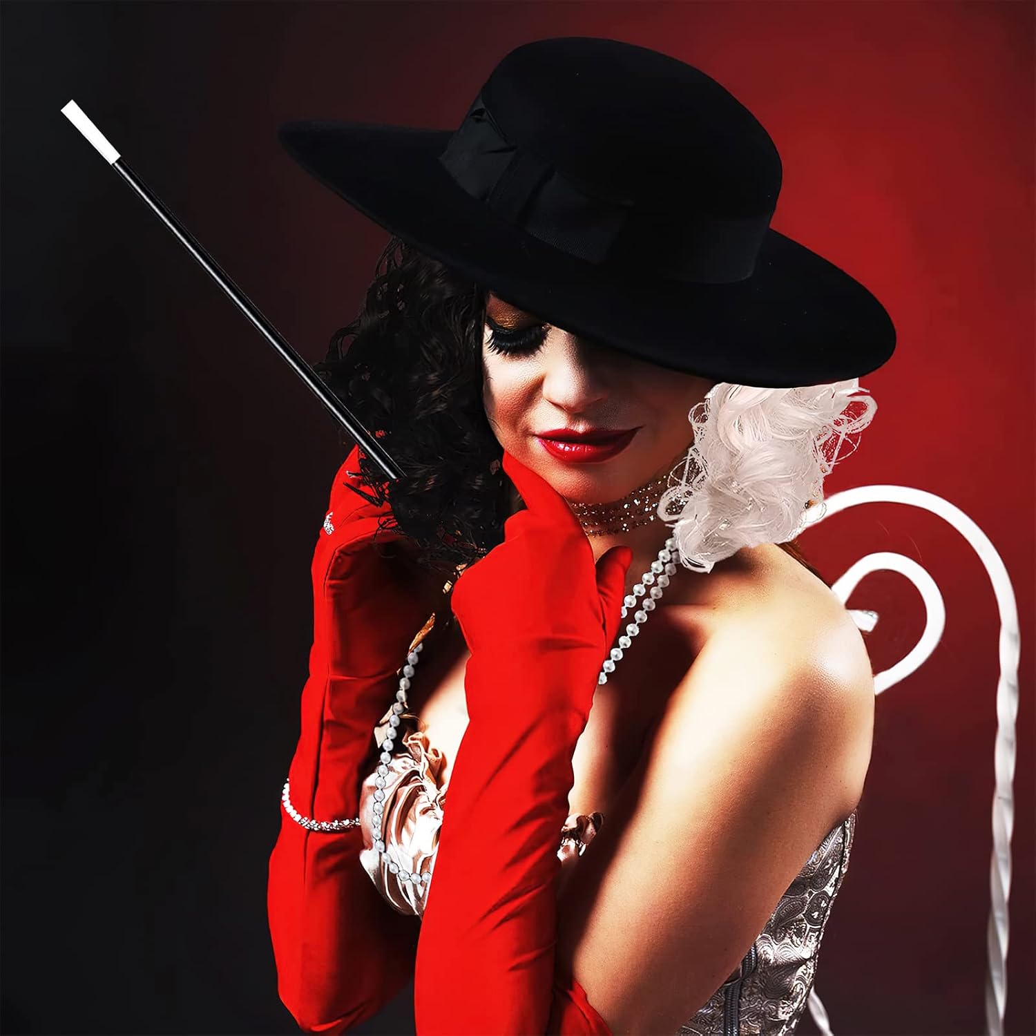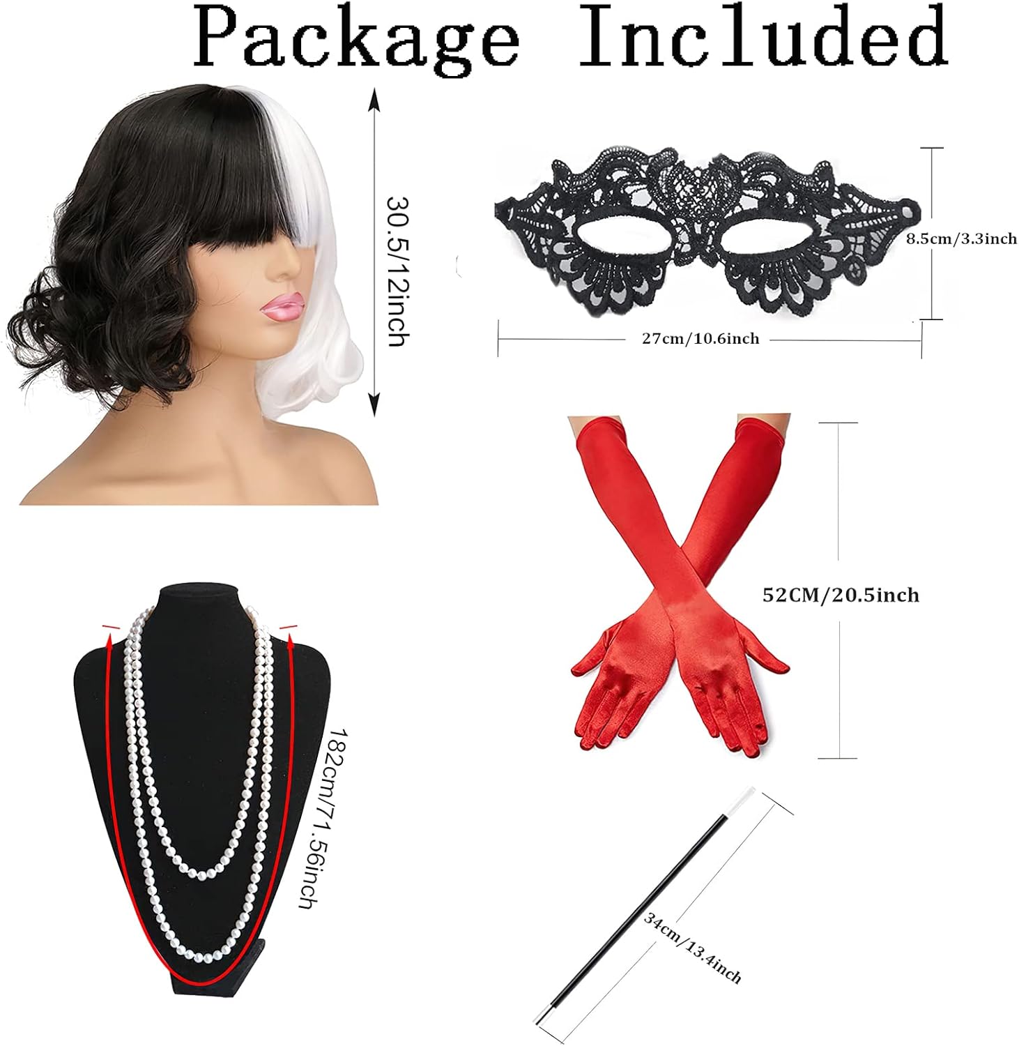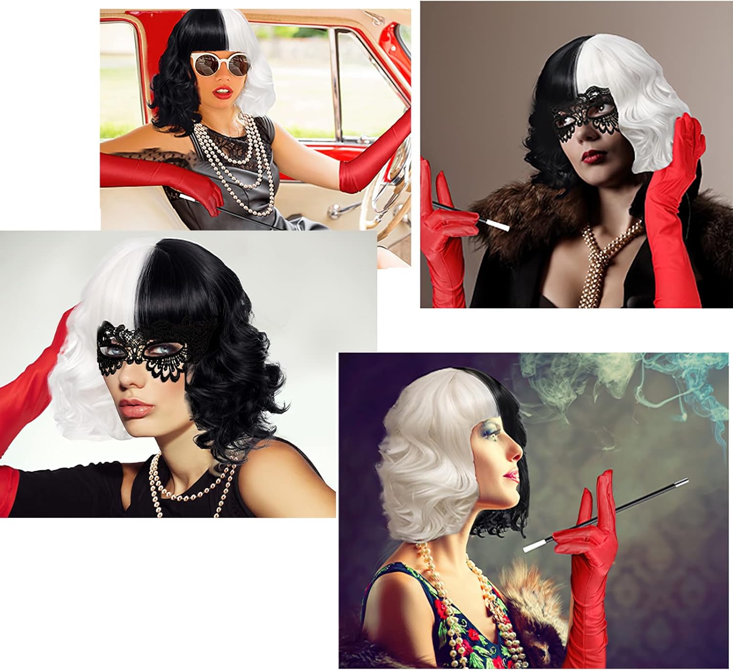 Hifot Set Di Accessori Per Crudelia Da Donna Parrucca Guanti Lunghi Collana Maschera Nera Set Di Bigiotteria Per Halloween Party Carnevale Cosplay
