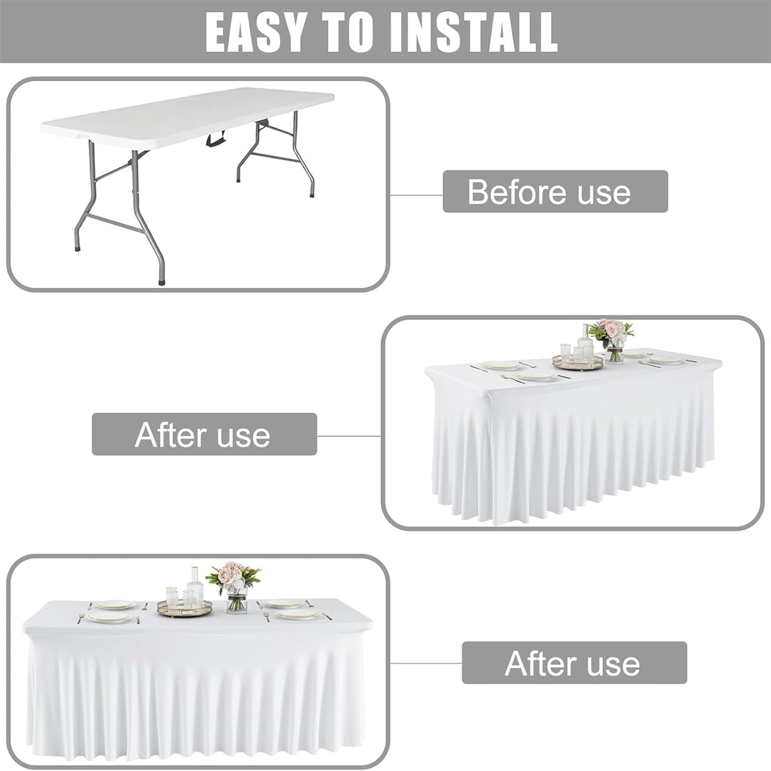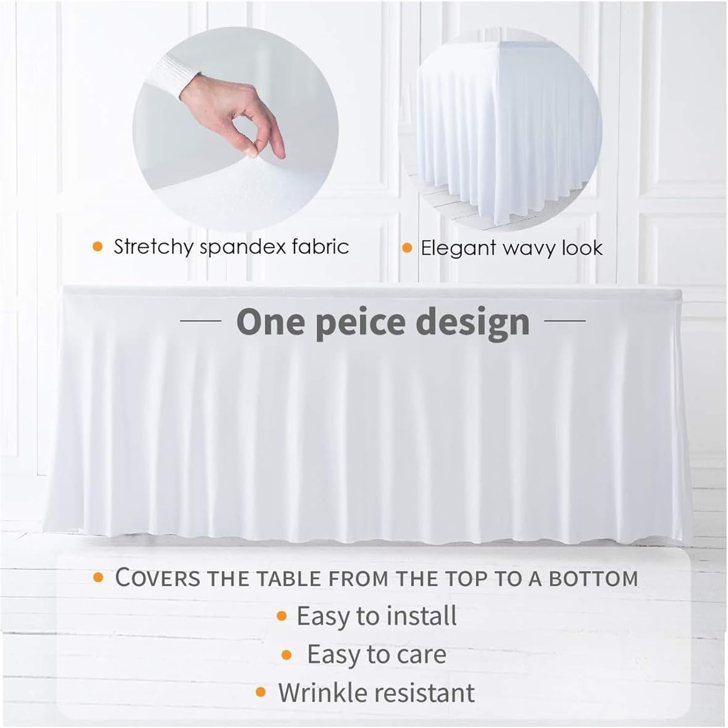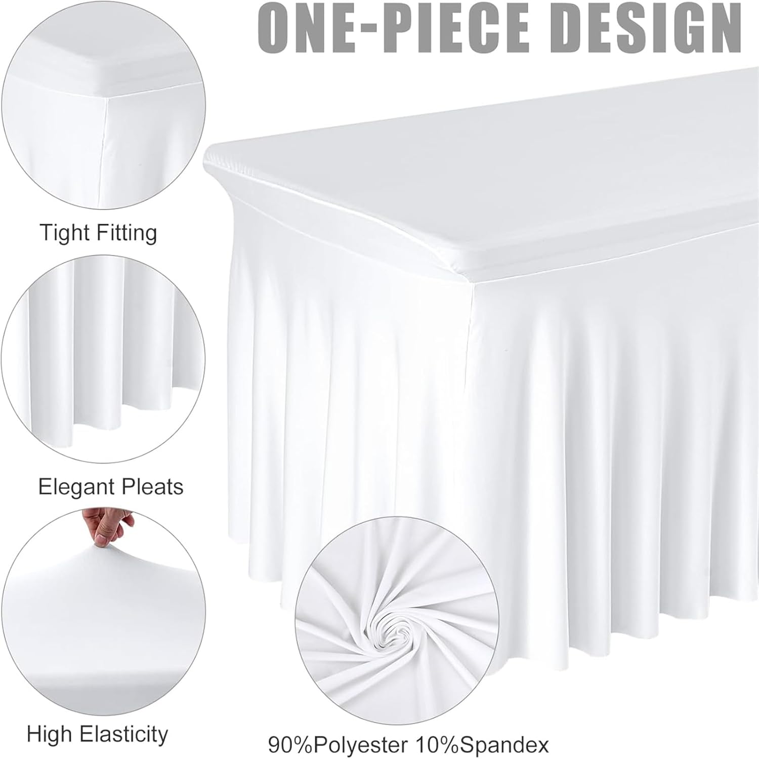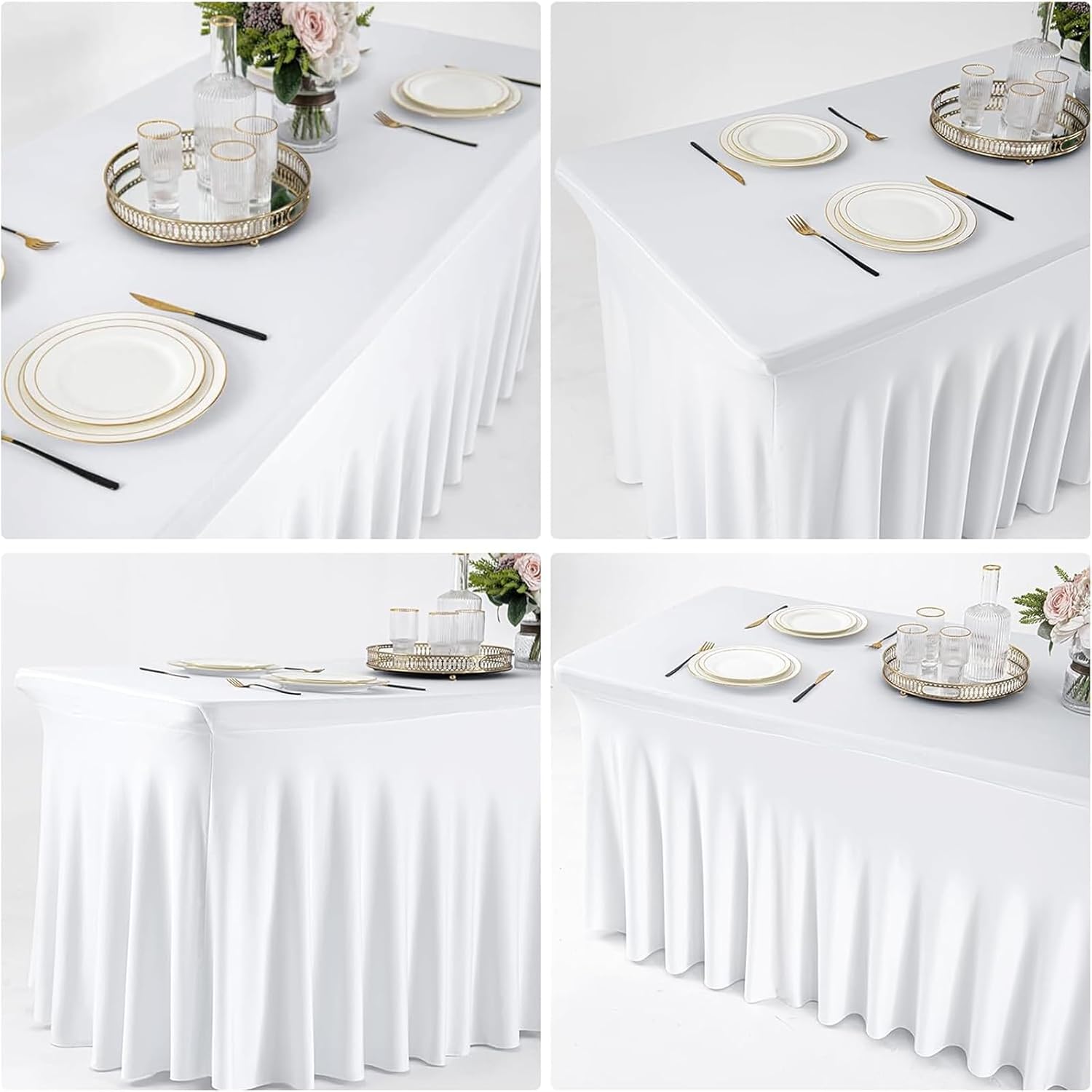 Materiale della tovaglia: la tovaglia in spandex è una tovaglia elastica, antistrappo e antirughe, liscia, non facilmente deformabile. La nostra tovaglia è realizzata al 90% in poliestere e al 10% in spandex, è molto adatta per la decorazione delle feste. Tovaglia con gonna: La tovaglia in spandex con gonna ondulata rispetto alla tovaglia tradizionale risulta elegante e unica, permettendo ai tuoi eventi di attirare l'attenzione. Spessa e resistente: adatta a tavoli rettangolari, buffet, bar, ecc. Abbinala a una tovaglia semplice per creare un look elegante e professionale! Decorazione robusta per eventi, fiere, fiere, ideale per hotel e ristoranti! Occasione: tovaglia perfetta per feste di compleanno, decorazioni per baby shower per ragazze, ricevimenti di nozze, buffet, decorazioni per tavoli da dessert per banchetti, venditori, decorazioni per tavoli da soggiorno. Le gonne da tavolo plissettate in poliestere sono più flessibili e versatili delle tradizionali tovaglie. Facile da pulire: basta indossare la gonna da tavolo qualche ora prima dell'inizio della festa. La tovaglia per feste può essere lavata a mano o in lavatrice, appesa ad asciugare e quindi riutilizzata per l'evento successivo.