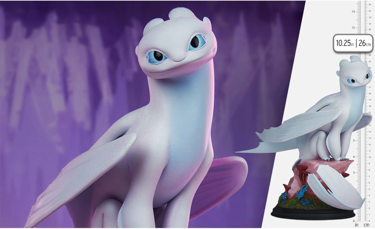 FIGURINA DA COLLEZIONE -- Statua da collezione, ispirata al personaggio del film d'animazione, questa figura è meticolosamente realizzata, presenta un design squisito e una pittura raffinata, un aspetto realistico e dettagli squisiti. ARTIGIANATO SQUISITO -- La Light Fury ha scaglie sulla testa e artigli sui piedi, e le pinne arrotondate della sua coda e delle ali catturano la morbidezza di questa specie segreta di drago. Rifinita con una lucentezza bianca perlata e accenti blu. DECORO SQUISITO -- Questa statua è adatta per la decorazione di case e stanze, davanzali del patio, ingressi, corridoi e vetrine. La statua di Polystone Light Fury è completamente scolpita e dipinta per catturare i dettagli eleganti dell'aspetto animato del drago in un formato di statua da collezione. REGALO DA COLLEZIONE -- Questa Statua da Collezione è il regalo perfetto per compleanni o festività. Colleziona una gamma di figure anime - siano esse mitiche, moderne o Cyber-punk. Consigliato per età 15 anni e oltre. SPECIFICHE -- Altezza: 10,25" (260,35 mm), Larghezza: 7,2" (182,88 mm), Profondità: 10,82" (274,83 mm). Peso della confezione circa 12,00 lbs (5,44 kg). Materiali del prodotto: realizzato in Polystone.