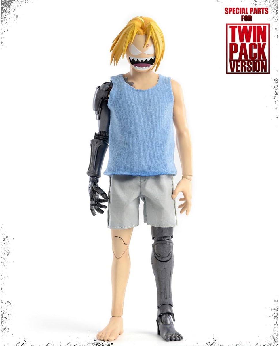 Prima apparizione - Dall'anime "Fullmetal Alchemist: Brotherhood", viene rilasciata una figura da collezione in scala 1/6 di Edward e Alphonse come set! Questo merchandise include Edward & Alphonse e accessori aggiuntivi per Edward esclusivi per questo set. Edward è una figura articolata alta circa 25 cm. Il suo costume utilizza tessuto. Il pezzo del viso è intercambiabile tra un viso standard e un viso arrabbiato, e il ciuffo frontale è intercambiabile tra un capello standard e un capello d'azione. Altri accessori includono una lancia, una lama Automail, un orologio da tasca e 9 set di mani intercambiabili che rendono possibile replicare varie scene dell'anime. Alphonse è una figura articolata alta circa 36,8 cm. La figura utilizza parzialmente tessuto. La testa è intercambiabile tra una testa standard e una testa con espressione comica, e la testa standard ha una funzione di illuminazione installata negli occhi. Altri accessori includono Xiao-Mei (Panda), Gatto, 3 paia di mani intercambiabili che rendono possibile replicare varie scene dell'anime. Twin Pack - include i seguenti accessori bonus per Edward oltre agli accessori di base: faccia con espressione comica, maglietta senza maniche, mutande, piede destro nudo e piede sinistro Automail. Specifiche - La scala del prodotto è approssimativamente 1/6. L'altezza del prodotto è di circa 37 cm. Il peso della confezione è di circa 2 kg. Realizzato in ABS, PVC, tessuto e metallo pressofuso.