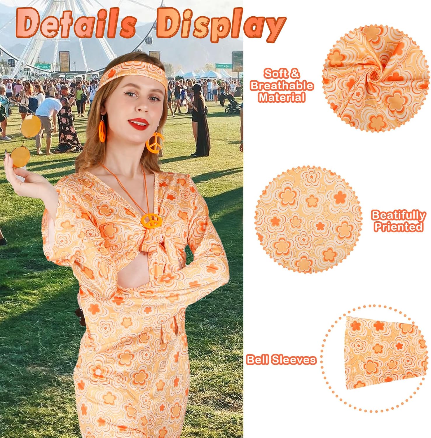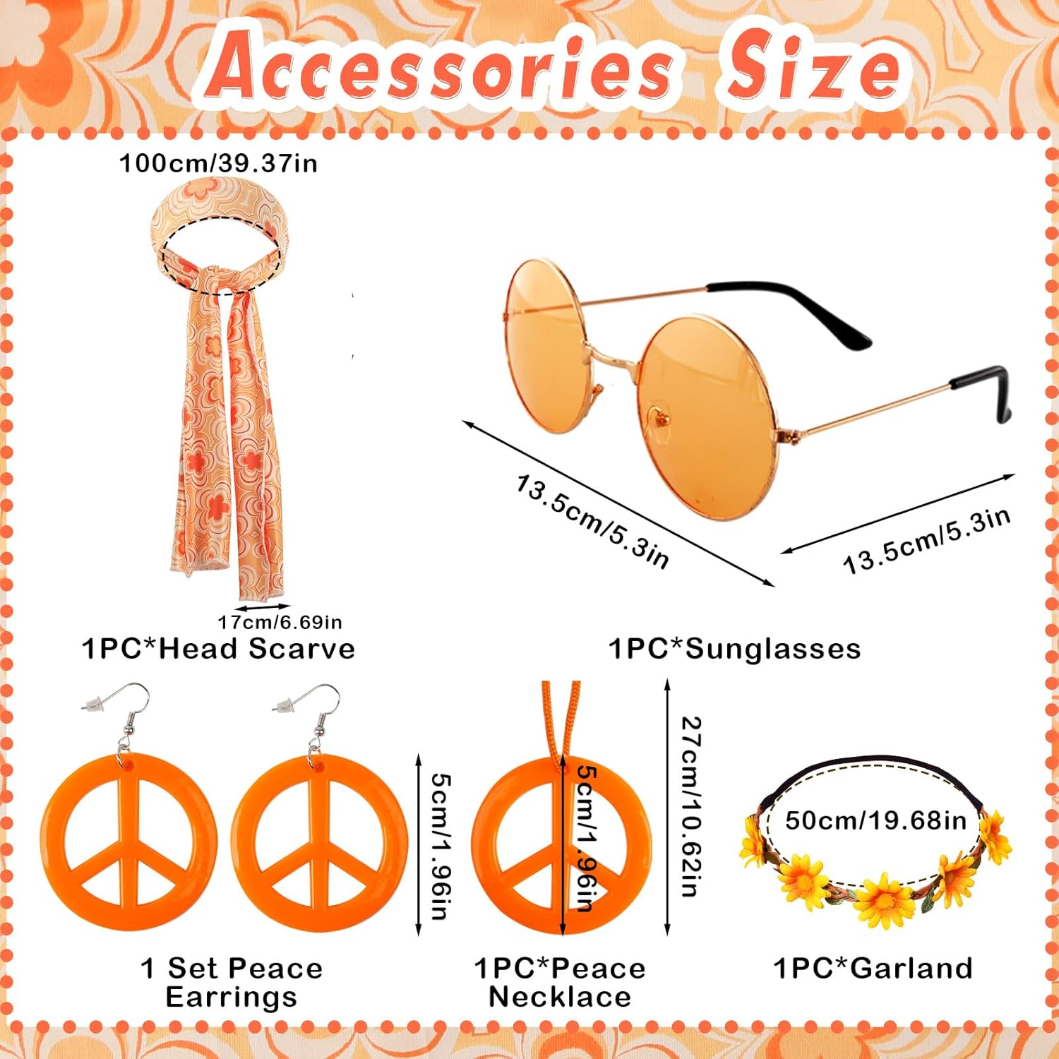 Costume da hippie, set da donna, anni '60, anni '70, abbigliamento hippie, costume hippie da donna, stile hippie, accessori hippie con collana da discoteca, orecchini, fascia da sole Perché scegliere il costume da donna hippie? 1. Lo stile tipico degli anni '60 e '70 con i nostri accessori hippie ti fa immergere rapidamente nel mondo degli anni '60 e '70. 2. Ideale per feste in costume anni '60, 70, feste in maschera, feste di carnevale o semplicemente per l'uso quotidiano. Quali garanzie ottieni? Ci impegniamo a fornire prodotti di alta qualità e crediamo che vi piacciano i nostri prodotti. Se avete problemi nel processo di utilizzo, potete contattarci in qualsiasi momento, vi risponderemo al più presto possibile fino a quando non siete soddisfatti.