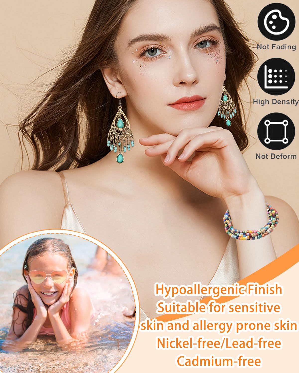44 accessori hippie: 1 collana della pace, 1 paio di occhiali hippie, 1 paio di orecchini, 1 braccialetto ALTA QUALITÀ: Questa è una collana della pace con un diametro di 2 pollici (circa 5 cm di diametro). L'aspetto è pesante e la qualità è estremamente elevata. Occhiali Hippie: gli occhiali Hippie sono occhiali retrò in taglie per adulti (circa 5 cm di diametro). Questi occhiali sono eleganti e comodi da indossare, perfetti per le donne che indossano abiti hippie. Occasione adatta: che si tratti di una festa a tema anni '70, di un carnevale o semplicemente dello stile hippie di tutti i giorni, indossando costumi hippie da donna attirerai l'attenzione di tutti. Garanzia di soddisfazione al 100%: ci impegniamo a fornire prodotti e servizi di alta qualità. Per qualsiasi domanda, non esitate a contattarci.
