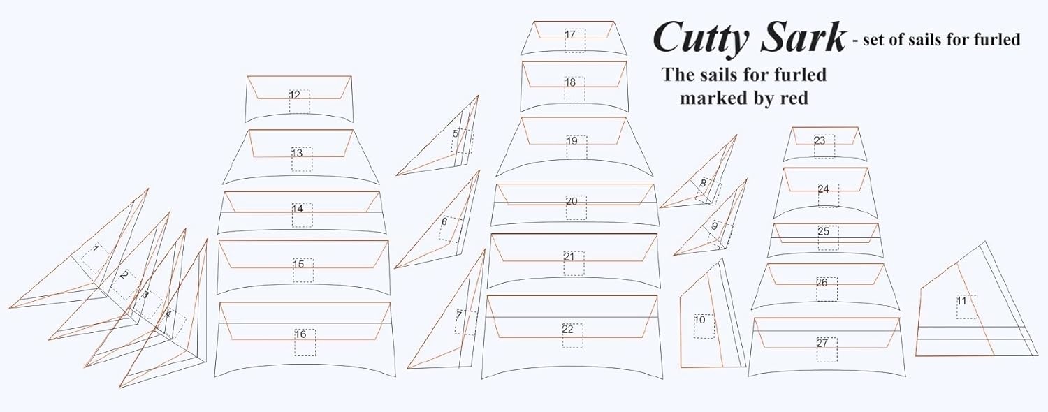 Set di vele in lino per imbarcazioni a vela, imitazione di vele arrotolate. Vela per modello: Cutty Sark Produttore di modelli: Revell: 1:96 Numero di vele nel set: 27 Produttori di componenti aggiuntivi: HiSModel Per una descrizione completa delle vele e ulteriori informazioni consultare la descrizione dettagliata.
