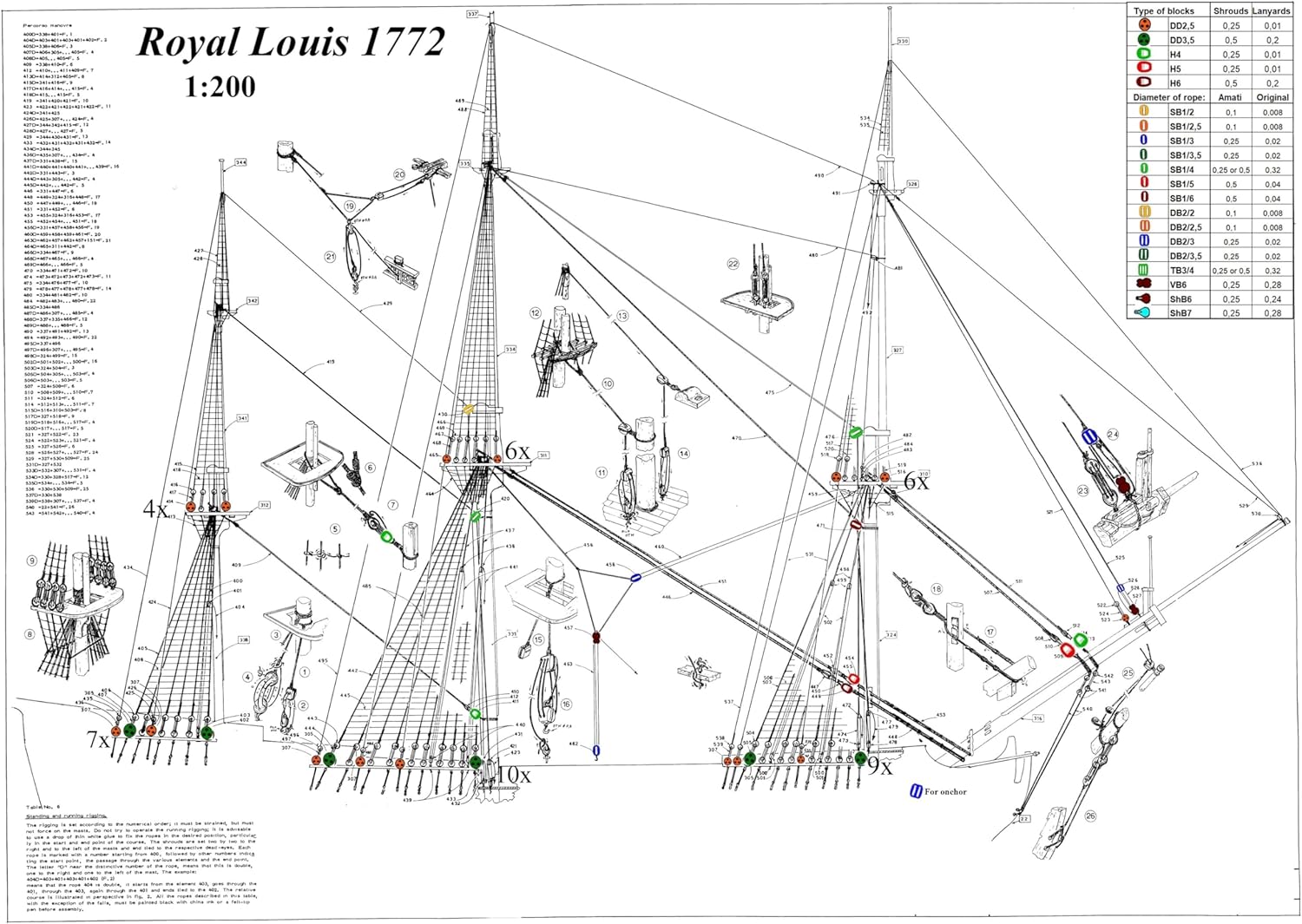 Un set di rulli in noce consigliati per barche a vela con sartiame fisso - variante semplice. Per modello: Royal Louis, Le Gladiateur Produttore del modello: Scala luminosa: 1:200 Numero di pulegge: 248 Produttore di accessori: HiSModel