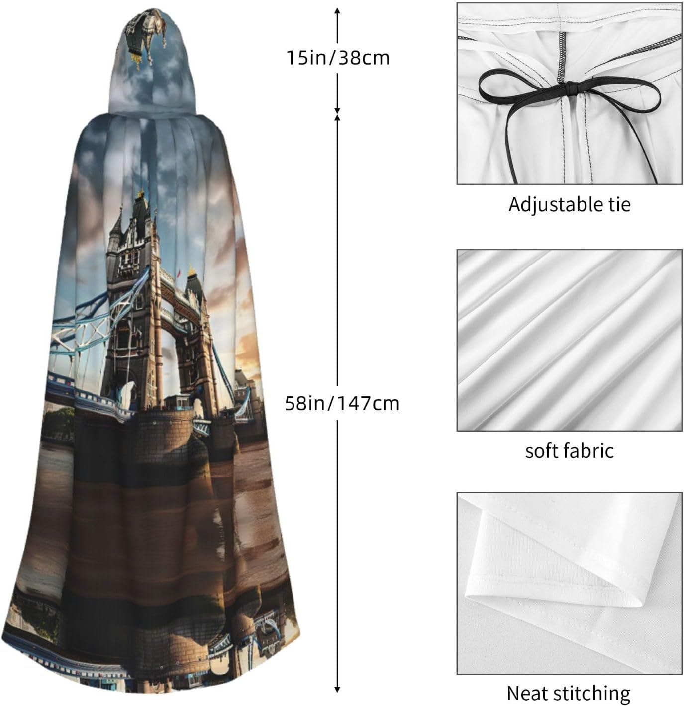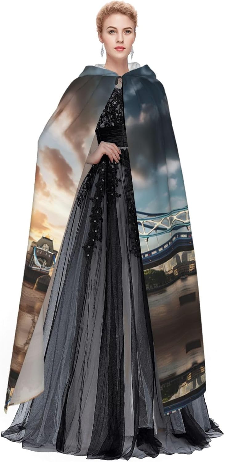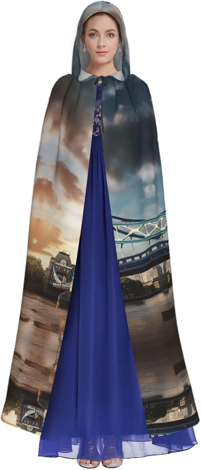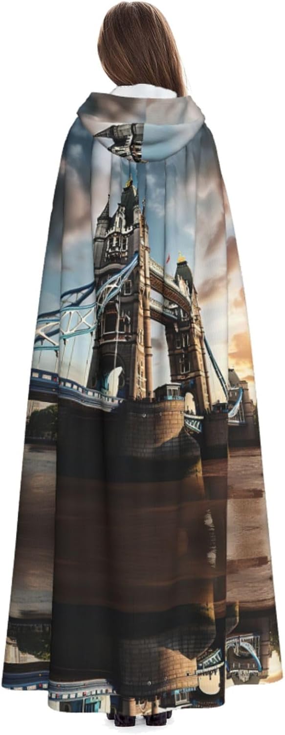 Historic Old Tower Bridge London Mantello con cappuccio unisex Halloween Natale mantello vampiro mago vestaglia Cosplay Costume