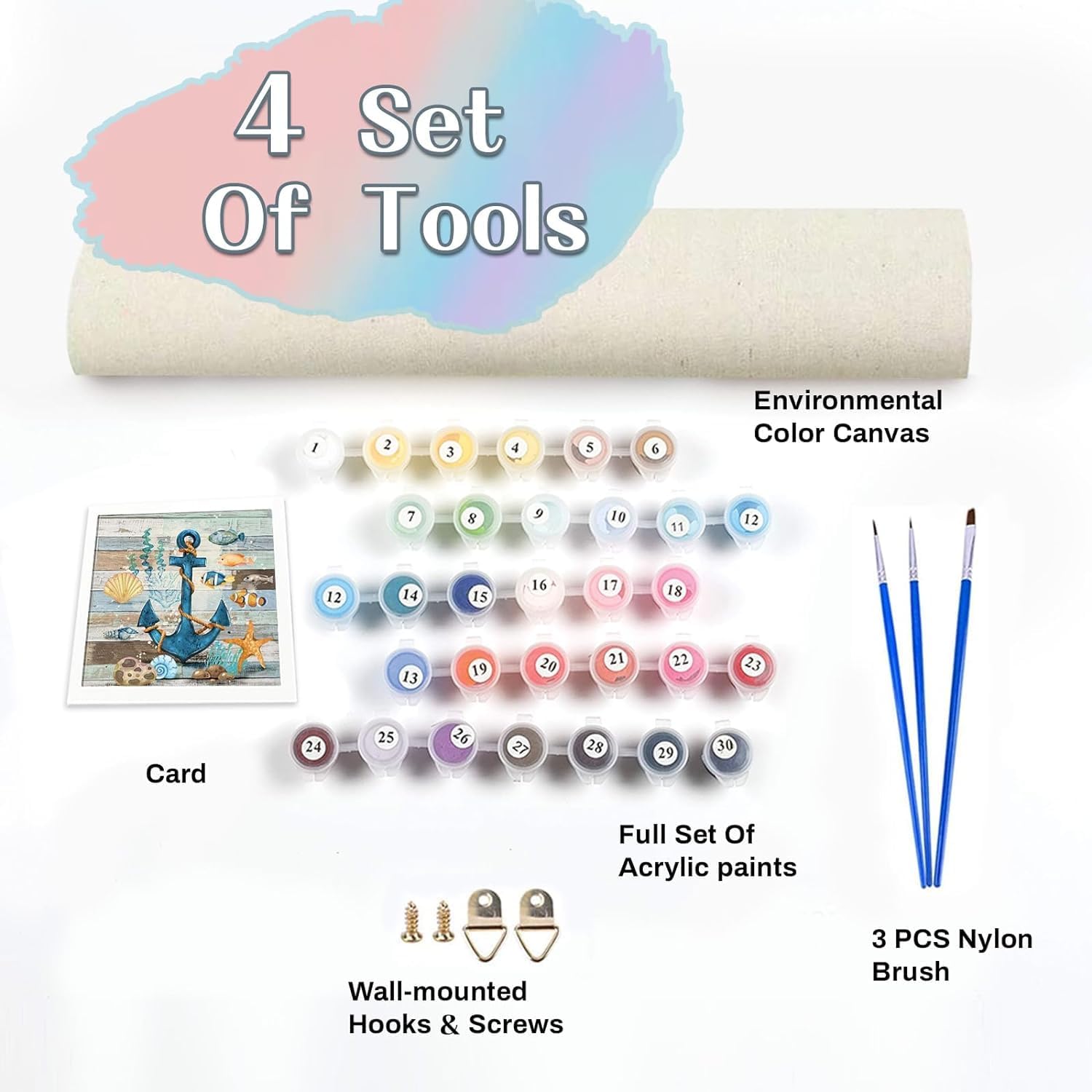 Dipingere con i numeri, set per principianti: tutti gli strumenti necessari sono inclusi, 4 tele testurizzate (senza cornice), 4 set di pennelli premium, pigmenti acrilici, versione in carta numerata come riferimento e immagine del prodotto in carta. 4 set di viti in metallo e ganci per appendere, 1 confezione regalo Kit di pittura di alta qualità con i numeri: tela arrotolata senza pieghe, spessa e resistente; Varie dimensioni di pennelli professionali, anche superfici estremamente piccole possono essere facilmente verniciate; colori acrilici atossici confezionati sottovuoto, colorati, ricchi e pieni, uno o due strati possono facilmente coprire numeri e linee, impermeabile dopo l'asciugatura, può essere conservato per lungo tempo Facile da dipingere: i numeri e le linee della tela sono molto chiari, il pigmento corrispondente è segnato esattamente dall'adesivo. Hai solo bisogno di seguire le istruzioni, dipingere con i numeri uno per uno, adatto a tutti i livelli adulti principianti e bambini. Per le persone con abilità di pittura di base, è possibile mescolare il colore da soli, completare la pittura del vostro stile Divertente e rilassante: dipingere con i numeri è un'attività rilassante e antistress. Il processo divertente distrae i pensieri dalla vita e dal lavoro, lontano dalle radiazioni dell"elettronica. Puoi eseguire il kit di pittura a olio con la tua famiglia e i tuoi figli per promuovere la relazione genitore-figlio e migliorare le abilità pratiche e la creatività dei bambini Scenari applicabili: la pittura finita con i numeri è un vero dipinto a olio artistico che vi darà una piena sensazione di completamento. È la decorazione da parete perfetta per camera da letto, soggiorno e ufficio, nonché un regalo ideale per familiari e amici per compleanni, Halloween, Natale, matrimoni, anniversari e molto altro ancora