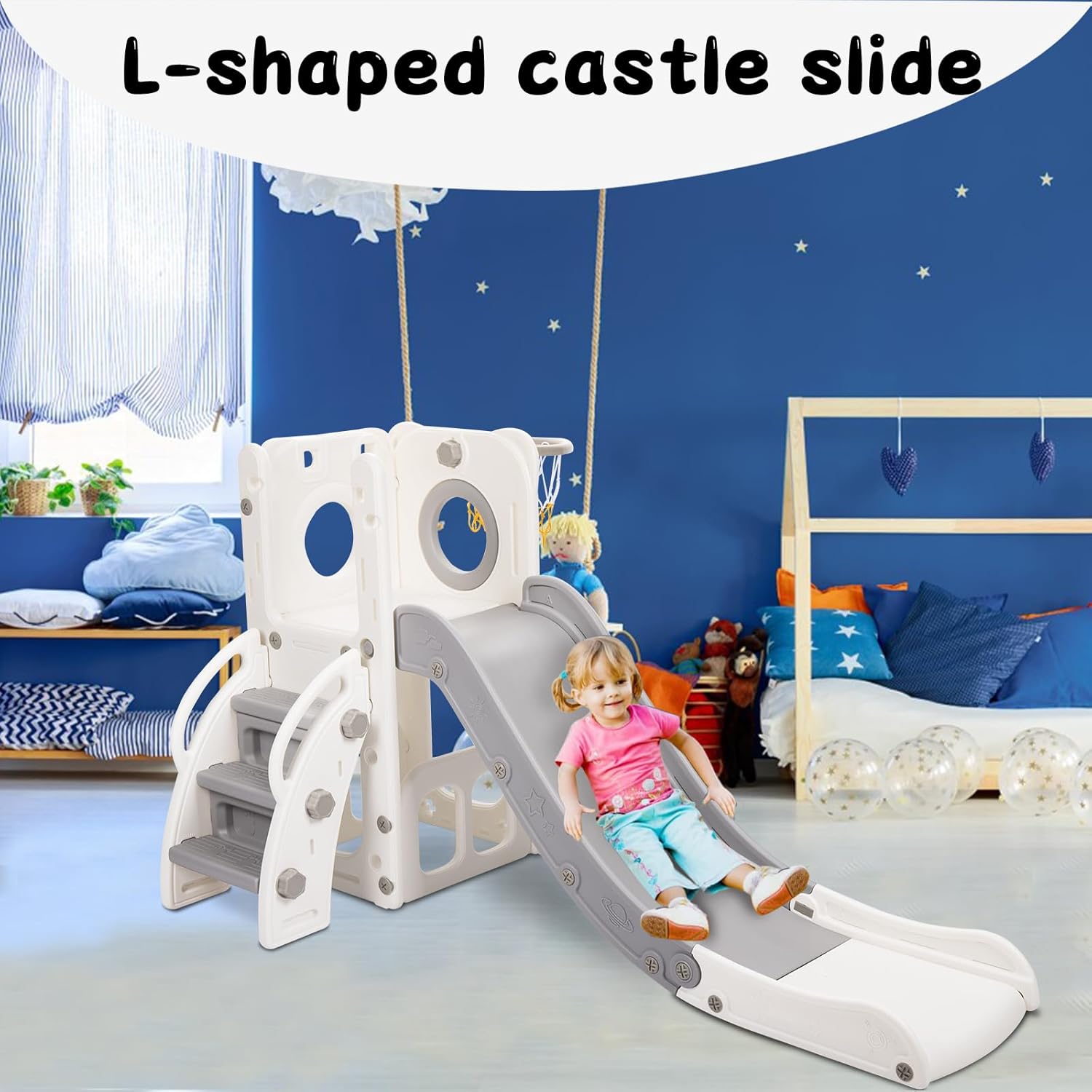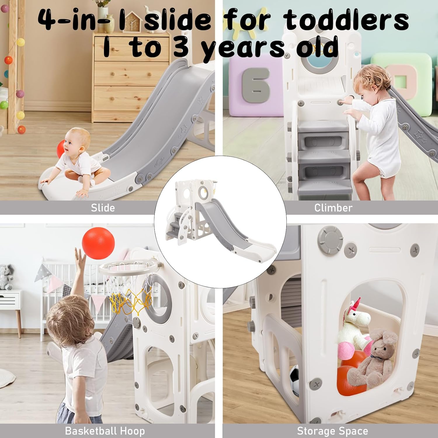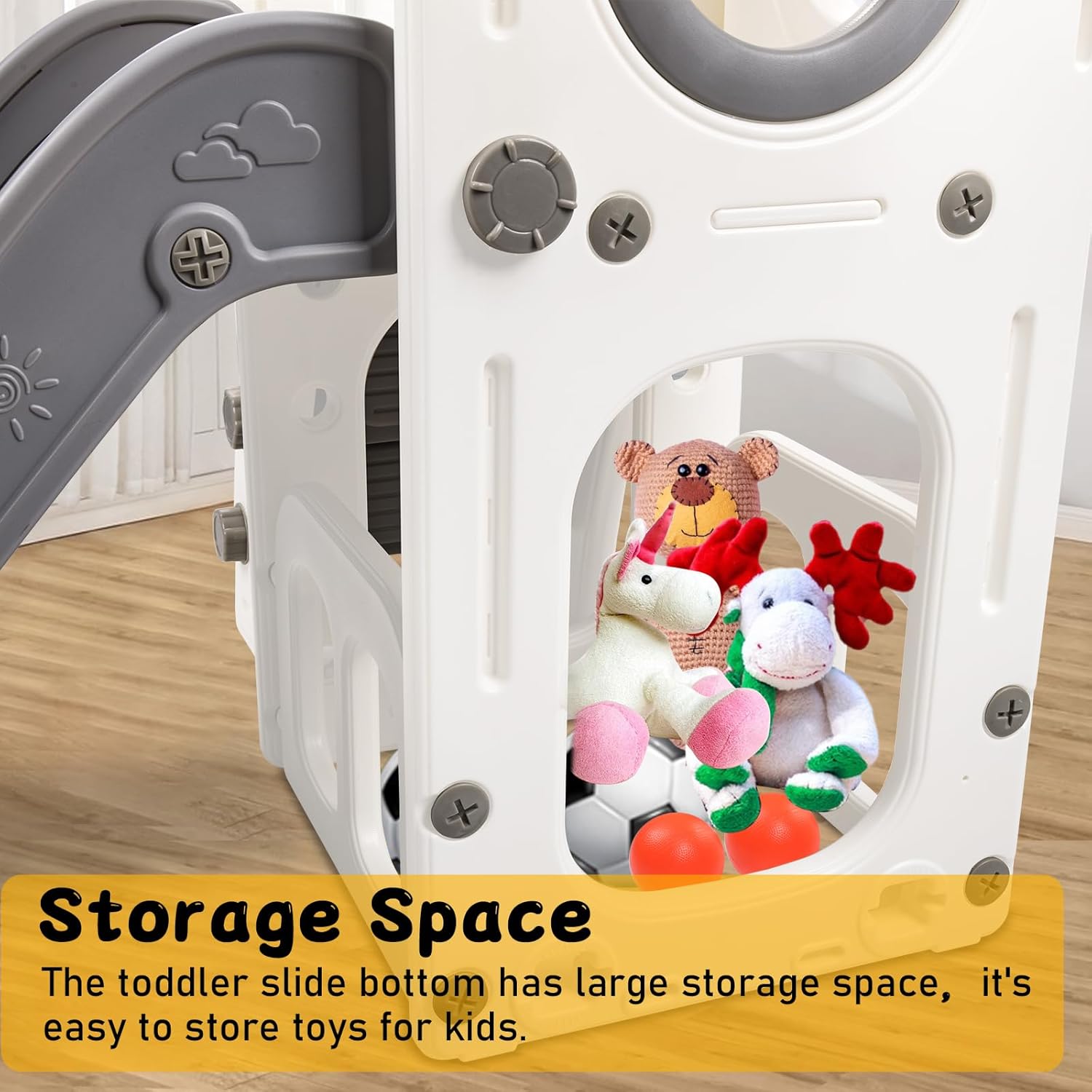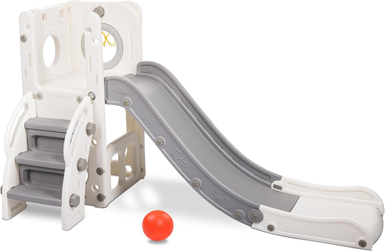 【Area ricreativa completa】4 in 1 scivolo per bambini da casa interno Impostatoset Include comprende gradini per arrampicarsi, uno scivolo, un canestro da basket e uno spazio di archiviazione. I bambini possono usare gli scivoli per svolgere attività di scivolamento, arrampicata e tiro che promuovono la coordinazione, lo spirito d'avventura e le capacità motorie. Regala ai bambini un divertimento senza fine. 【Materiale adatto ai bambini】Scivolo bambini realizzato in HDPE ecologico e pannelli robusti. Corrimano rotondi per facilitare la salita. Utilizziamo bulloni di plastica più sicuri anziché di ferro per evitare che i bambini li lecchino. La superficie dello scivolo per bambini è lucidata e non graffia la pelle del bambino 【Scivolo per bambini piccoli fluido e sicuro】 Lo scivolo allargato ed esteso è scientificamente progettato con zona di accelerazione, zona di decelerazione e zona cuscinetto, consentendo ai bambini di scivolare dolcemente e atterrare in sicurezza. L'ampio scivolo offre al tuo bambino uno spazio illimitato. Inoltre, i corrimano rinforzati su entrambi i lati aggiungono ulteriore sicurezza 【Uso interno ed esterno】Lo scivolo per bambini da interno ed esterno è adatto per uso interno ed esterno. Le sue dimensioni sono 149x96x86 cm, il che lo rende perfetto per qualsiasi spazio. Sia all'interno che all'esterno, i nostri scivoli garantiscono ai vostri bambini un gioco felice e sicuro. Pulisci il set da gioco per bambini prima dell'uso per rimuovere la polvere che potrebbe essersi accumulata durante lo stoccaggio e il trasporto. 【Facile da installare in poche ore】Lo scivolo per bambini da 1 a 5 anni è facile da installare. L'assemblaggio consiste semplicemente nel fissare insieme le parti. L'installazione può essere completata in genere in poche ore. Nota bene: si consiglia di serrare saldamente ogni vite e di controllare settimanalmente la stabilità delle guide di scorrimento per garantire un utilizzo sicuro da parte dei bambini.
