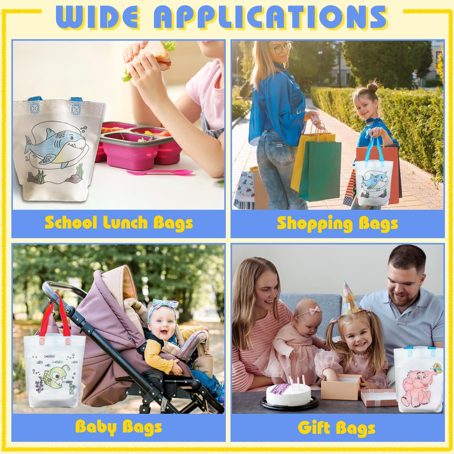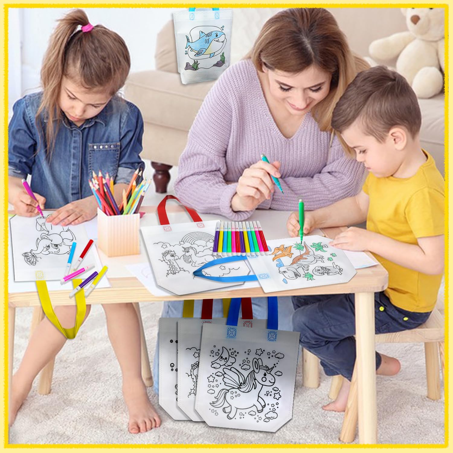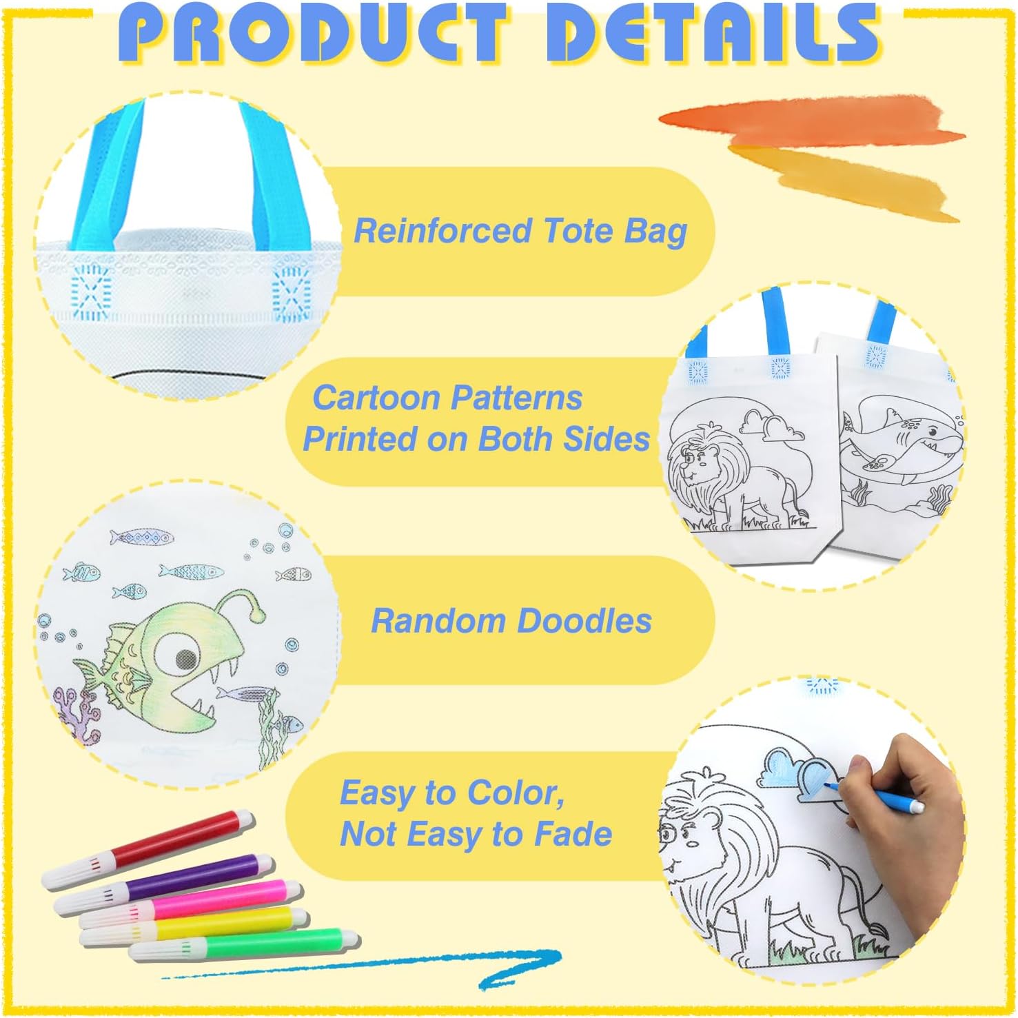 Set di sacchetti di stoffa per bambini: questo set contiene 12 borse artistiche e 12 dipinti. 6 matite colorate per graffiti. Possono facilmente soddisfare le esigenze di pittura del bambino (nota: il colore del manico della borsa è casuale) Facile da trasportare: il compleanno dei bambini, la borsa è lunga 24 cm, la corda è lunga 12 cm e la larghezza di 8,5 cm. Pennino: 14,5 cm. La maniglia è forte, i bambini sembrano molto carini e comodi quando tengono queste borse, facili da trasportare e facili da pulire Borsa fatta a mano fai da te: il sacchetto per graffiti offre 12 diversi modelli e 12 diversi colori di matite colorate tra cui scegliere. I bambini possono dare la loro immaginazione, concentrazione e design artistico e colorazione in base alle loro preferenze personali Multifunzione: questa borsa da pittura può essere regalata ai bambini come regalo per dipingere. I dipinti della festa di compleanno dei bambini possono essere conservati a lungo come souvenir dopo la colorazione. Allo stesso tempo, i sacchetti di compleanno per bambini sono pratici, che possono essere utilizzati per regali di vacanza, regali di compleanno, borse per la spesa, sacchetti per bambini, sacchetti regalo, scuole, asili, sacchetti per il pranzo, anche Halloween, Natale, Pasqua, ecc Qualità e durata: i sacchetti di stoffa per bambini sono realizzati con sacchetti di stoffa non indeboliti, non tossici, ecologici, sicuri e insapori. Durevole e riutilizzabile