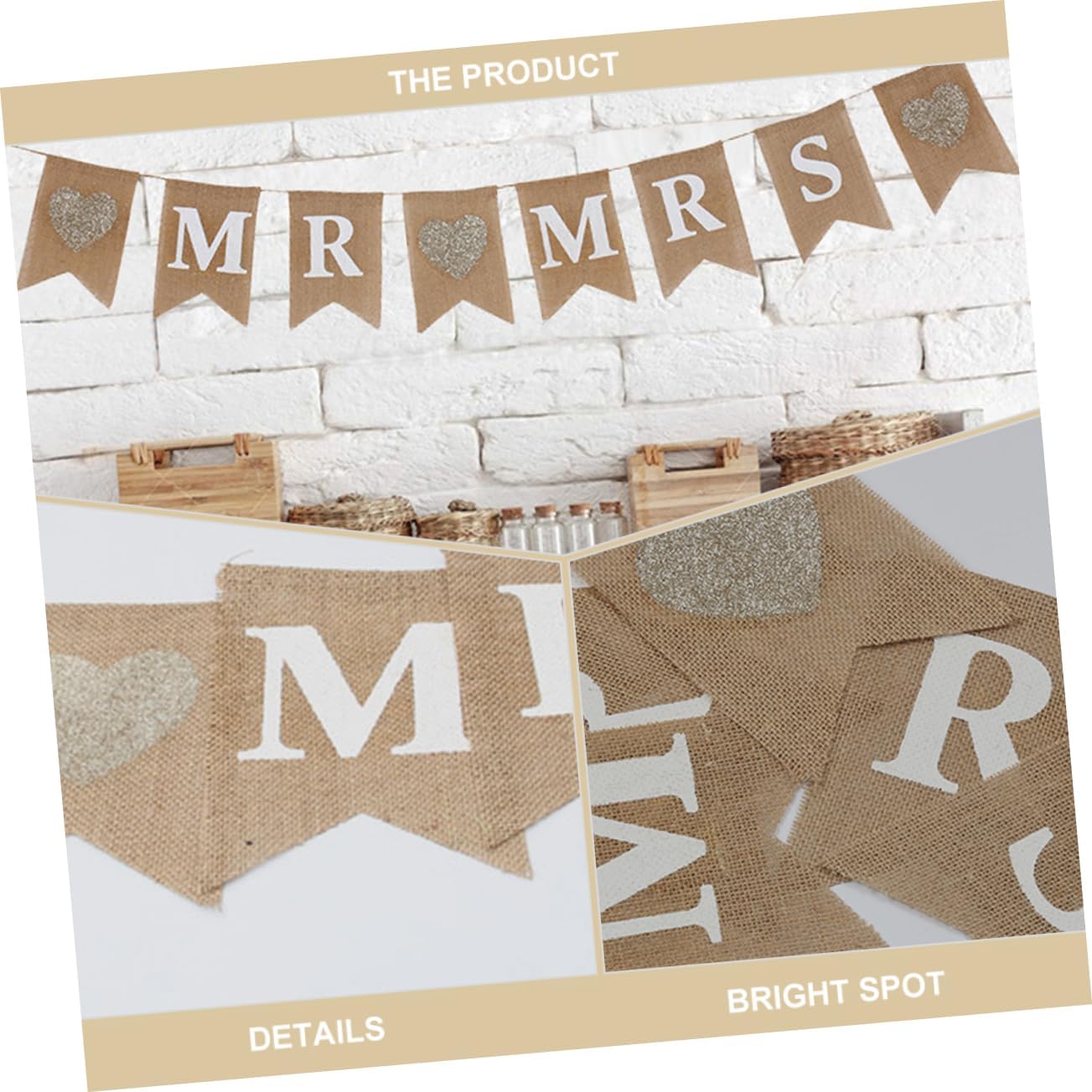 Sospensione celebrativa: sofisticata tecnologia di produzione, delicata e durevole, non facile da strappare o danneggiare. Ghirlanda di stendardi: stendardo con bandiera di iuta. Gli elaborati striscioni a tema nuziale sono splendidamente decorati e ti aiutano a immergerti nell'atmosfera romantica. Banner sospeso: la romantica bandiera decorativa d'amore è un eccellente ciondolo decorativo di sfondo che può facilmente creare un'atmosfera dolce. Cartelli da appendere per la tavola nuziale: puoi utilizzarli per decorare il tuo matrimonio secondo necessità, creando un'atmosfera più allegra. Decorazione di nozze: striscioni decorativi a tema leggeri e pratici non solo possono aiutarti a creare un'atmosfera romantica ma anche a esprimere desideri.
