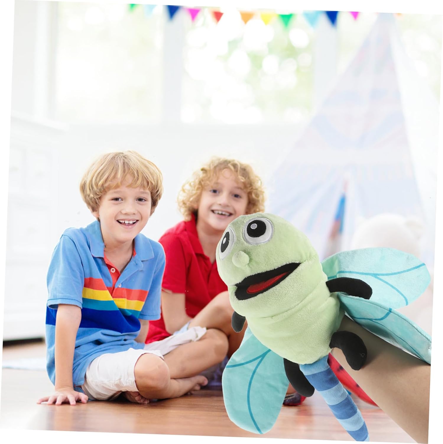 Burattino a mano a forma di cartone animato: il simpatico burattino a mano a forma di libellula può essere ampiamente utilizzato per presentazioni, giochi di ruolo, conservazione di storie e come burattino a mano Carino: un gioco interattivo progettato per portare gioia e intrattenimento ai bambini durante la loro infanzia, giocattolo per bambini Giocattolo di peluche: un burattino a mano con consistenza morbida e bocca mobile, che offre un'esperienza realistica e coinvolgente, burattino a mano Libellula: burattino a mano a forma di cartone animato con cui puoi giocare quando lo indossi portandolo a mano. È un supporto necessario per la narrazione, Peluche a forma di drago a mano: questo simpatico burattino in peluche a forma di libellula può essere un regalo perfetto per il tuo compleanno, la festa dei bambini. il suo, giocattolo della libellula