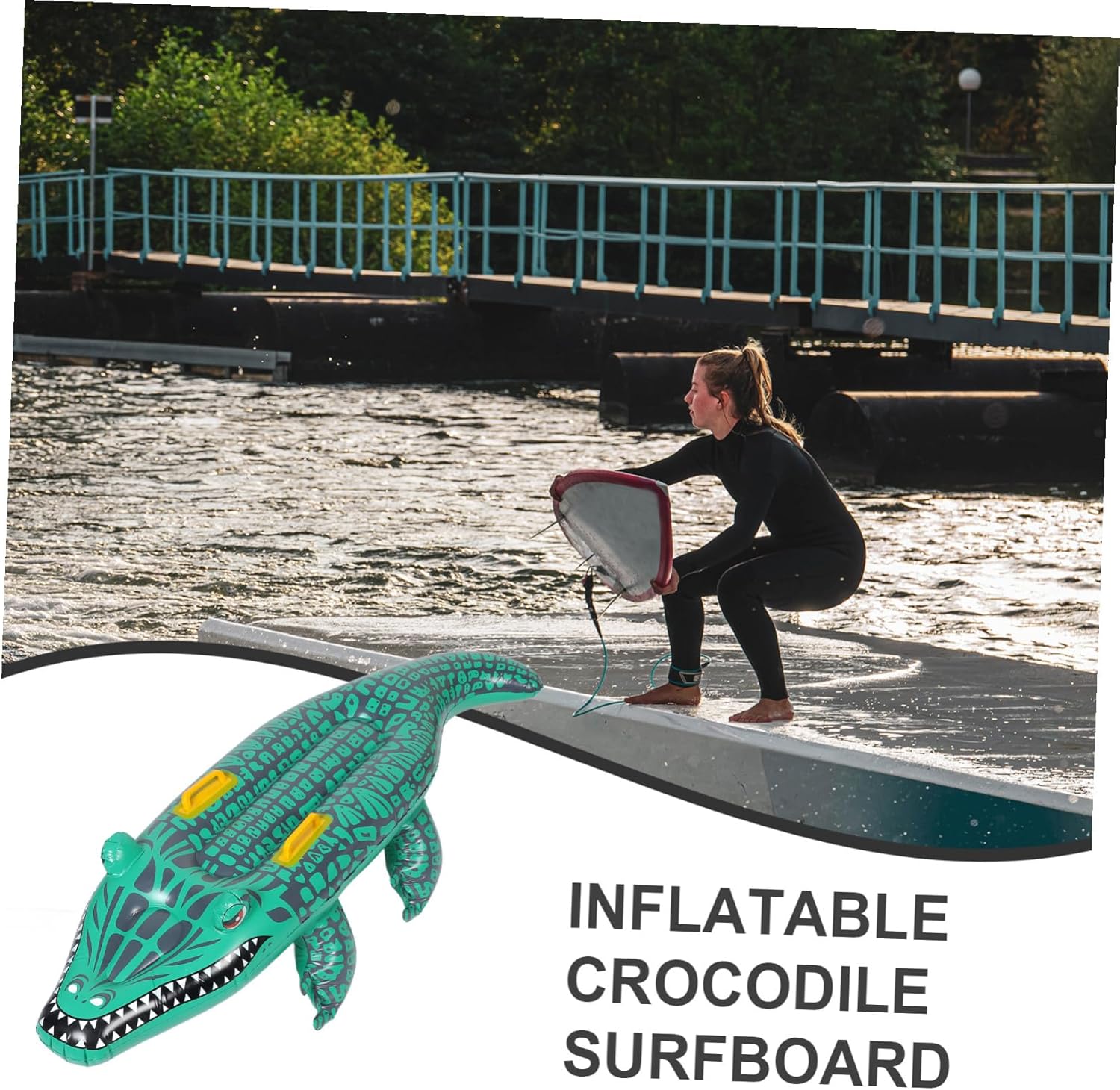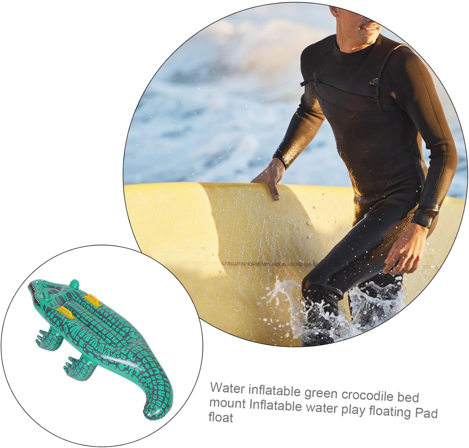 Tappetino gonfiabile per piscina: il design ispirato all'alligatore aggiunge un tocco unico e stravagante, rendendolo visivamente accattivante e divertente per gli utenti di tutte le età, Tappetino galleggiante per piscina bodyboard portatile: la tua famiglia e i tuoi amici possono rinfrescarsi e godersi questa divertente tavola da nuoto, Tavola da surf alligator galleggiante per piscina alligator: questa tavola da surf gonfiabile in alligatore è progettata per il comfort e si ripiega facilmente in modo da poter essere utilizzata facilmente da trasportare e riporre quando non in uso. Accessori per piscina con tappetino da nuoto in alligatore: questo prodotto versatile può essere utilizzato per il surf, il nuoto e il relax, rendendolo adatto a piscine, laghi e spiagge. Tavola da surf gonfiabile in alligatore gonfiabile per piscina: è realizzata in materiale buono e robusto, durevole e pratico per l'uso, tavola da surf gonfiabile