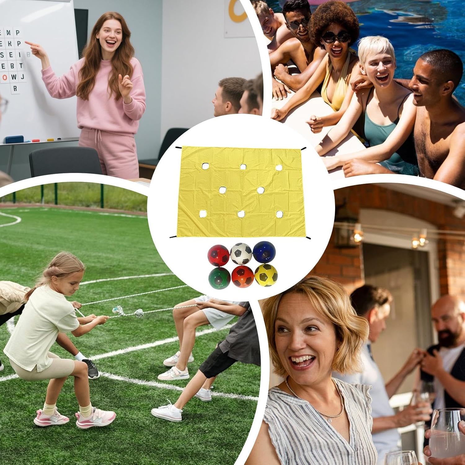Prestazioni a lungo termine: la lavorazione di alta qualità del materiale Oxford garantisce una lunga resistenza allo strappo e stabilità dimensionale. Ottimale per tutte le stagioni con una maneggevolezza sempre leggera: la base perfetta per giochi di gruppo intensi negli anni. Aumenta la collaborazione: intensifica i modelli di interazione basati sul gruppo attraverso sfide vicine alla pratica, migliora l'assunzione di responsabilità, la fiducia e la distribuzione strategica delle risorse per sviluppare competenze di lavoro di squadra a lungo termine. Dinamica di squadra sostenibile: materiali di alta qualità come tenda a tunnel resistente agli strappi e robuste sfere in PU consentono un miglioramento a lungo termine della coordinazione del gruppo e lo sviluppo di capacità di collaborazione durature Sviluppo della leadership giocosamente: allena le capacità decisionali e il controllo di gruppo attraverso sfide pratiche. Perfetto per team misti in aziende o istituti scolastici: supporta la crescita naturale della leadership con un'applicazione immediata nella vita lavorativa quotidiana Strumento di team building flessibile: universale grazie a regole di gioco modulabili e sfide variabili. Garantisce un'esperienza di gruppo accessibile senza una pianificazione complessa per team di 2 persone.
