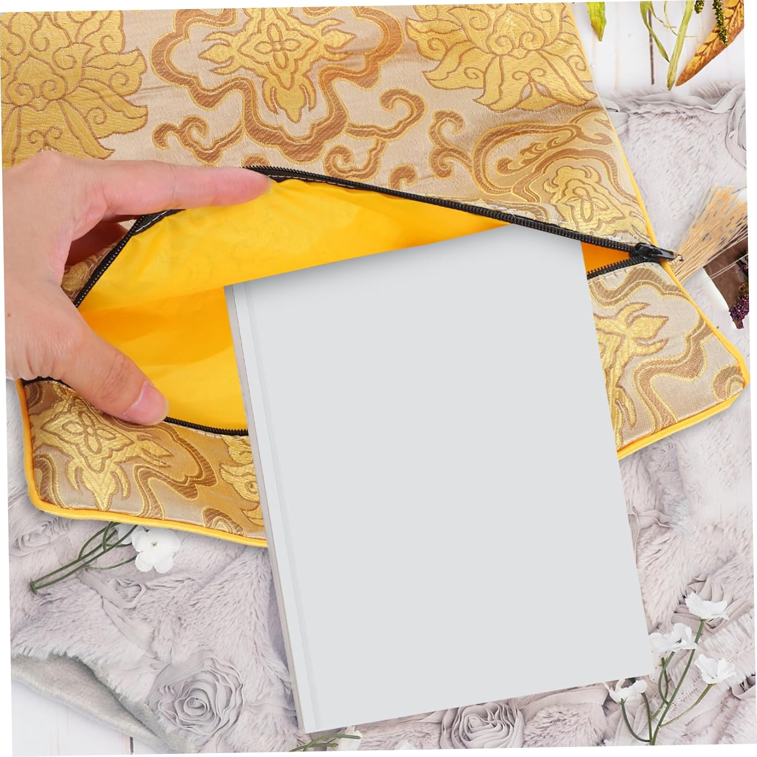 Morbido e: realizzato in materiale di stoffa morbida che è sia facile da pulire che da usare, garantendo un uso duraturo, contenitore per le scritture, custodia per il libro delle preghiere Materiale in tessuto: realizzato in tessuto morbido, facile da pulire, che garantisce un uso e una manutenzione duraturi, materiale per imballaggio, contenitori per riporre i vestiti Sicuro e comodo: dotato di chiusura a cerniera per un facile accesso e una conservazione sicura, impedendo agli oggetti di cadere, sacchetti per la conservazione delle scritture, supporto di copertura Tessuto durevole: realizzato in tessuto morbido e facile da pulire, che garantisce che il prodotto rimanga in buone condizioni nel tempo, portaoggetti per libri, borsa per libri della bibbia Stile di libro versatile: progettato con stile di imballaggio di libri classico, rendendolo adatto a vari eventi e usi, borse per copertine di libri, contenitori per articoli vari