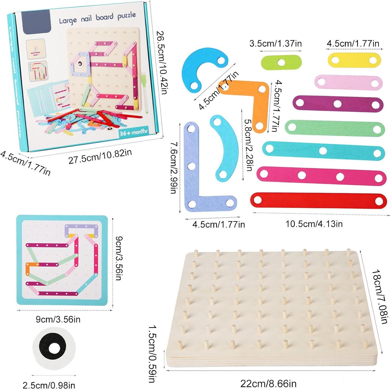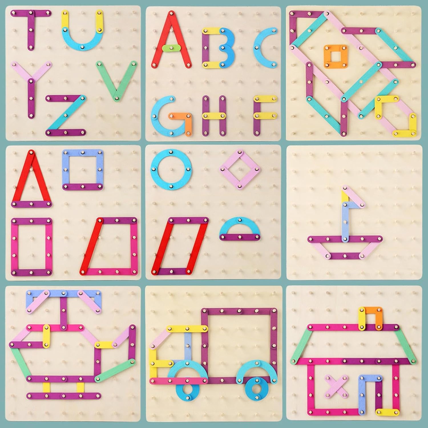 【Miglioramento delle capacità cognitive】 La lettera puzzle di legno allena la capacità del bambino di pensare in modo indipendente e ha un'influenza importante sullo sviluppo 'intelligenza e sull'immaginazione del cervello, che è benefico per la crescente saggezza. 【Abilità manipolativa】 Il set di attività di costruzione di lettere migliora i bambini per addestrare facilmente il loro afferrare, il coordinamento occhio-mano delle pratiche dei bambini e impara più abilità. 【Eccezionale qualità】 Il puzzle delle unghie, realizzato con una rigorosa selezione di materiale in legno naturale, è sicuro, senza , forte e resistente e può essere utilizzato a lungo. 【Riconoscimento del colore】 I puzzle in legno migliorano l'apprendimento della capacità del bambino di colorare e sono dotati di diversi colori stravaganti per promuovere la percezione visiva e iniziare il percorso sensoriale 'esplorazione del tuo bambino per sentire il nuovo mondo. 【Regali eccellenti】 Come regalo di compleanno o di Natale adatto a un bambino, Alphabet Puzzle costruisce il ponte per comunicare con i bambini per te e può attirare l'attenzione di tuo figlio per ore.