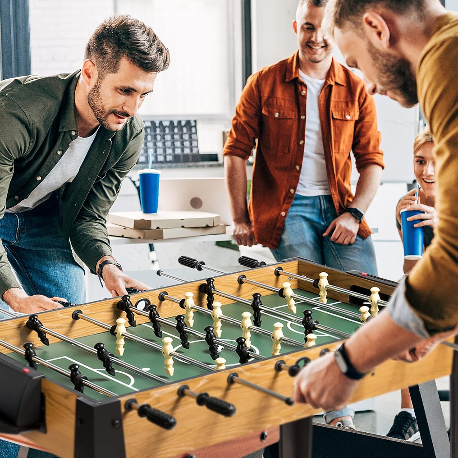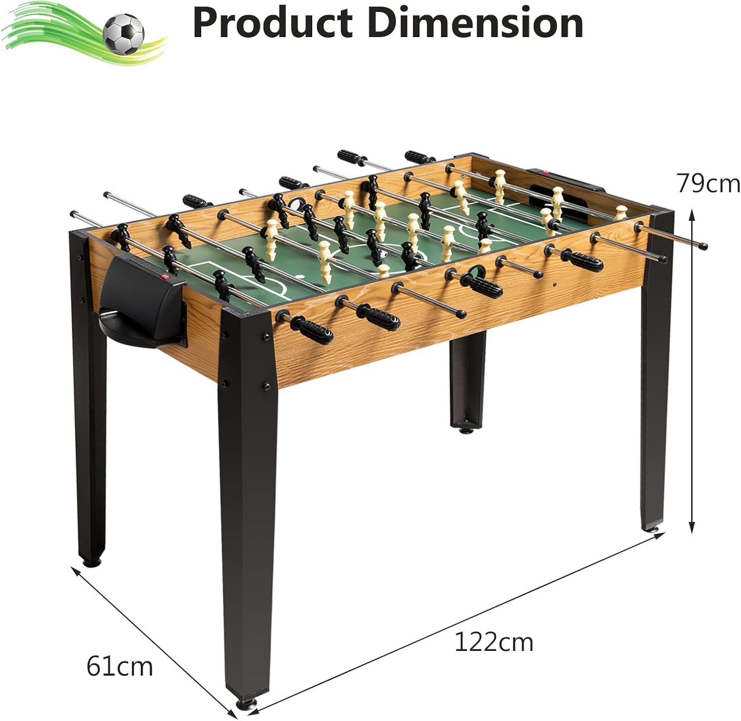 UN’ESPERIENZA DI CALCIO DIVERTENTE: Scoprite una forma innovativa di competizione calcistica che non richiede di correre su un campo né di calciare il pallone con i piedi. Basta usare le mani per godere di un piacere unico. Questo calcio balilla è adatto a tutti: uomini, donne, giovani e anziani possono partecipare senza distinzione MAGGIORE STABILITÀ E ADATTAMENTO AI DIVERSI PAVIMENTI: Realizzato in legno di alta qualità e con una finitura curata, questo biliardino per bambini presenta una struttura solida e resistente. Inoltre, i suoi quattro piedi sono dotati di un sistema di regolazione, che permette di adattarsi a diversi tipi di superfici evitando graffi ATTREZZATURA COMPLETA PER 2-4 PERSONE: Il nostro biliardino professionale include tutto il necessario per iniziare la partita: 8 aste (ognuna con una maniglia in plastica confortevole), 26 figurine, 2 palloni, un dispositivo per il conteggio dei punti su ogni lato e una scatola per le palline. Può ospitare contemporaneamente da 2 a 4 giocatori, ideale per momenti di condivisione UN ACCESSORIO POLIVALENTE PER DIVERSI AMBIENTI: Questo calcetto balilla si integra perfettamente in ambienti diversi: usatelo a casa come gioco ricreativo per momenti di svago in famiglia, collocatelo in azienda per ridurre la pressione lavorativa e rafforzare i legami tra colleghi, oppure installatelo in locali commerciali (bar, caffè) per attrarre clientela ASSEMBLAGGIO FACILE CON GUIDA DETTAGLIATA: L’installazione non è un problema: forniamo un manuale d’uso con passaggi di montaggio chiari e dettagliati, che vi permette di completare rapidamente l’assemblaggio del biliardino da casa. Questo processo diventa persino un momento divertente, dove potrete scoprire il piacere di realizzare qualcosa con le vostre mani
