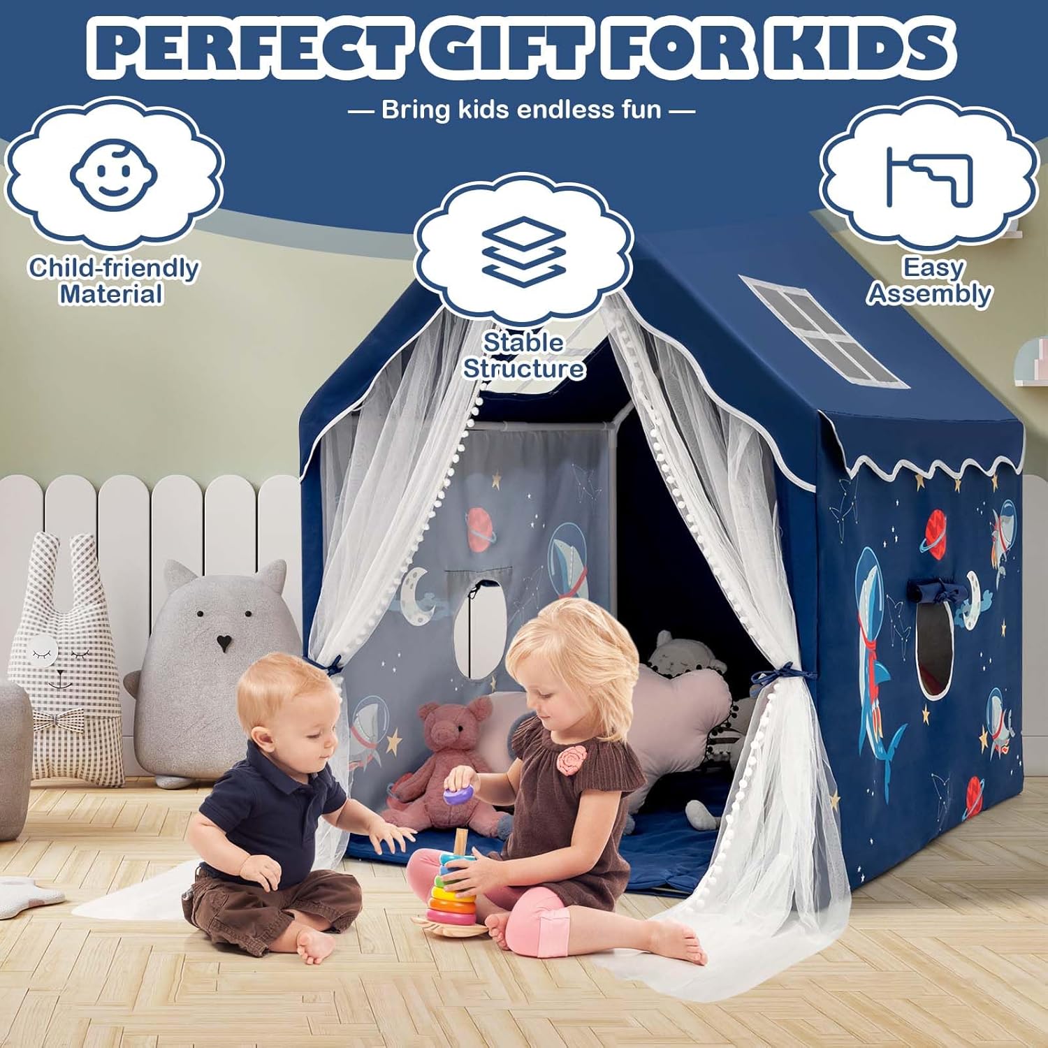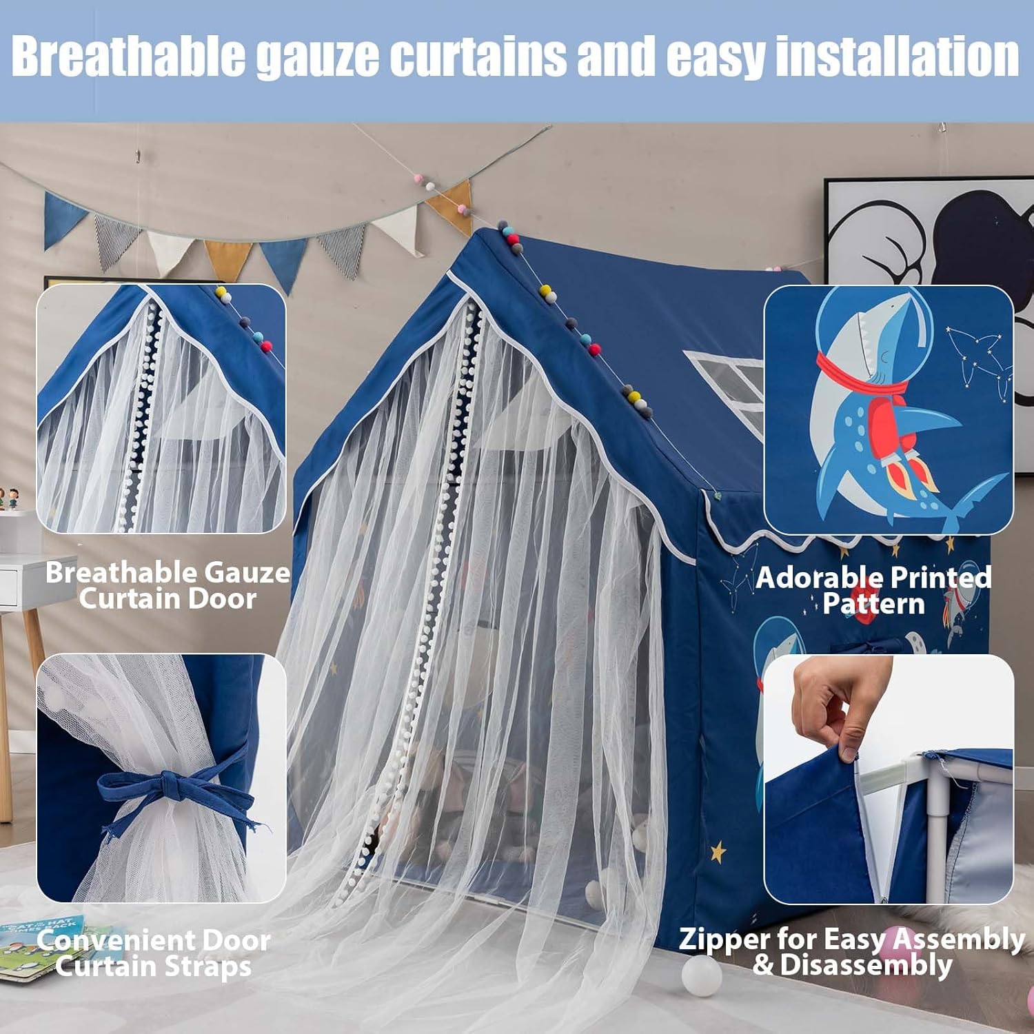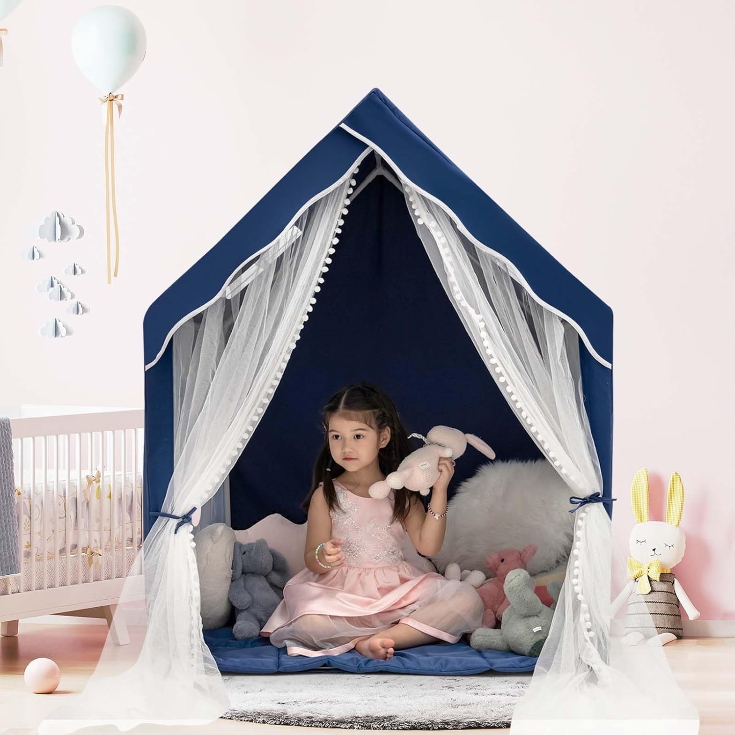 SPAZIOSO ED INCREDIBILE: La tenda per bambini misura generose 121 x 105 x 137 cm ed è abbastanza accogliente per 3-4 bambini che possono giocarci, leggere o anche fare un pisolino. I morbidi cuscini sono grandi 121 x 97 cm e garantiscono ancora più comfort ai bambini DESIGN CON EMOZIONANTE MOTIVO CARTOON: Il colorato motivo a cartone animato rende l'aspetto della tenda gioco bambini ancora più adorabile e attraente, perfetto per attività familiari e all'aperto. L'aspetto realistico della casa, con la delicata porta a griglia, crea uno spazio divertente e creativo per i bambini CONSTRUZIONE SICURA E ROBUSTA: La casa da gioco è realizzata in resistente tessuto di poliestere-cotone, combinato con robusti supporti in PVC e design della struttura triangolare per garantire stabilità e sicurezza della tenda bambini cameretta. Leggero e compatto, con un peso netto di soli 4 kg, è facile da trasportare e da spostare DESIGN CON MULTIPLA VENTILAZIONE: Questa capanna per bambini da interno ha 4 finestre in rete, di cui 2 finestre superiori e 2 finestre laterali con design a tendina, che favoriscono efficacemente la circolazione dell'aria e rendono la tenda da gioco per bambini più ventilata e fresca REGALO PERFETTO CON GRANDE VALORE: La casetta tenda per bambini non è solo un ottimo regalo per i bambini, ma è adatta anche ai bambini dai 1 anno in su. Un design strutturale perfetto e materiali durevoli creano un bellissimo e misterioso paradiso per i bambini dove giocare, imparare ed esplorare