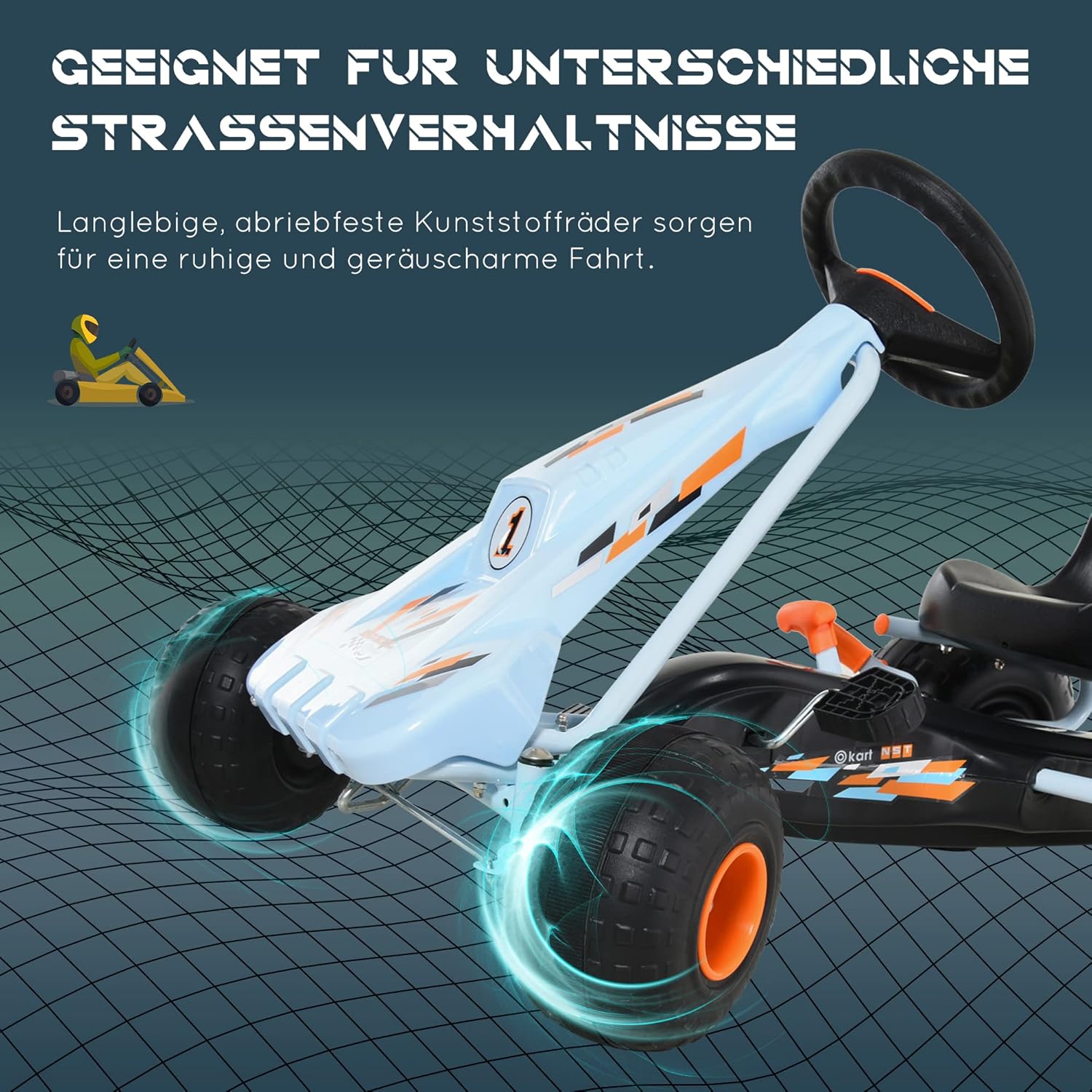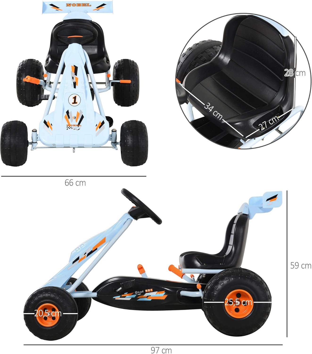 Attività indoor e outdoor: con 4 pneumatici in plastica resistente, questo go kart a pedali leggero è adatto sia per uso interno che esterno, un buon giocattolo per promuovere l'attività fisica dei bambini. Aspetto carino: il prodotto adotta transizioni rotonde in molte parti e colori vivaci, che lo rendono molto carino e suscita facilmente l'interesse dei bambini. Esperienza di guida autentica: questo go kart a pedali offre un'esperienza di guida autentica e consente al conducente di controllare la propria velocità con il freno a mano integrato e la leva del cambio. Sedile regolabile: il sedile avvolgente regolabile con schienale alto offre un ottimo supporto e si adatta meglio al corpo dei tuoi bambini per una guida confortevole. Dati del prodotto: Dimensioni complessive: 97 L x 66 L x 59 A cm, dimensioni del sedile: 34 L x 27 L x 28 A cm, capacità di carico: 35 kg.