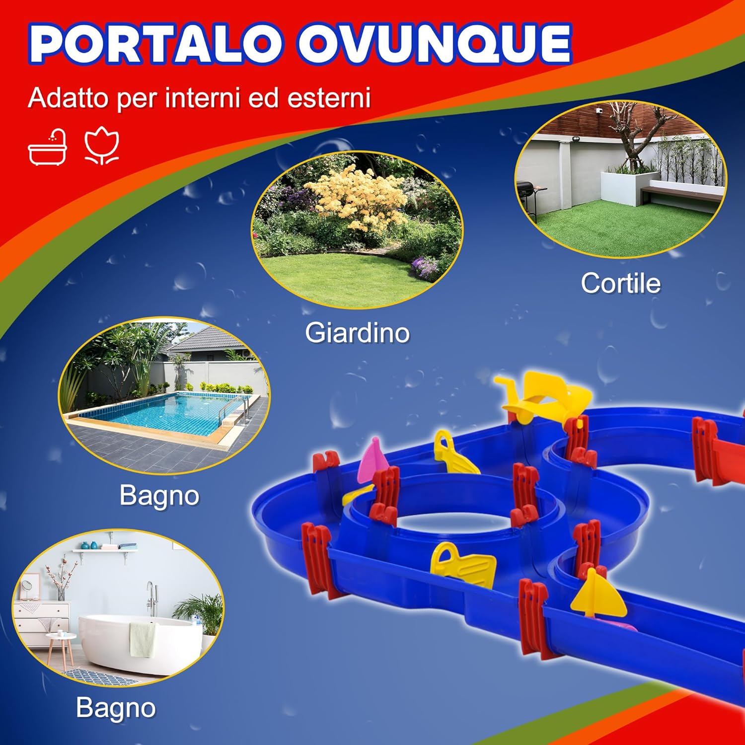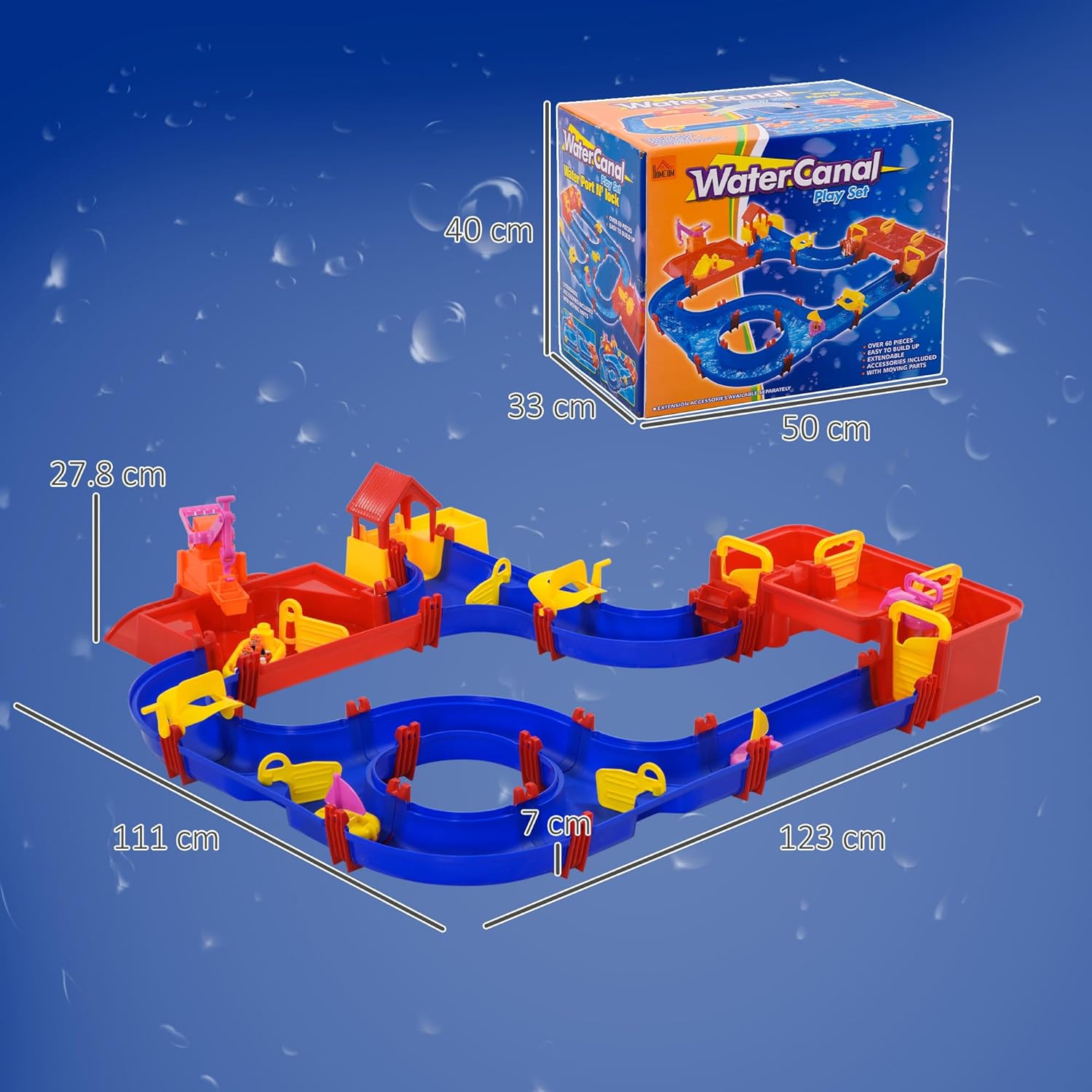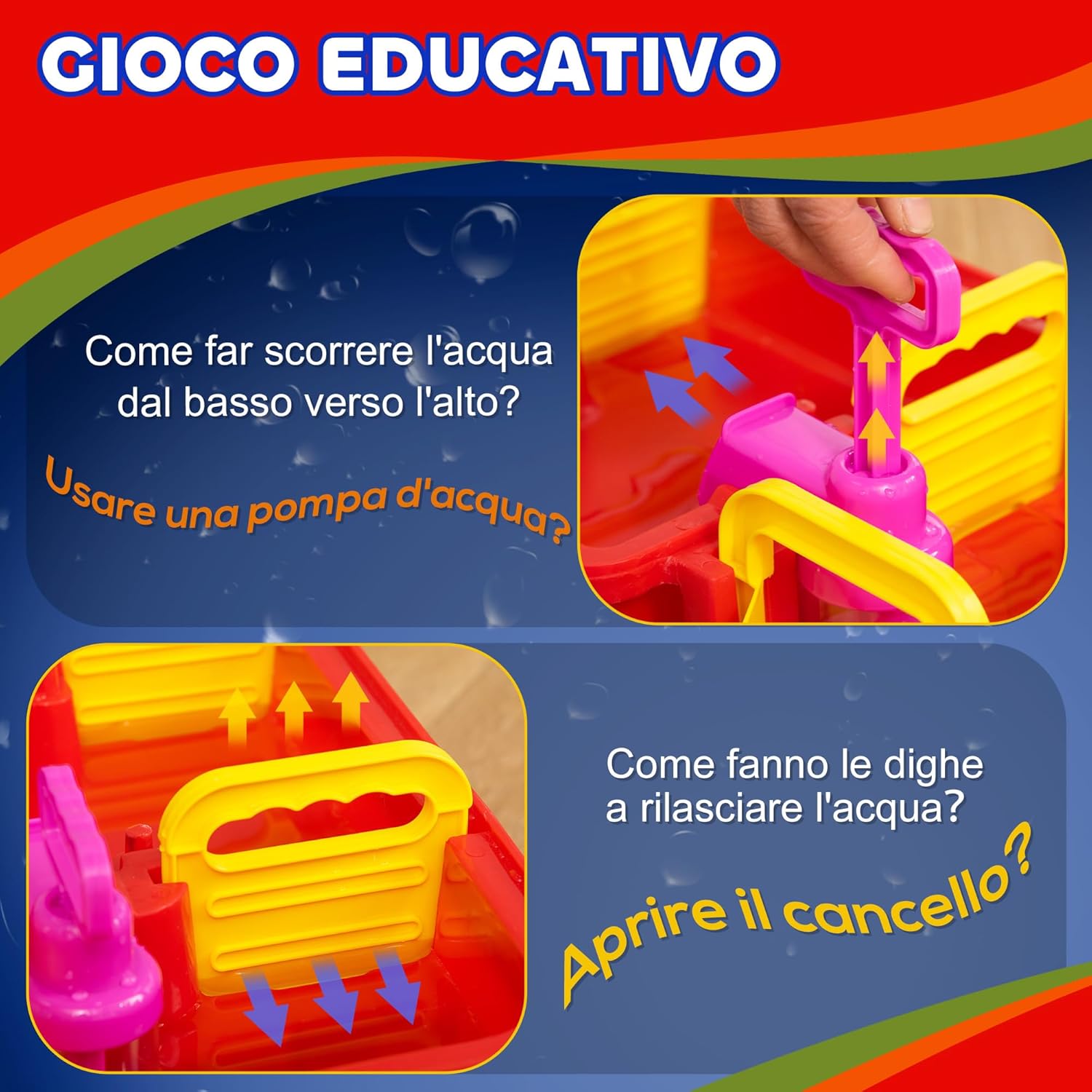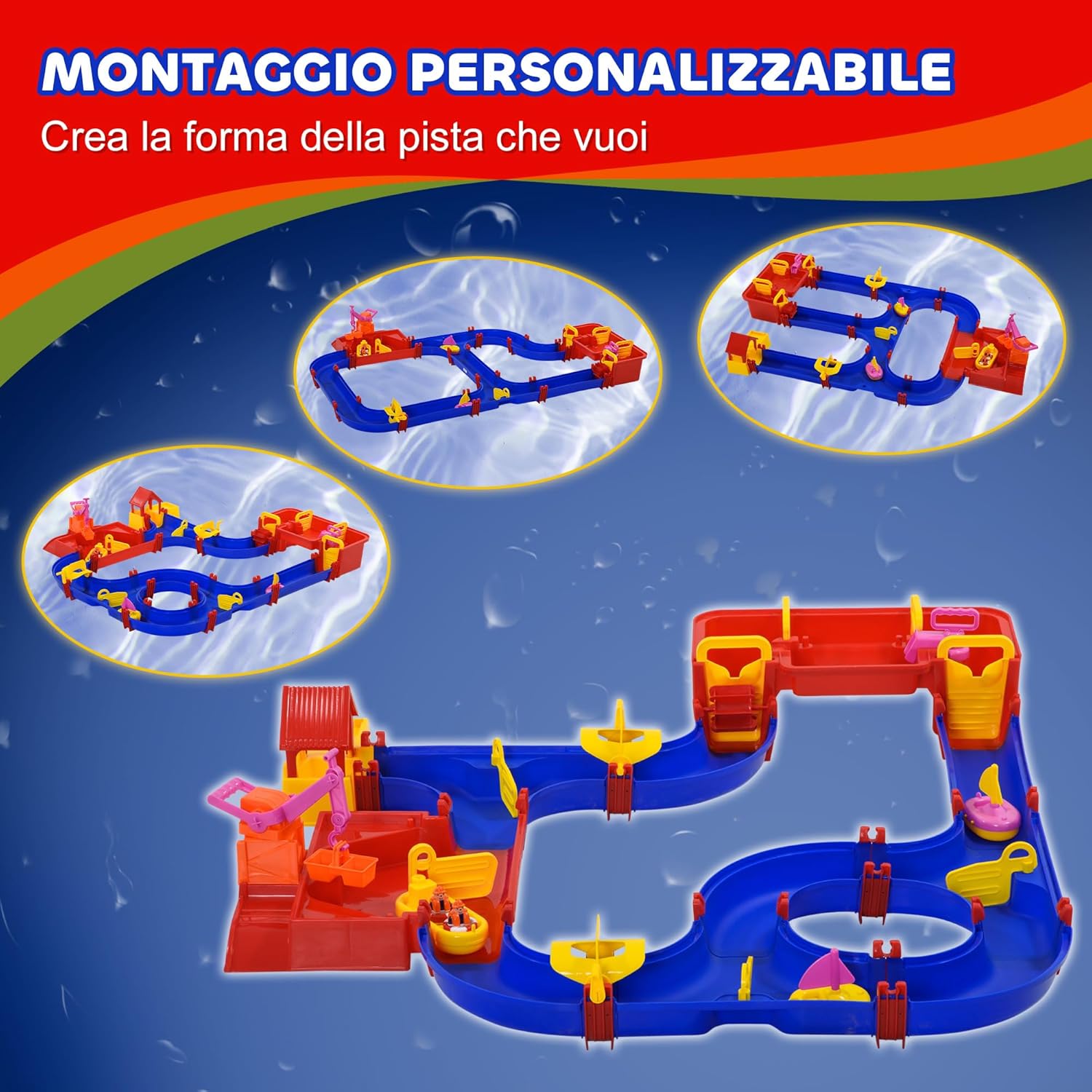DIVERTIMENTO CREATIVO CON 78 PEZZI: Questo playset acquatico offre una vasta gamma di accessori per costruire canali navigabili, permettendo ai bambini di personalizzare la pista e giocare insieme in modo coinvolgente APPRENDIMENTO INTERATTIVO: Il playset acquatico aiuta i bambini a capire il funzionamento delle dighe, a pompare e regolare l'acqua, a chiudere e aprire i cancelli per simulare inondazioni, sviluppando coordinazione e abilità comunicative IDEALE PER INTERNI ED ESTERNI: Questo gioco con acqua per bambini è perfetto per bagni, piscine, cortili, giardini, ma anche facile da trasportare in spiaggia o al parco grazie al design compatto SICUREZZA GARANTITA: Il playset acquatico è realizzato in PP resistente, con bordi arrotondati e lisci per garantire la protezione durante il gioco DIMENSIONI: Questo playset acquatico misura 123L x 111P x 7A cm, adatto a bambini dai 3 ai 6 anni e include una confezione regalo