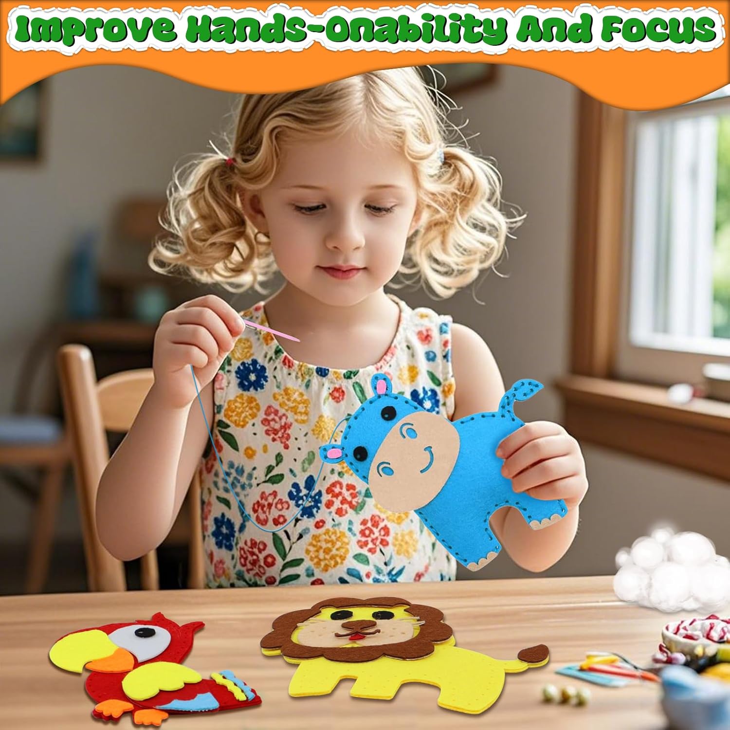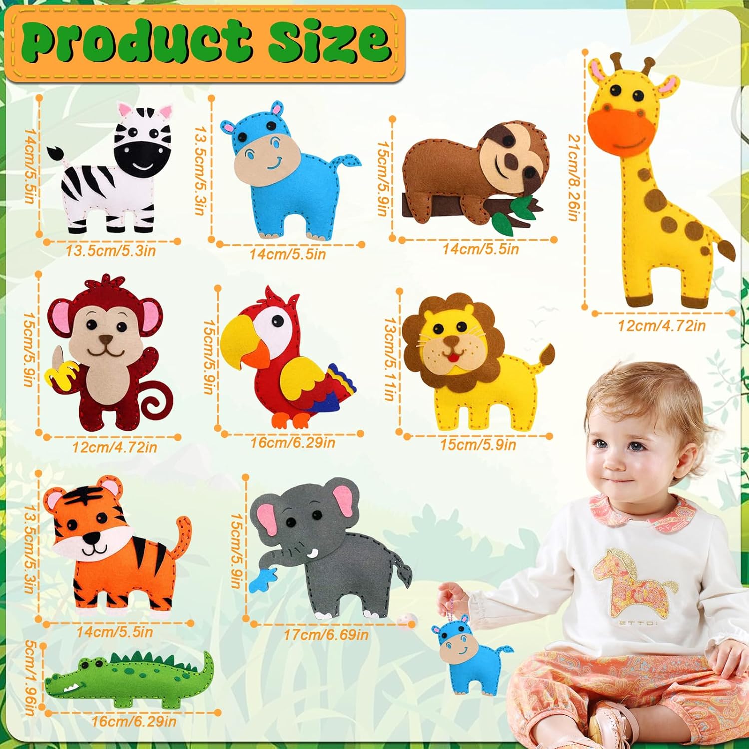 【Kit Da Cucito in Feltro Animali】: Questo kit contiene 10 x sagome di in feltro pretagliate, 10 rotoli di filo + 10 spilli di plastica + 1 forbice + 1 rotolo di nastro biadesivo + 1 confezione di imbottitura + 1 confezione di occhi autoadesivi + 12 filari di perline colorate + 1 portafilo. incoraggia la creatività di tuo figlio e impara le abilità di cucito di base. 【Materiali Di Alta Qualità】: I kit da cucito per bambini sono realizzati con materiali in feltro di alta qualità, ecologici e durevoli, molto adatti a bambini, principianti di cucito, hobbisti. 【Divertimento Per Lo Sviluppo Delle Abilità】: Interessanti giocattoli artigianali fai-da-te per bambini, migliorano la capacità di pensiero, la concentrazione, la pazienza, il riconoscimento, la creazione, la coordinazione occhio-mano, le capacità motorie, la percezione del colore, ecc. Il bambino può creare da solo le proprie opere d'arte, il che lo fa sentire pieno di realizzazione. 【Crea Momenti Indimenticabili in Famiglia】: Trascorri momenti preziosi con tuo figlio mentre impara a cucire e imbottire gli animali con i nostri kit da cucito per bambini. crea un'esperienza di legame creativo con istruzioni facili da seguire e materiali coinvolgenti, promuovendo un amore condiviso per l'artigianato. 【Regalo Caloroso】: Sorprendi i tuoi bambini con il nostro kit da cucito che porta gioia e stimola la creatività. perfetto per creare regali speciali per la festa dei bambini, l'anno e i compleanni, regala un divertimento fantasioso.