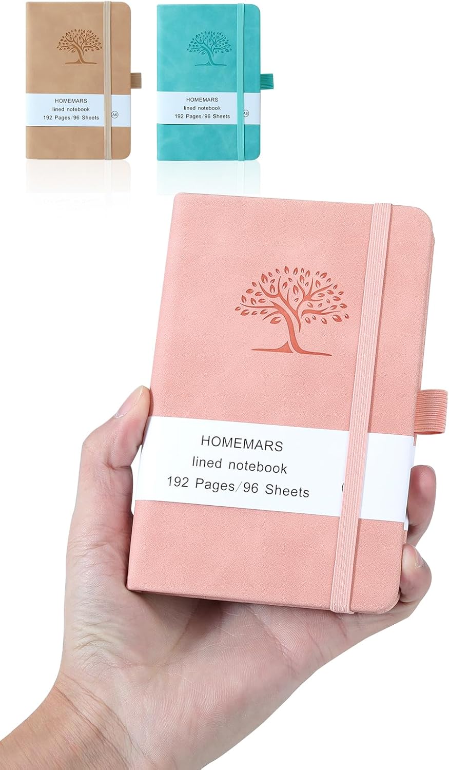 Quaderno tascabile, confezione da 3, quaderno A6, quaderni piccoli HOMEMARS 14,4 cm x 9,6 cm, pelle, 192 pagine ciascuno, copertina rigida, mini blocco note, design ad albero in rilievo, robusto passante per penna, cuciture a mano. Set di 3 quaderni, robusto passante per penna, cuciture a mano, chiusura ad elastico, quaderni dal design moderno ad albero, pelle vegana. Che tu sia uno scrittore, un artista o semplicemente cerchi uno strumento pratico per rimanere organizzato, questo taccuino tascabile è un accessorio indispensabile. Fronte e retro realizzati con cuciture a mano, il risultato finale è un taccuino bello e resistente con un tocco unico fatto a mano. Presenta una copertina in morbida pelle vegana e chiusura elastica nel tradizionale formato tascabile di 9,4 x 14,4 cm. Facile da trasportare, set di 3 quaderni tascabili, per raccogliere pensieri, osservazioni e momenti di genialità, i quaderni sono progettati per stare in borsa o anche in tasca. Mini diario, perfetto per studenti, adulti, viaggiatori, a casa o a scuola, regalo perfetto per amici, insegnanti e studenti.