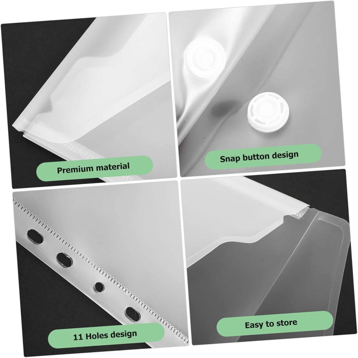 Design con bottone automatico: la chiusura con bottone automatico assicura che i tuoi file siano al sicuro, facili da aprire e chiudere, tasche per raccoglitori, archiviazione di documenti capacità: ogni tasca raccoglitore a4 può contenere 150 fogli di carta, 11 fori preforati per cartelle e raccoglitori 2/3/4, tasche raccoglitore espandibili, cartelle raccoglitore Materiale di alta qualità: realizzato in materiale plastico pp, robusto e ben costruito, cartella portadocumenti, cartelle raccoglitori con ganci Design trasparente: queste cartelle portadocumenti con una vista trasparente per un'identificazione facile e veloce, inserto organizer per raccoglitori, cartelle portadocumenti con tasche e fori Design chiaro: queste buste per documenti, cartelle portadocumenti con una chiara visuale per l'identificazione, buste per raccoglitori, buste a sacchetto