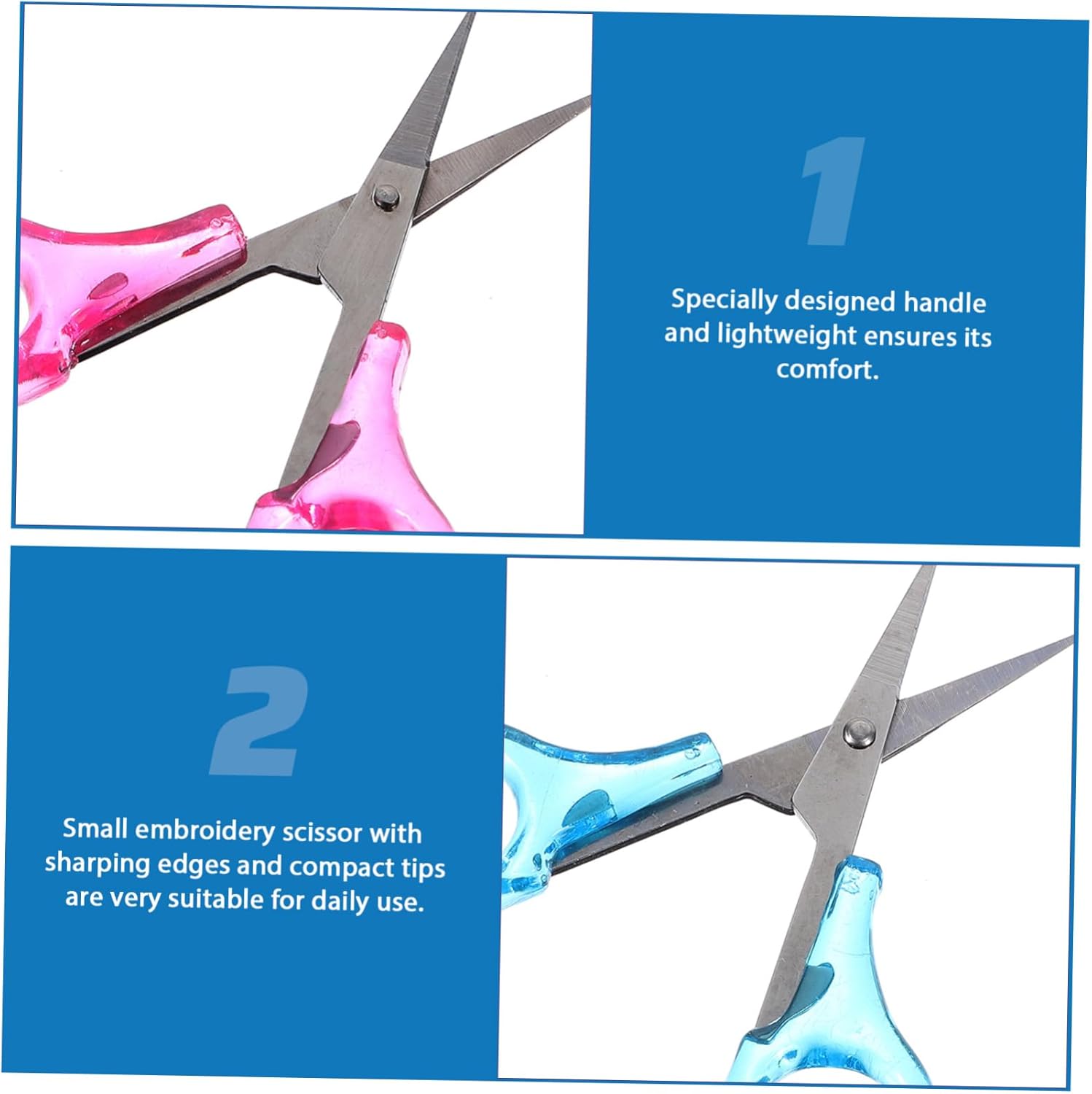 Strumenti per ricamo: le forbici in acciaio inossidabile sono ottime per ricamo, punto croce, cucito, cucito, lavori manuali, ecc., forbici utili Forbici fai da te: il design dell'impugnatura delle forbici è molto ragionevole, comodo per l'uso quotidiano, puoi usarle facilmente, mini forbici Accessori per cucire: l'impugnatura è comoda da impugnare e facile da usare, l'impugnatura è progettata con bellissimi motivi e una lavorazione delicata, forbici da viaggio Strumento per cucire: queste piccole forbici da ricamo sono adatte per la casa, l'ufficio, il negozio di abbigliamento e così via, forbici per scrapbooking Piccole forbici da cucito: l'apertura e la chiusura sono libere e non arrugginiscono facilmente, sono un ottimo per compleanni, natale, matrimoni, famiglia e amici, strumenti da taglio artigianali