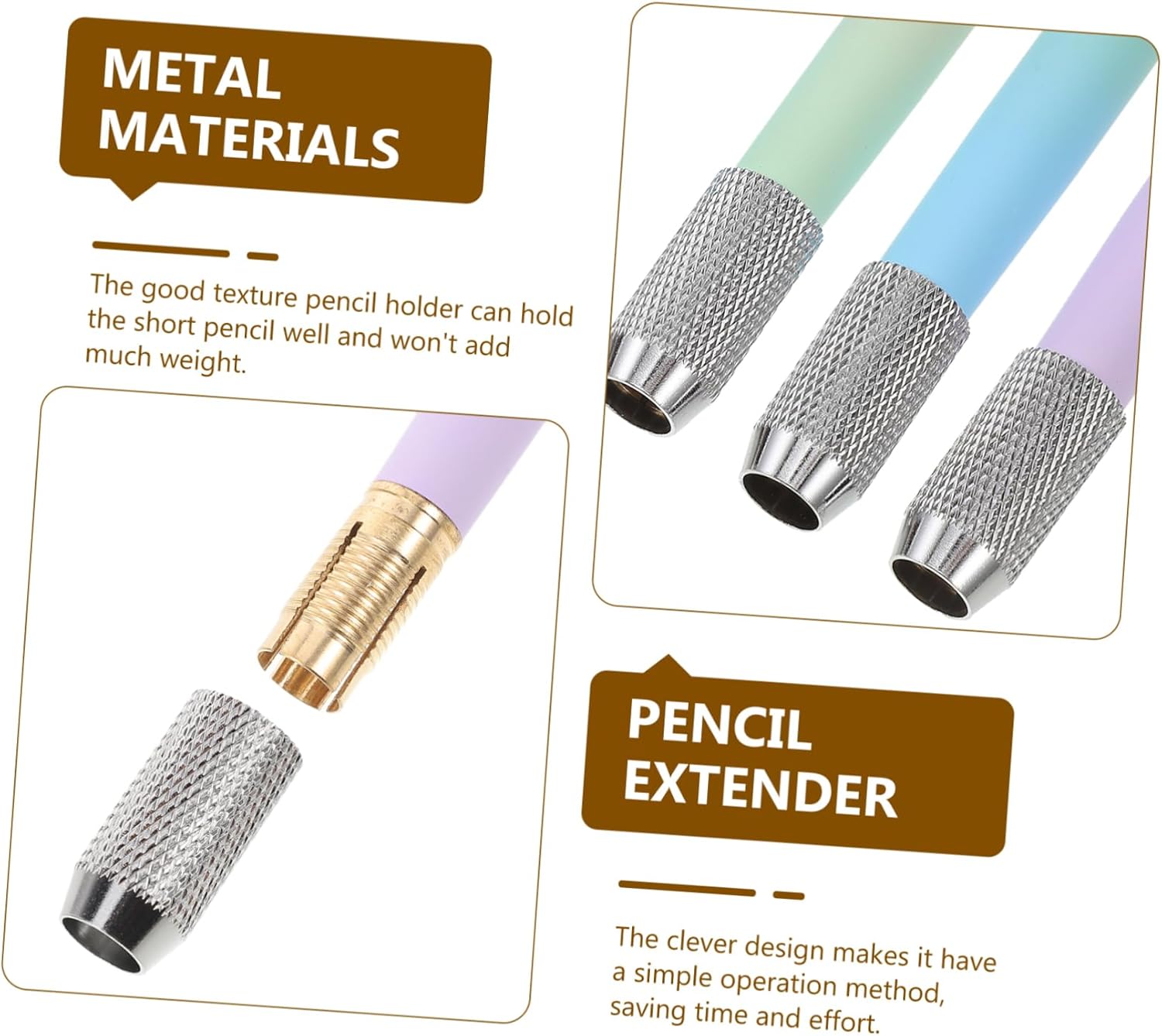 Prolungatori per matite in metallo: l'estensione per matite con manico è ideale per matite artistiche standard e matite colorate, materiale scolastico Prolunghe per penne da disegno: la prolunga per matite trattiene il mozzicone di matita per prolungare la durata di utilizzo di matite troppo corte, prolunga per matite per artisti Estensore per matita riutilizzabile: realizzato in metallo, questo estensore per matita ha un'eccellente consistenza e puoi usarlo con sicurezza, strumento di scrittura per ufficio Estensore per matita: l'estensore per matita è realizzato in materiale metallico, ha una buona durata e praticità, non deforma e non rompe facilmente, strumento di estensione per pennarelli Estensore in metallo per matita: il design intelligente lo rende un metodo di funzionamento semplice, risparmiando, allungatore per matita artistica